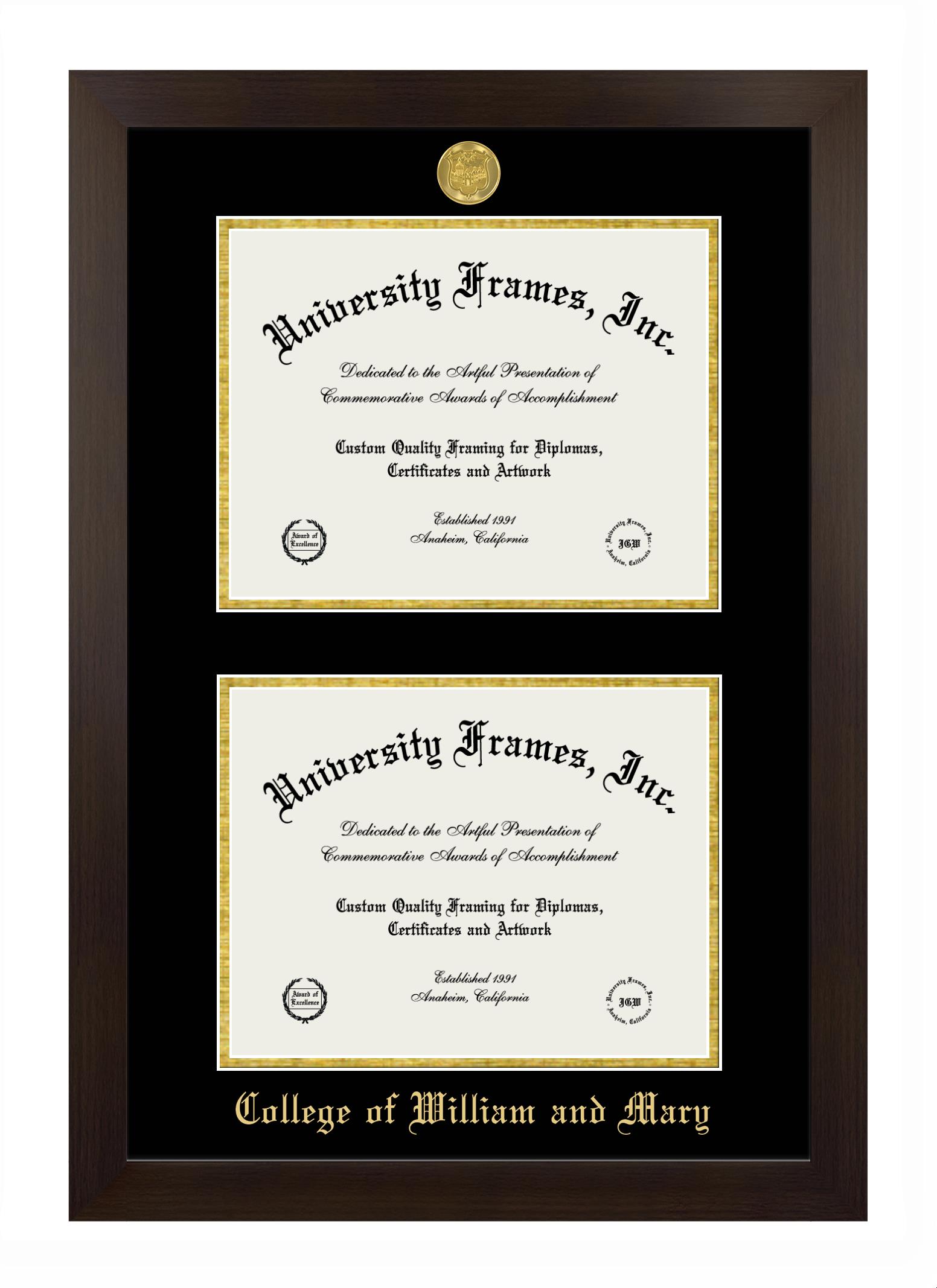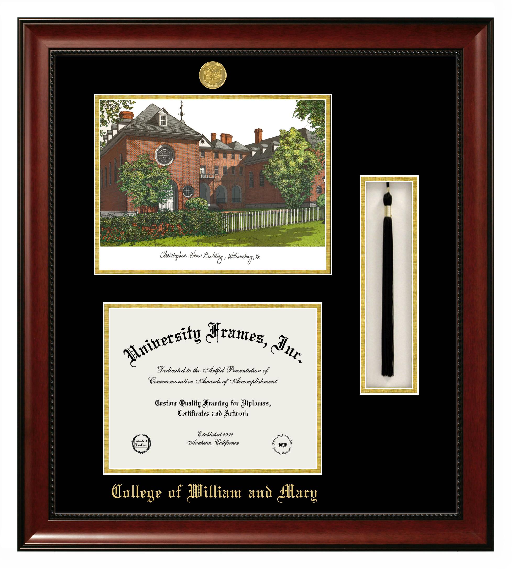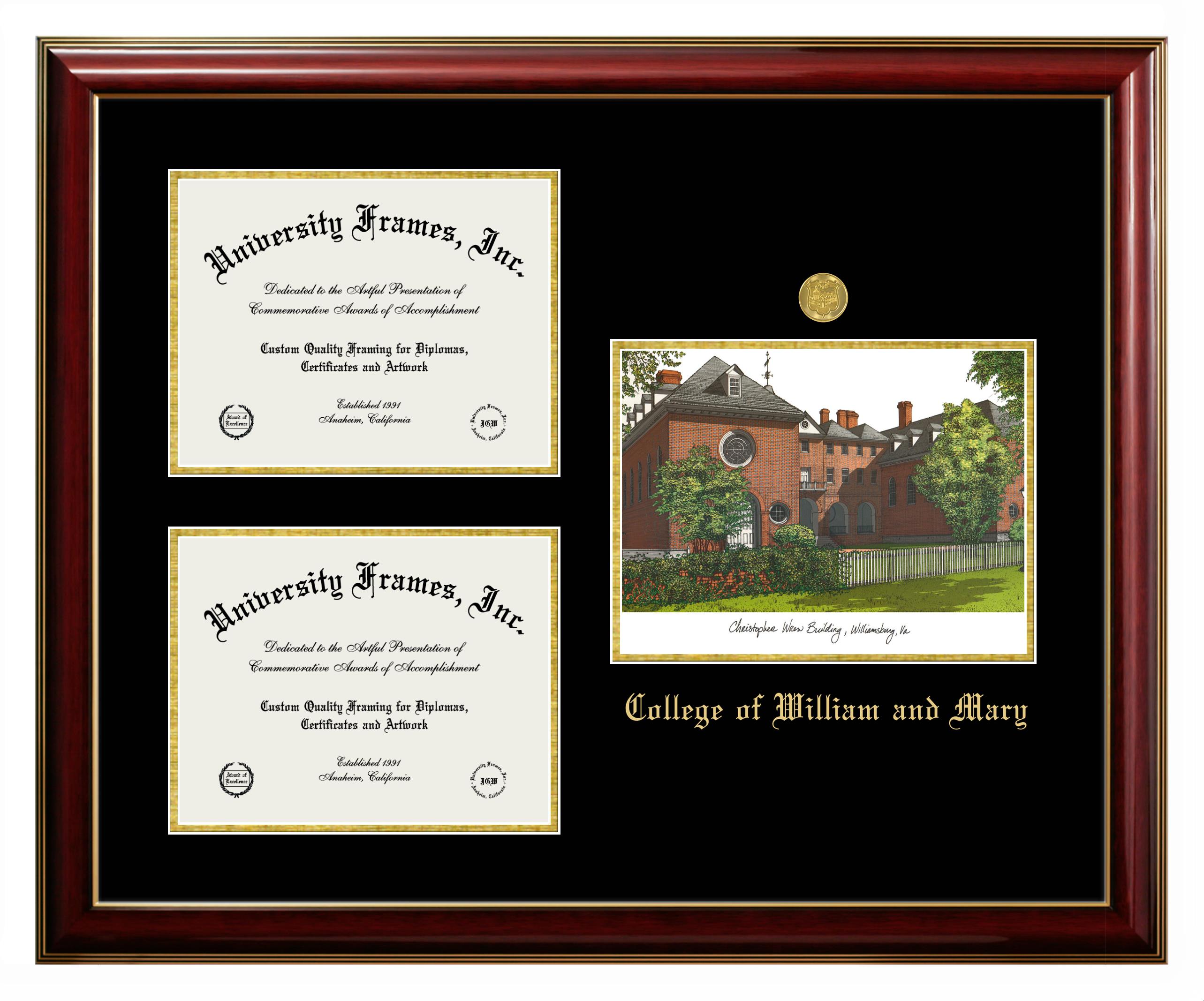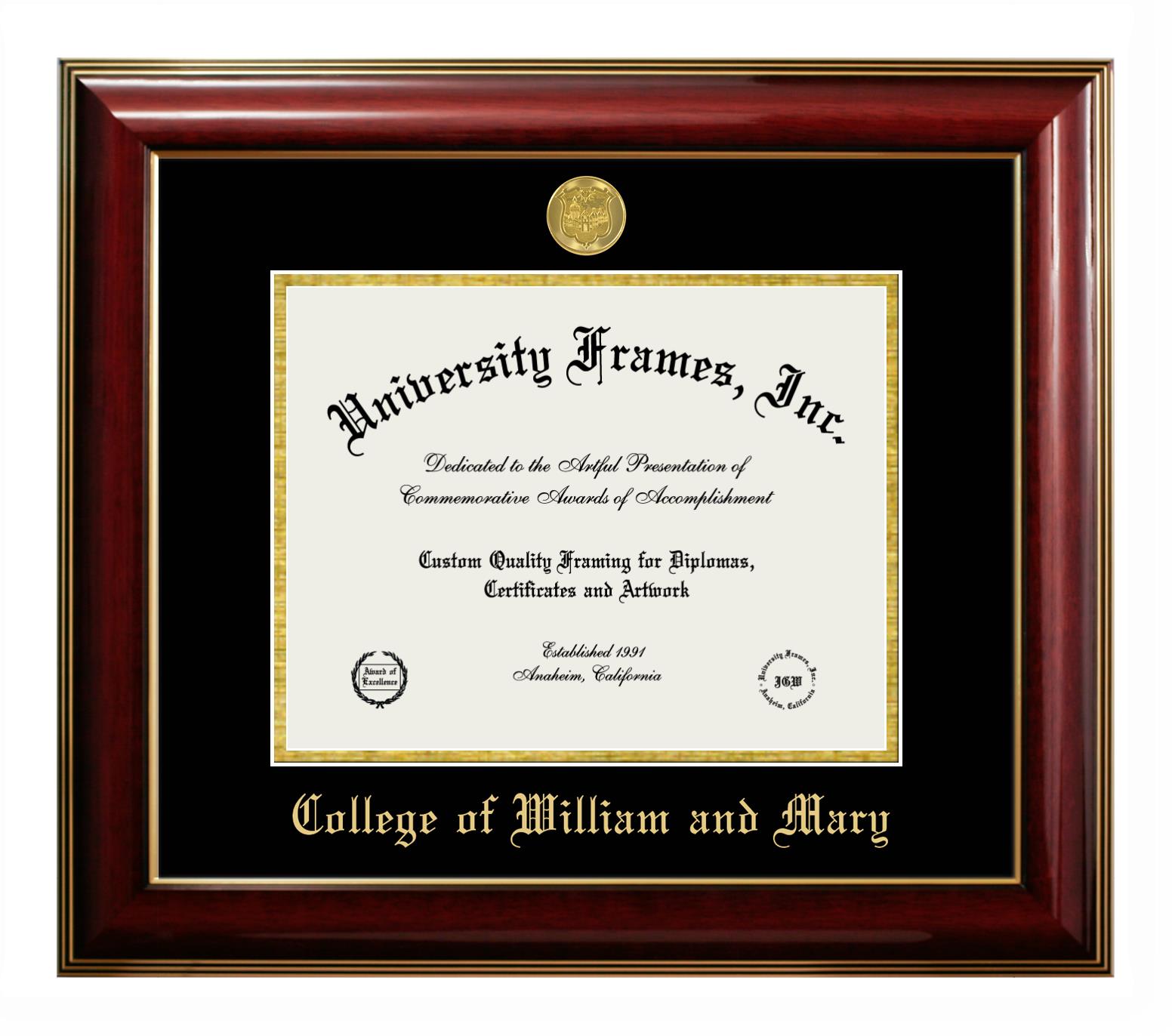 If you are a recent College of William and Mary graduate or an alum looking for a professional diploma frame to show off your accomplishment, look no further. We provide officially licensed custom diploma frames that come with the original College of William and Mary seal. Our handcrafted degree frames make an ideal graduation gift for any College of William and Mary recent graduate or alum. Each diploma frame is carefully crafted and inspected for quality and precision. Our graduation frames can be easily customized according to your taste and preference. Customize your college diploma frame now!