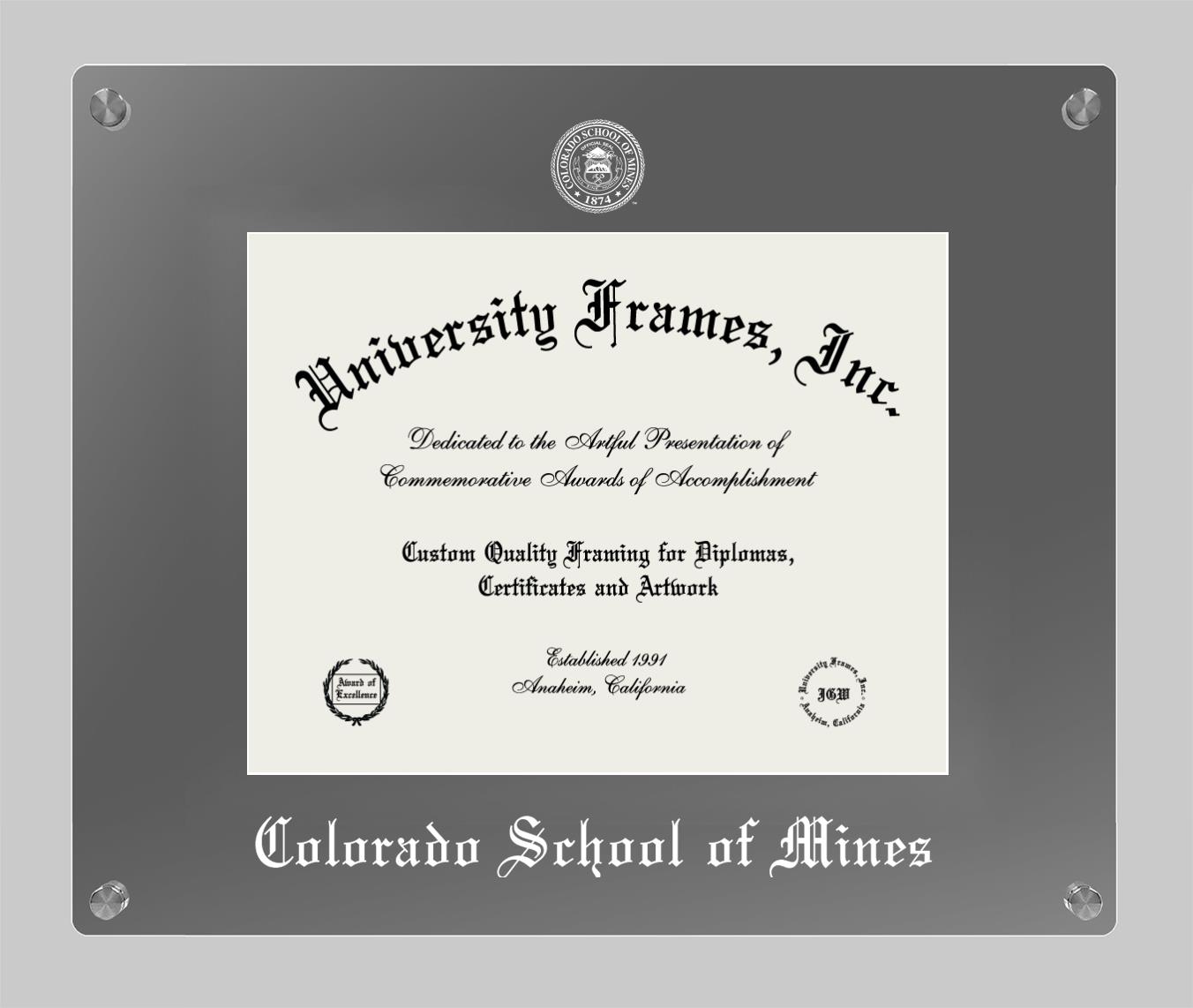 If you are a recent Colorado School of Mines graduate or an alum looking for a professional diploma frame to show off your accomplishment, look no further. We provide officially licensed custom diploma frames that come with the original Colorado School of Mines seal. Our handcrafted degree frames make an ideal graduation gift for any Colorado School of Mines recent graduate or alum. Each diploma frame is carefully crafted and inspected for quality and precision. Our graduation frames can be easily customized according to your taste and preference. Customize your college diploma frame now!