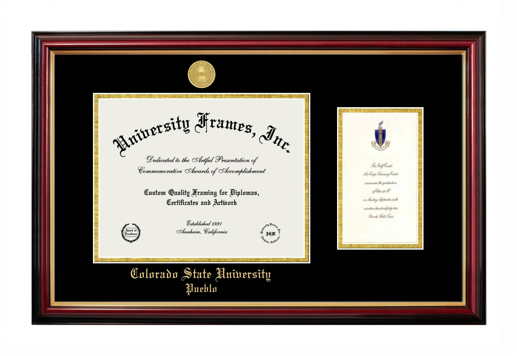 If you are a recent Colorado State University Pueblo graduate or an alum looking for a professional diploma frame to show off your accomplishment, look no further. We provide officially licensed custom diploma frames that come with the original Colorado State University Pueblo seal. Our handcrafted degree frames make an ideal graduation gift for any Colorado State University Pueblo recent graduate or alum. Each diploma frame is carefully crafted and inspected for quality and precision. Our graduation frames can be easily customized according to your taste and preference. Customize your college diploma frame now!