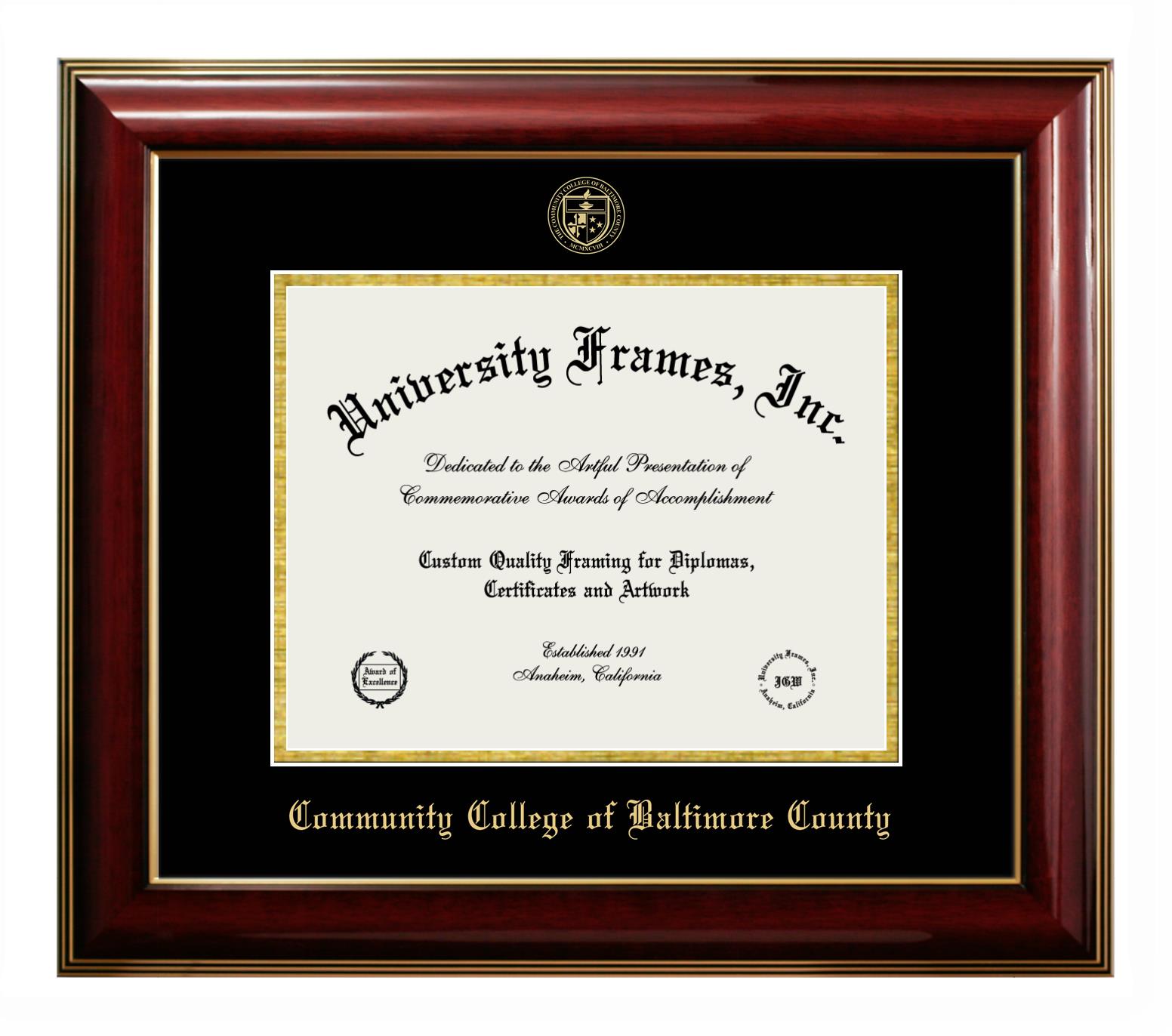 Hey there, Community College of Baltimore County-Catonsville grads. Congratulations for your accomplishment! Since youโre here, you must be looking for a professional graduation frame to preserve and showcase your Community College of Baltimore County-Catonsville diploma. Or, you may be looking for a diploma frame for another grad. We at University Frames, create the finest diploma frames and are licensed with Community College of Baltimore County-Catonsville. Each of our degree frames is handcrafted in the US using the finest hardwood and with an exemplary level of attention to detail. Customize your diploma frame using our easy and intuitive online design tool.