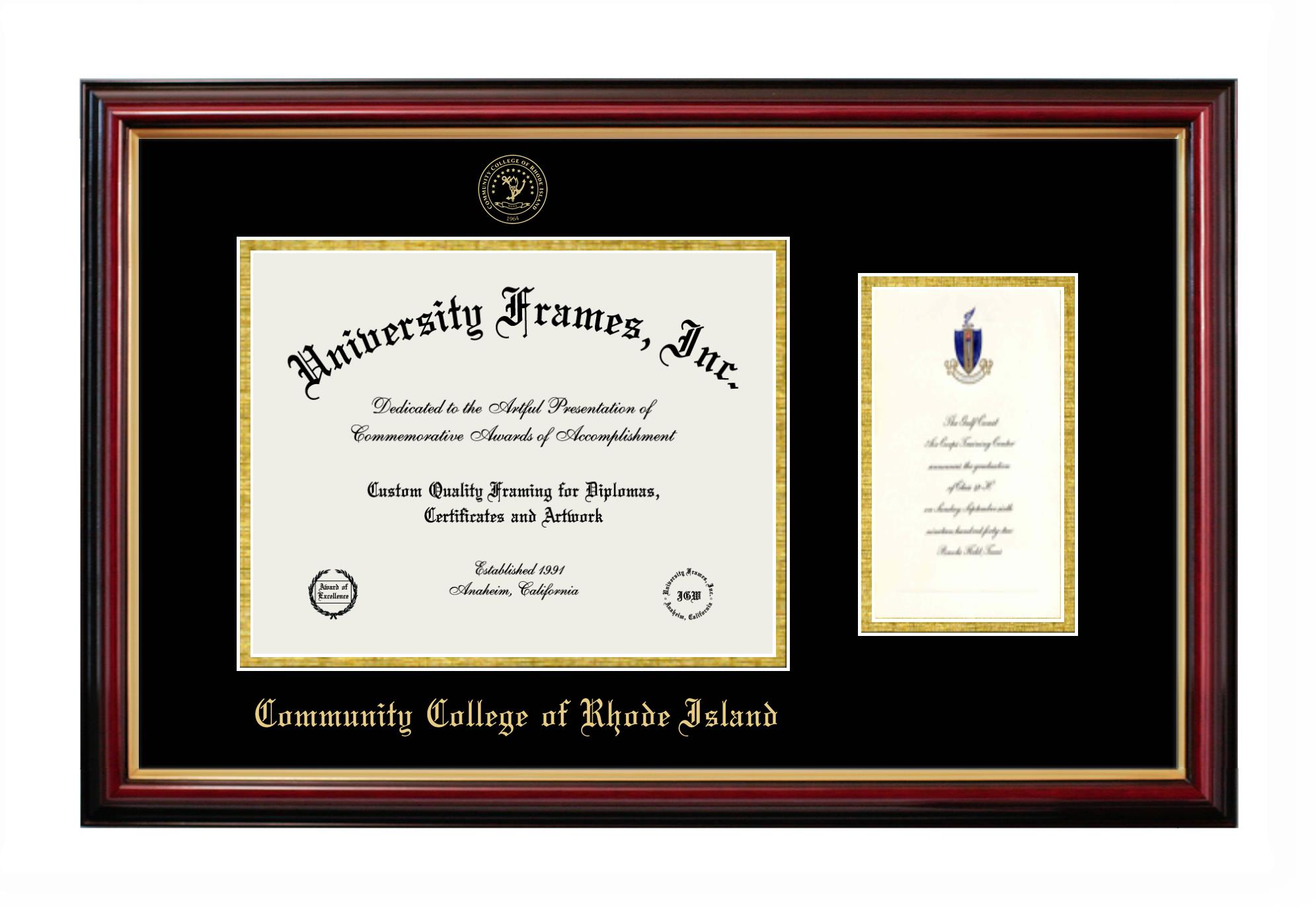 If you are a recent Community College of Rhode Island graduate or an alum looking for a professional diploma frame to show off your accomplishment, look no further. We provide officially licensed custom diploma frames that come with the original Community College of Rhode Island seal. Our handcrafted degree frames make an ideal graduation gift for any Community College of Rhode Island recent graduate or alum. Each diploma frame is carefully crafted and inspected for quality and precision. Our graduation frames can be easily customized according to your taste and preference. Customize your college diploma frame now!