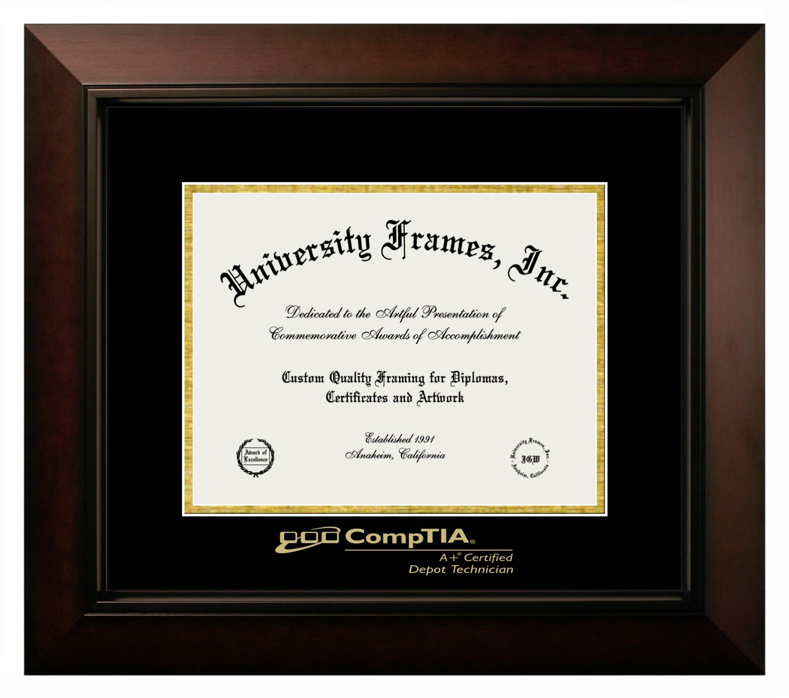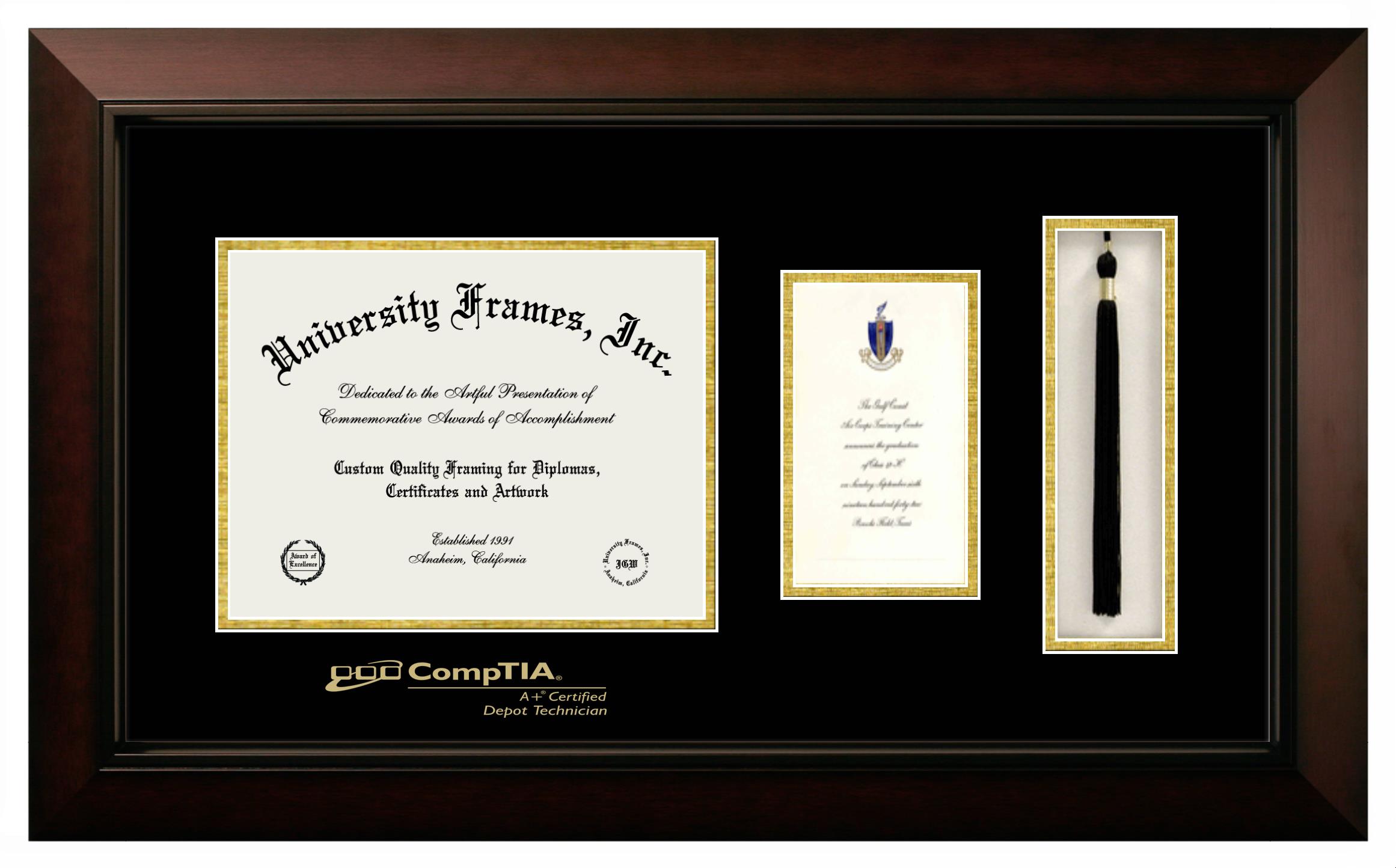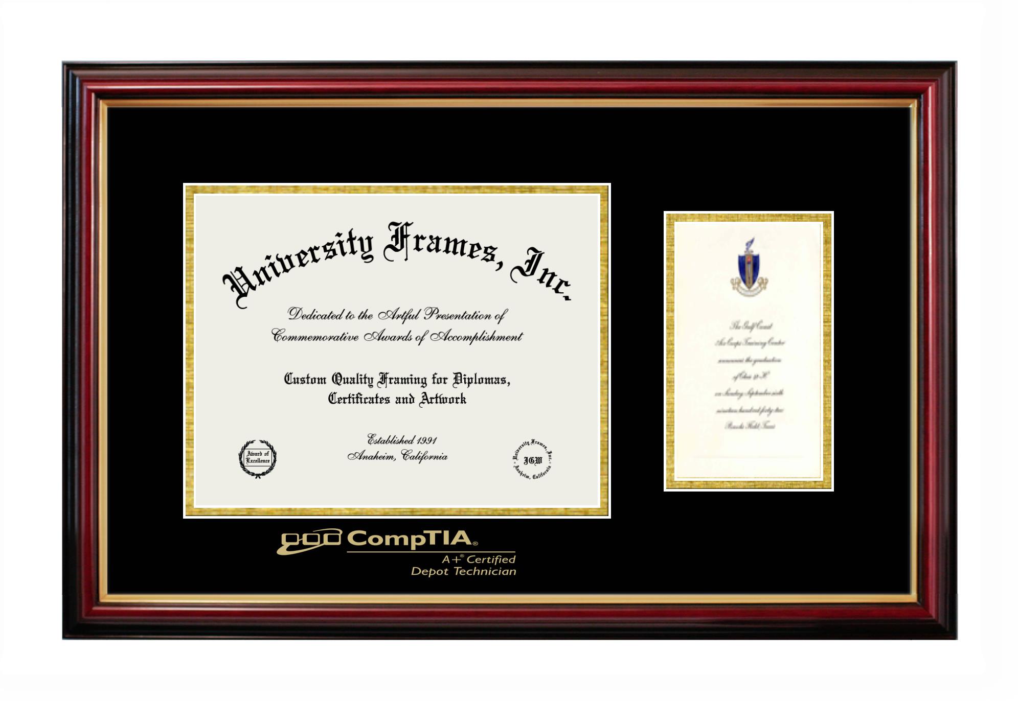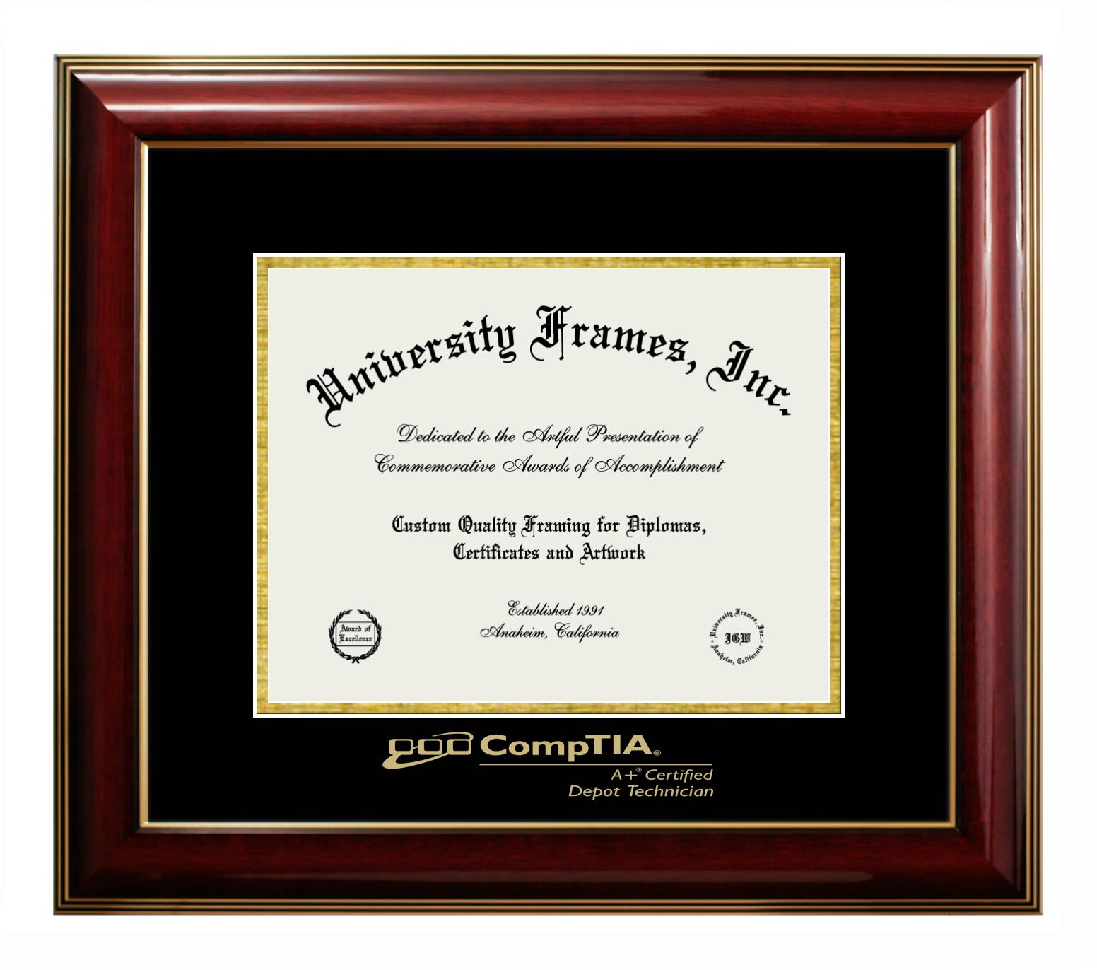If you are a recent CompTIA graduate or an alum looking for a professional diploma frame to show off your accomplishment, look no further. We provide officially licensed custom diploma frames that come with the original CompTIA seal. Our handcrafted degree frames make an ideal graduation gift for any CompTIA recent graduate or alum. Each diploma frame is carefully crafted and inspected for quality and precision. Our graduation frames can be easily customized according to your taste and preference. Customize your college diploma frame now!