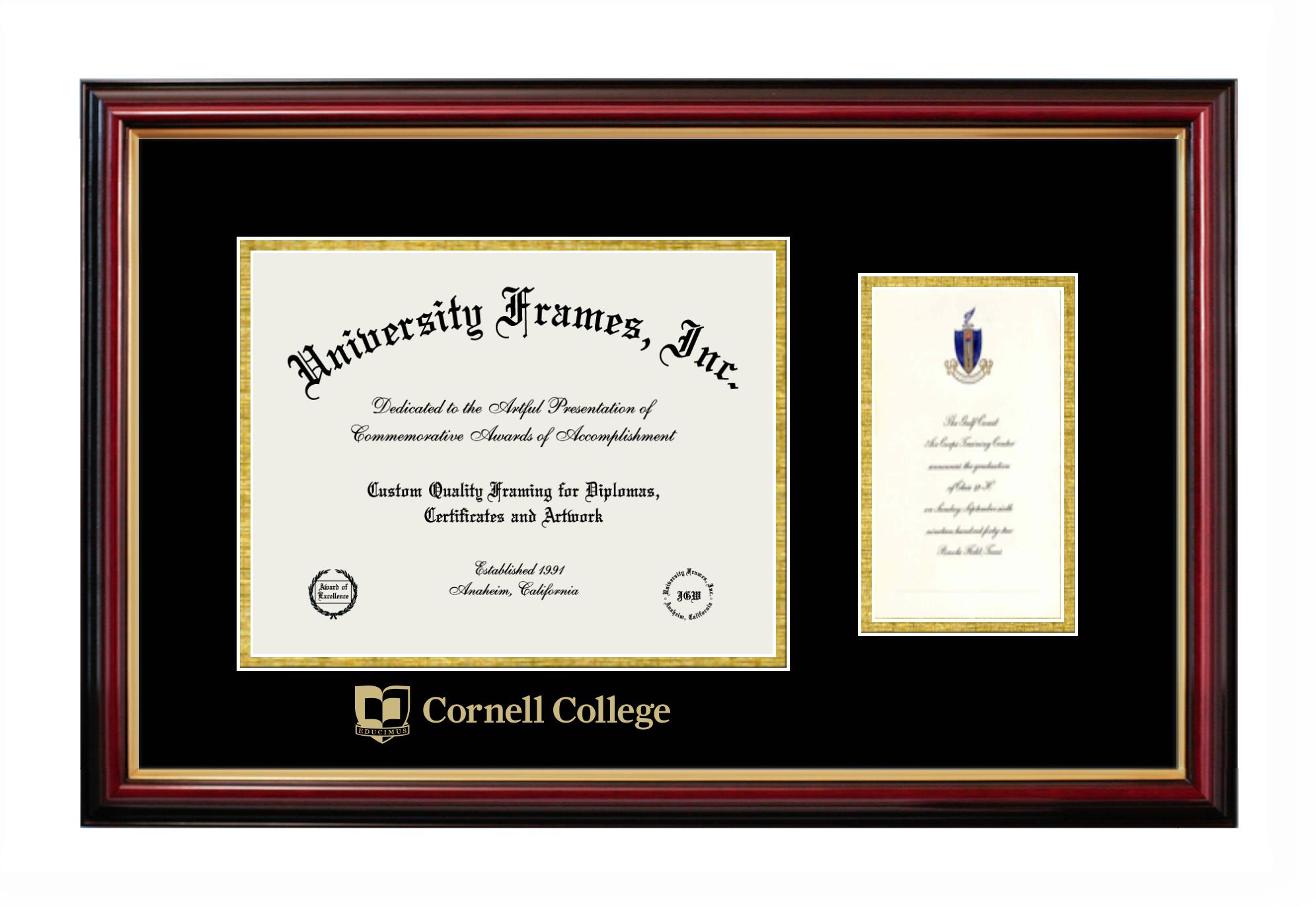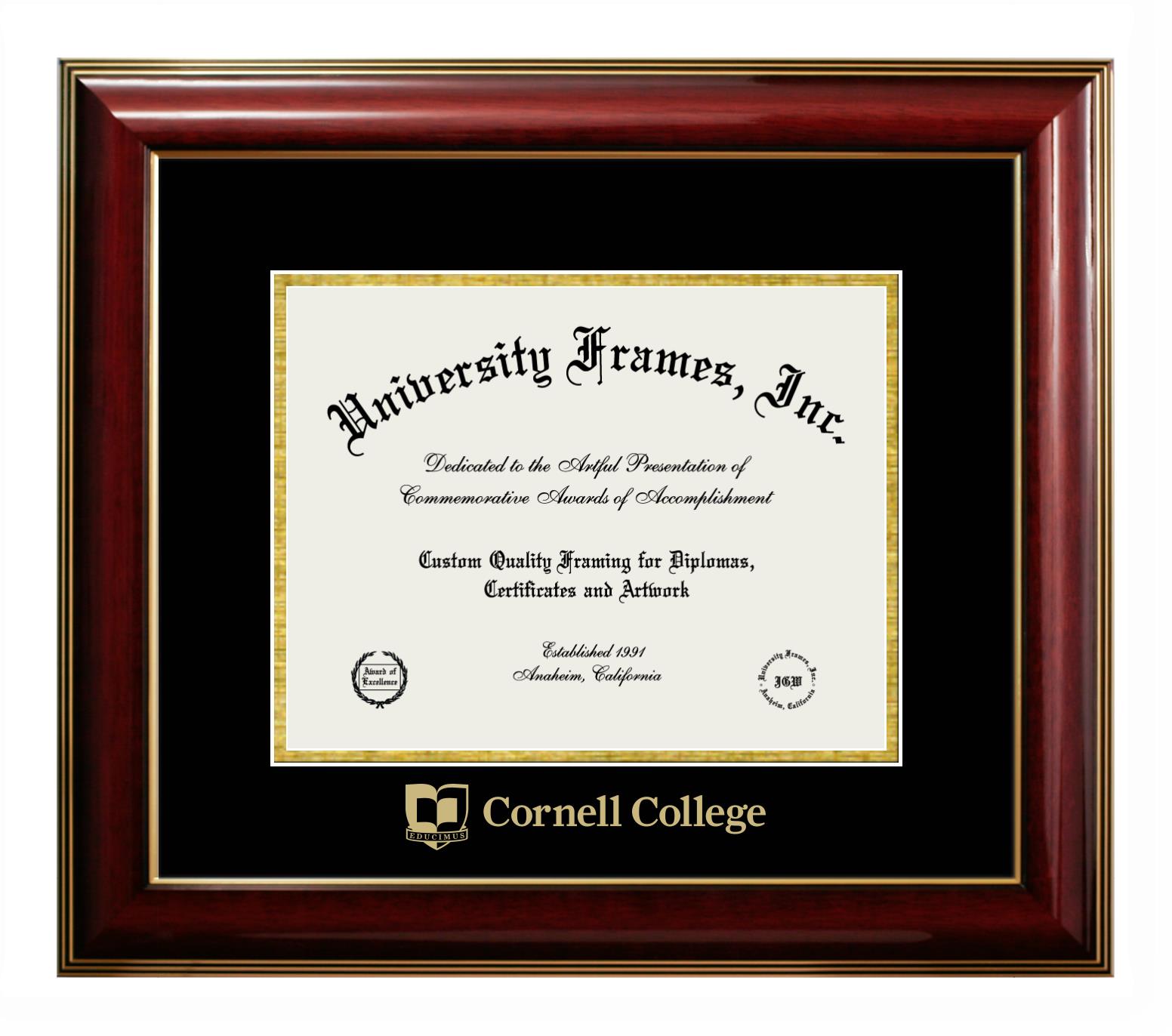If you are a recent Cornell College graduate or an alum looking for a professional diploma frame to show off your accomplishment, look no further. We provide officially licensed custom diploma frames that come with the original Cornell College seal. Our handcrafted degree frames make an ideal graduation gift for any Cornell College recent graduate or alum. Each diploma frame is carefully crafted and inspected for quality and precision. Our graduation frames can be easily customized according to your taste and preference. Customize your college diploma frame now!