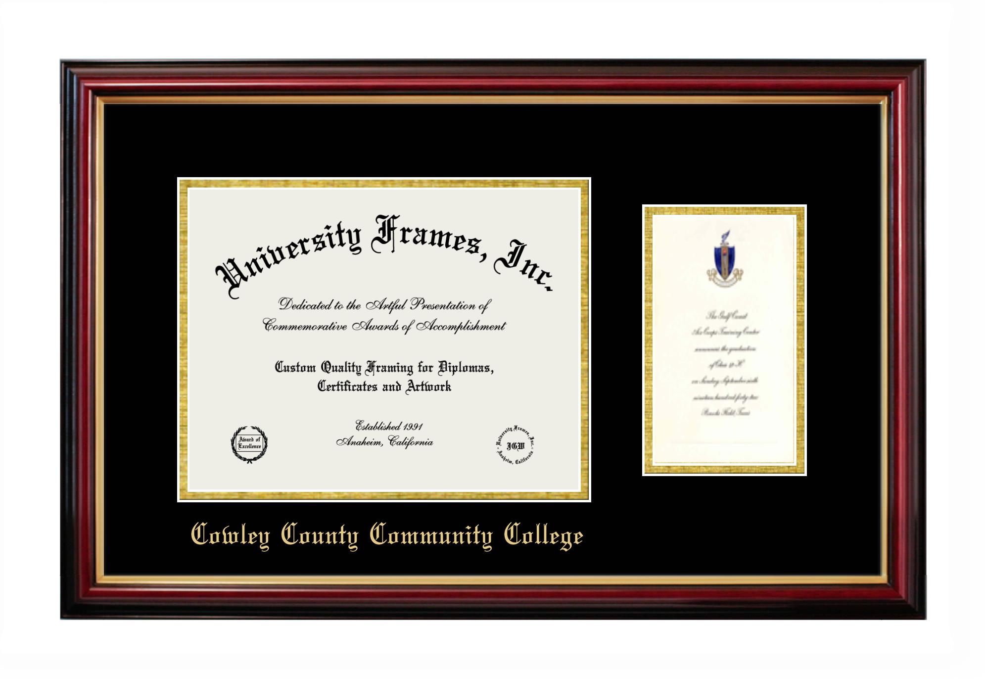 If you are a recent Cowley County Community College graduate or an alum looking for a professional diploma frame to show off your accomplishment, look no further. We provide officially licensed custom diploma frames that come with the original Cowley County Community College seal. Our handcrafted degree frames make an ideal graduation gift for any Cowley County Community College recent graduate or alum. Each diploma frame is carefully crafted and inspected for quality and precision. Our graduation frames can be easily customized according to your taste and preference. Customize your college diploma frame now!