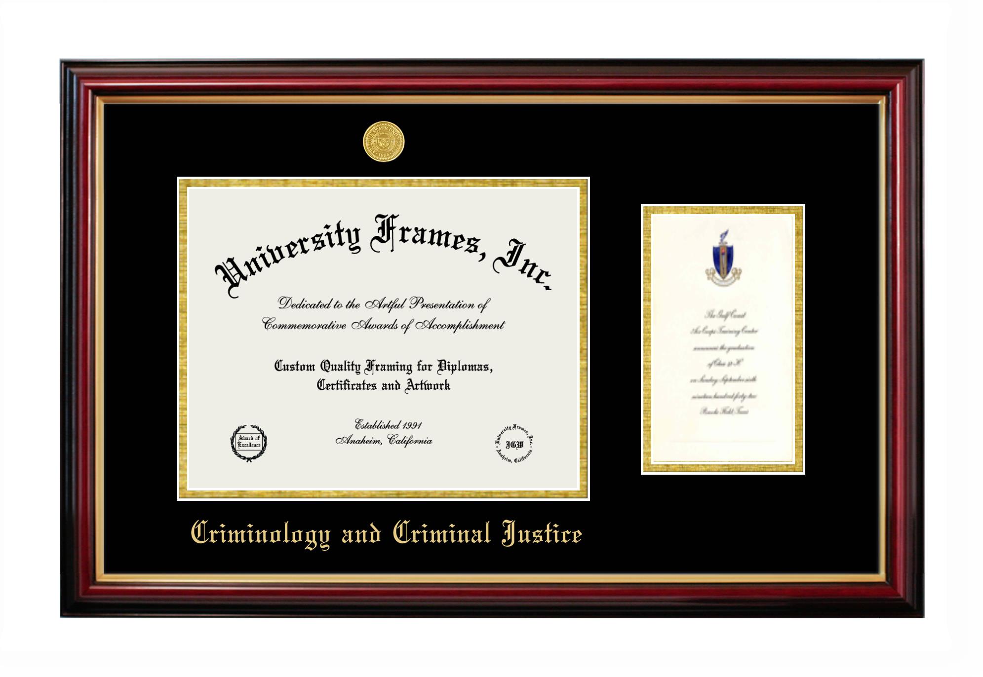 If you are a recent Criminology and Criminal Justice graduate or an alum looking for a professional diploma frame to show off your accomplishment, look no further. We provide officially licensed custom diploma frames that come with the original Criminology and Criminal Justice seal. Our handcrafted degree frames make an ideal graduation gift for any Criminology and Criminal Justice recent graduate or alum. Each diploma frame is carefully crafted and inspected for quality and precision. Our graduation frames can be easily customized according to your taste and preference. Customize your college diploma frame now!