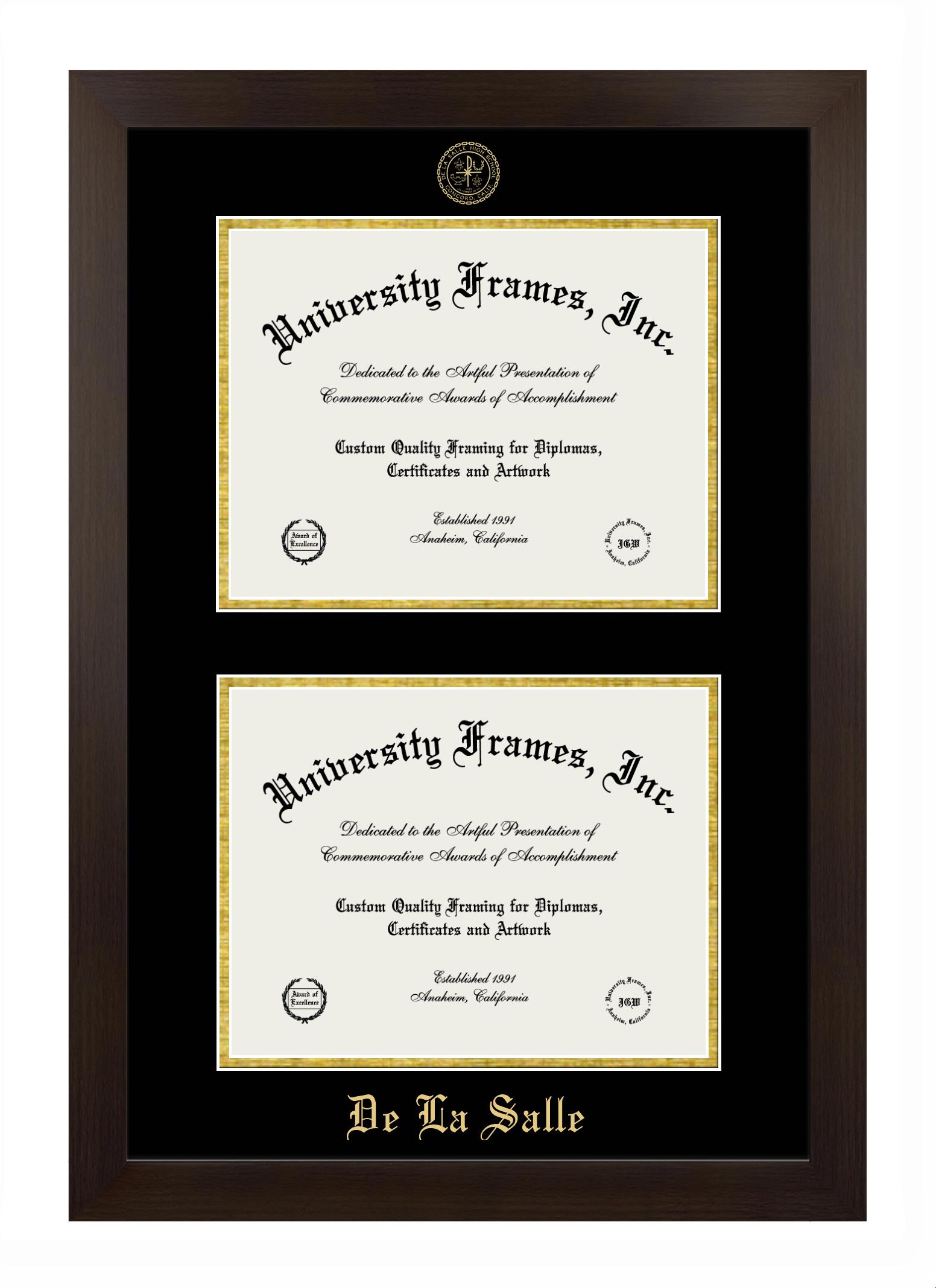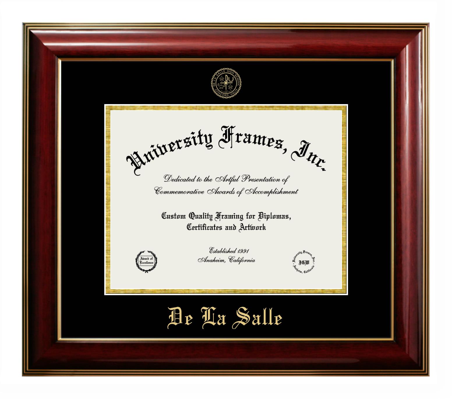 Showcase your achievement with a professional De La Salle diploma frame. We offer officially licensed custom diploma frames that have the original De La Salle seal. Our degree frames make great graduation gifts. All our frames are handcrafted to meet your style and preference. Each frame is carefully inspected to achieve the highest quality standards and precision. You can easily customize your college diploma frame with our online design tool. Customize your diploma frame now!