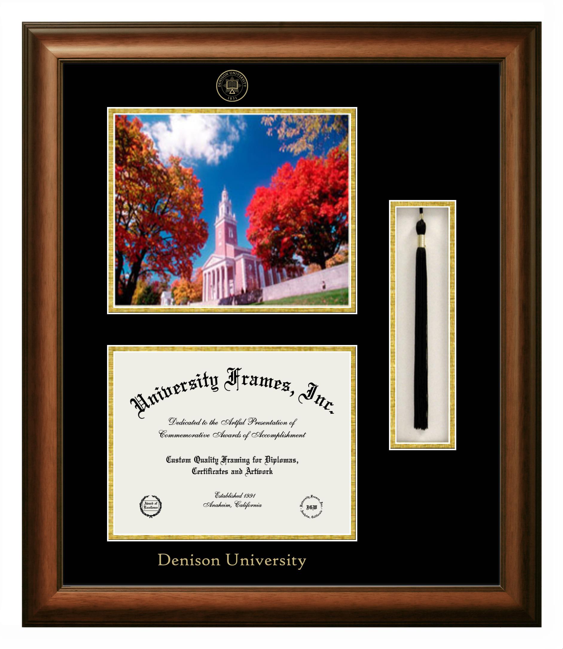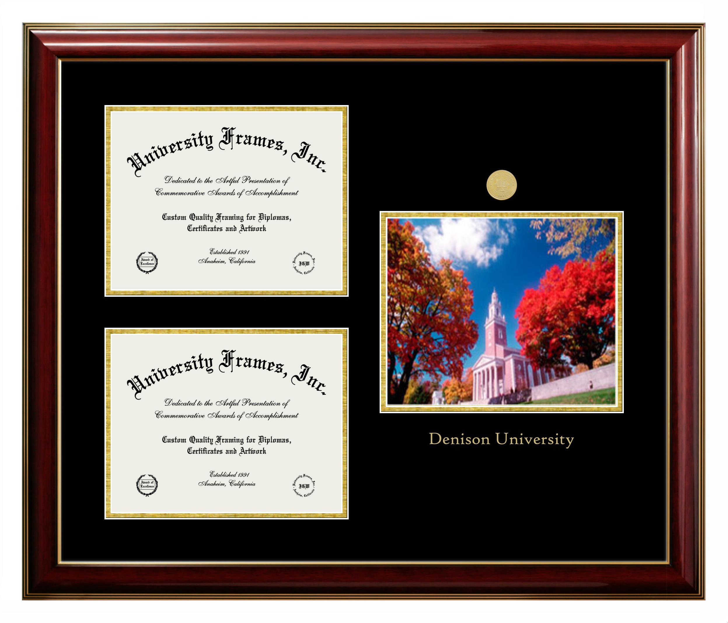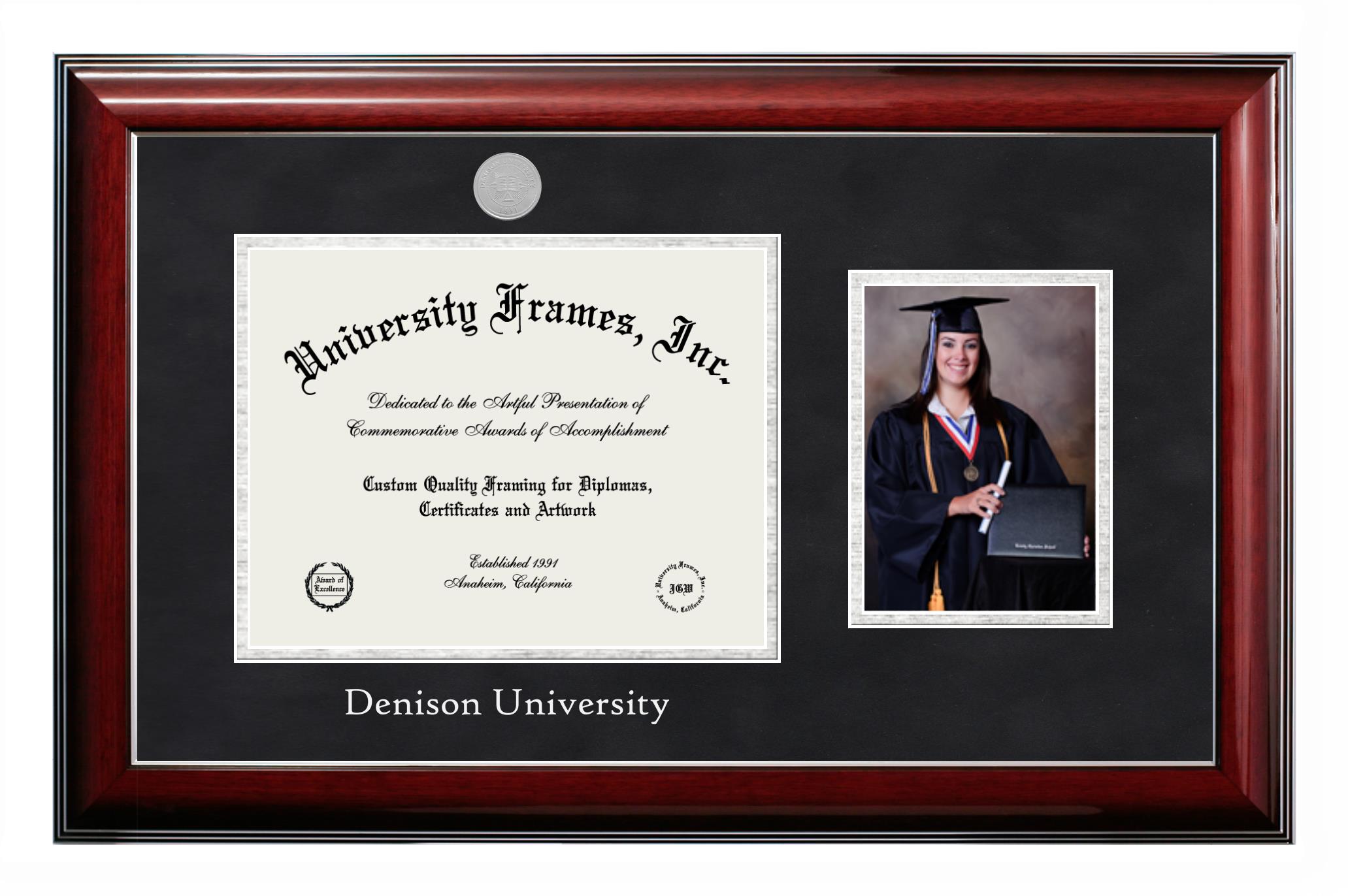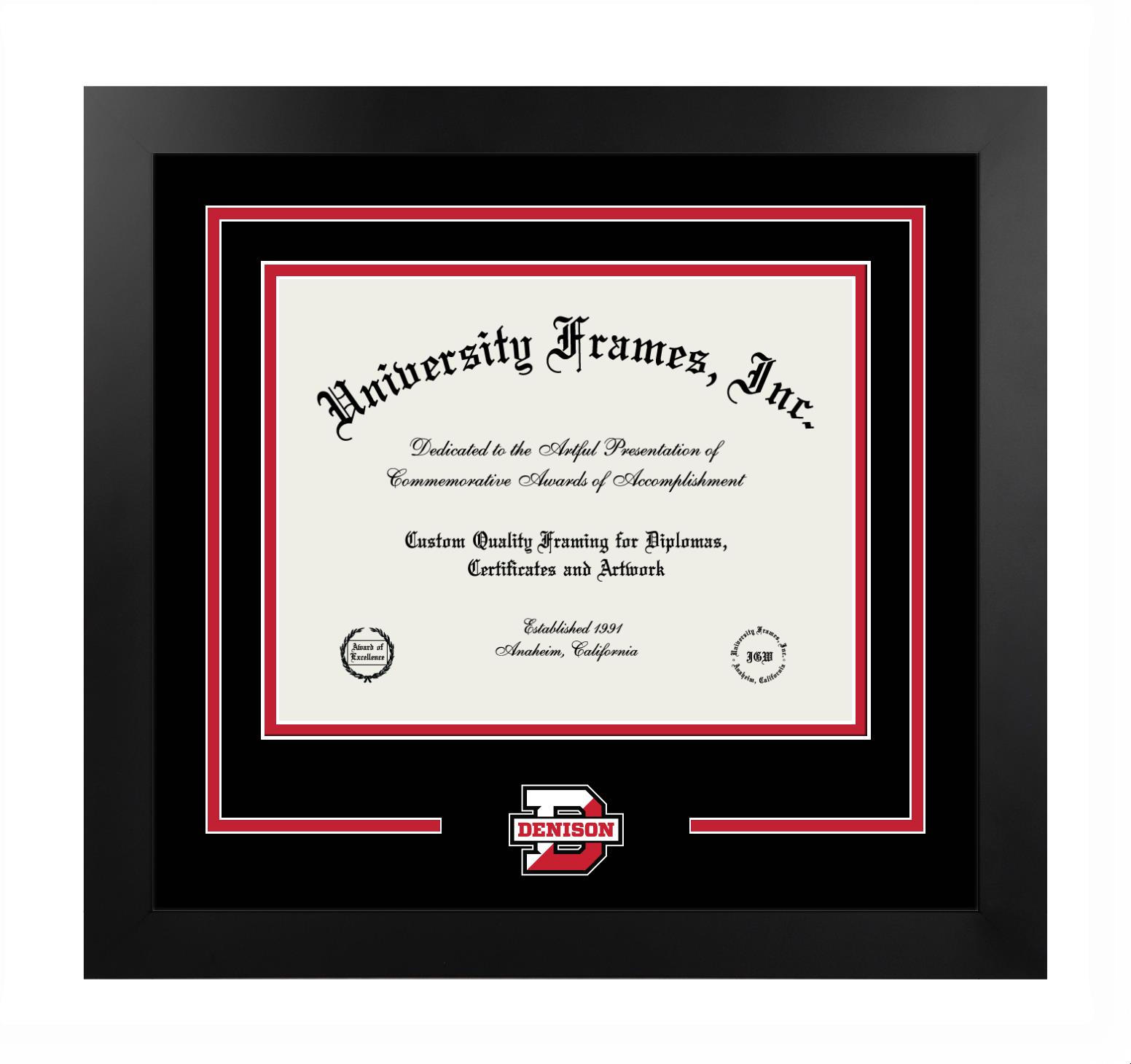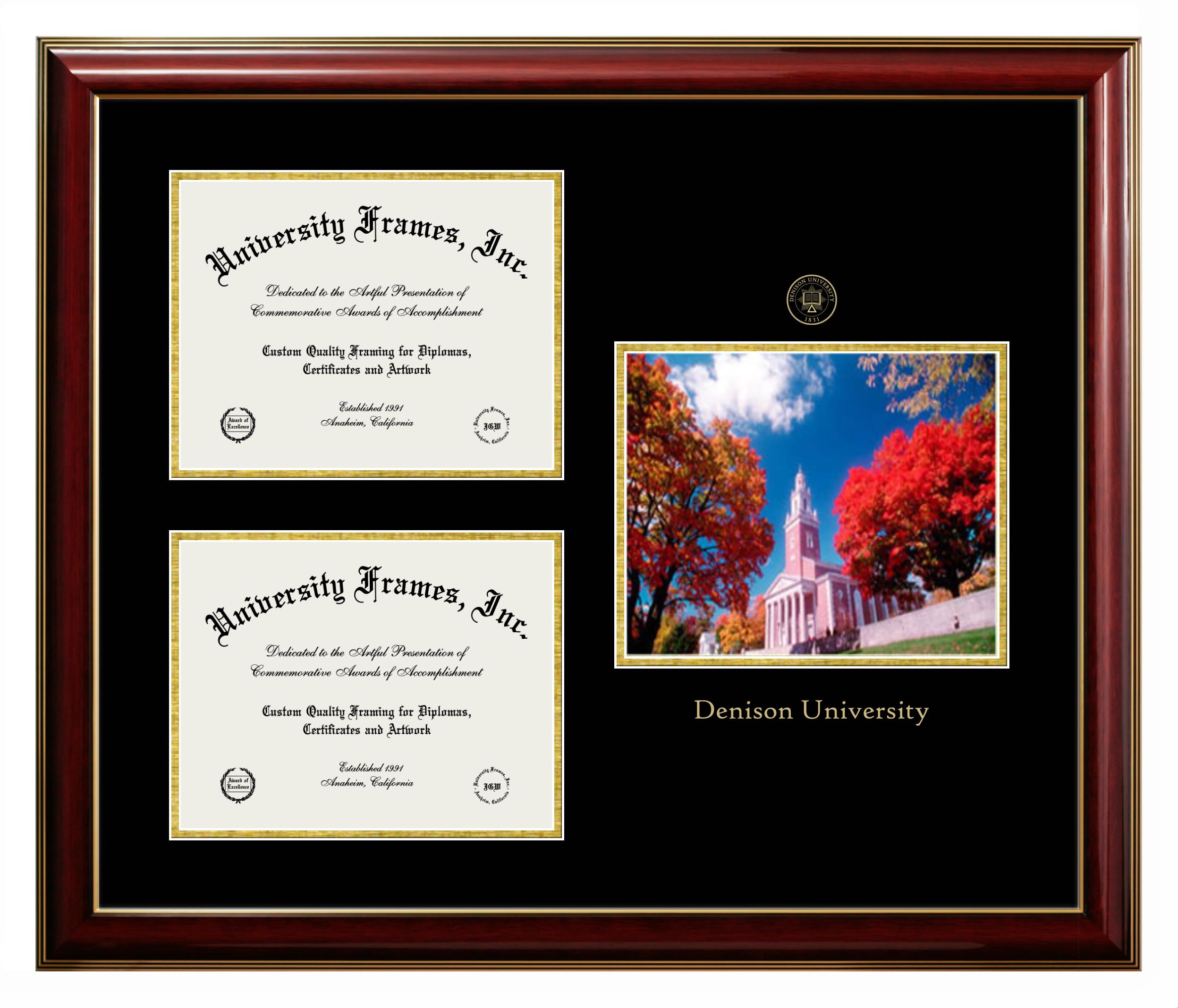 Showcase your achievement with a professional Denison University diploma frame. We offer officially licensed custom diploma frames that have the original Denison University seal. Our degree frames make great graduation gifts. All our frames are handcrafted to meet your style and preference. Each frame is carefully inspected to achieve the highest quality standards and precision. You can easily customize your college diploma frame with our online design tool. Customize your diploma frame now!