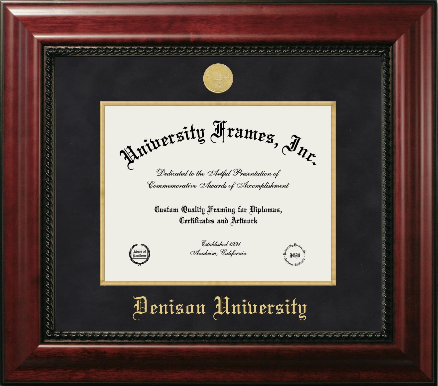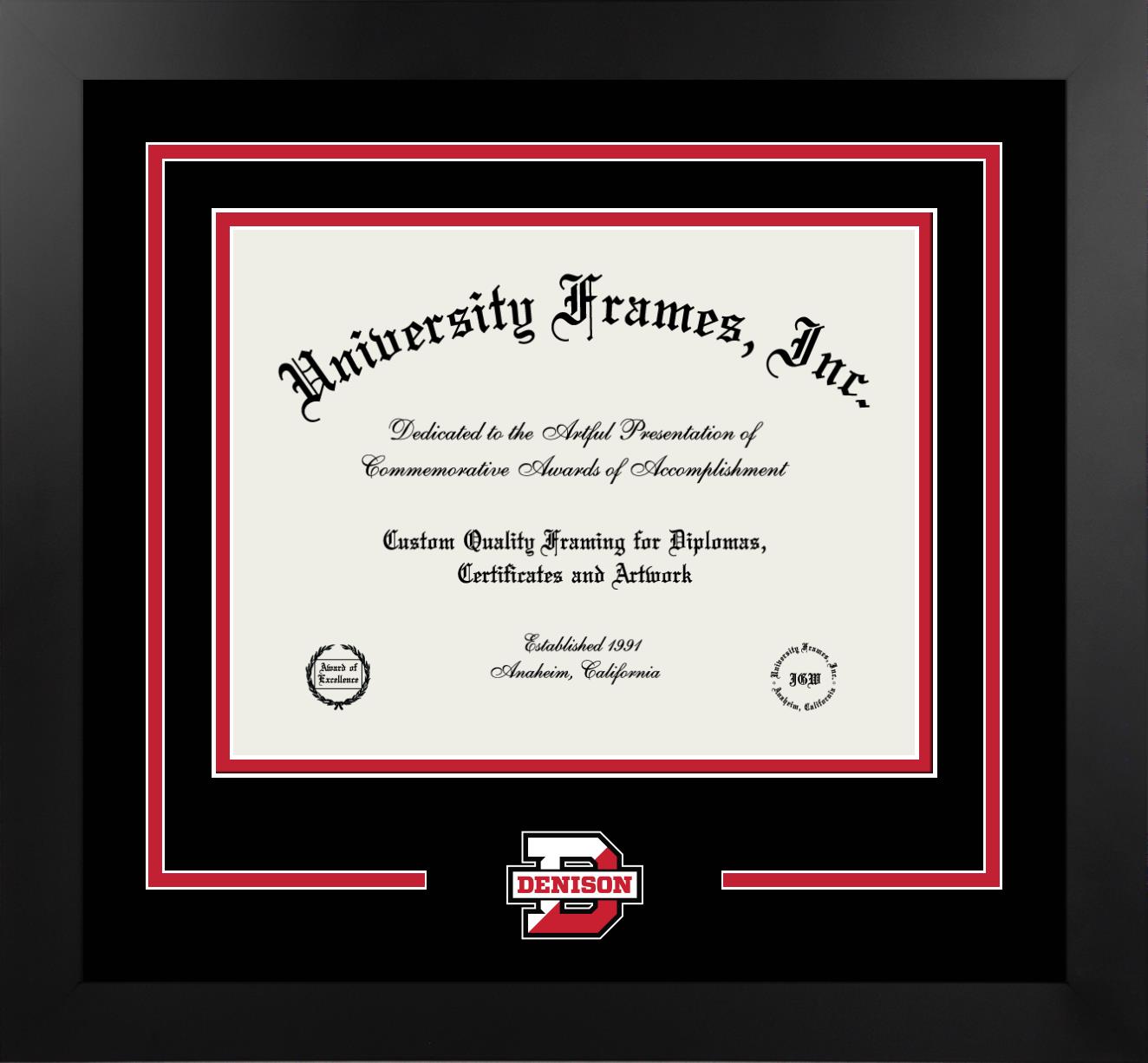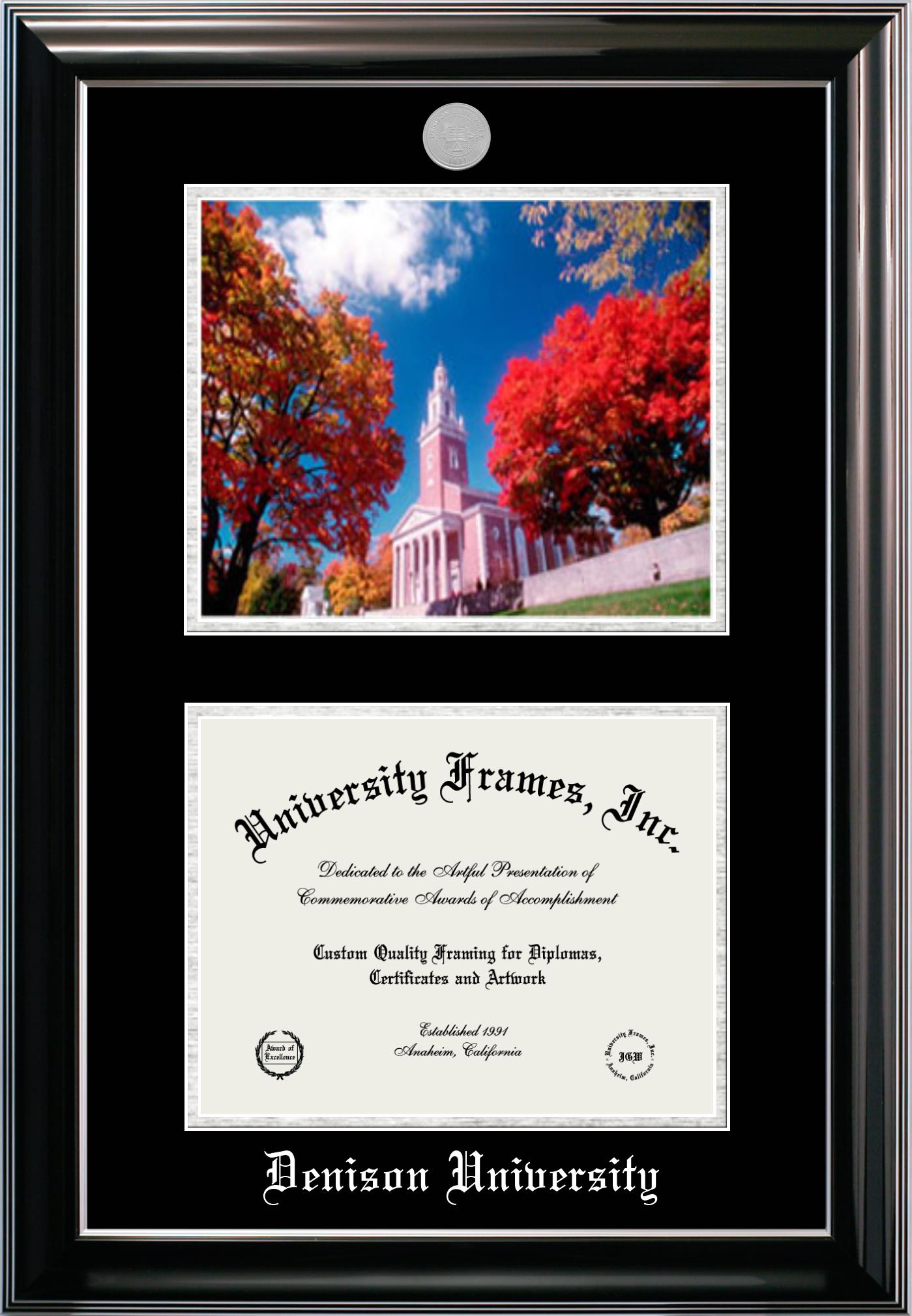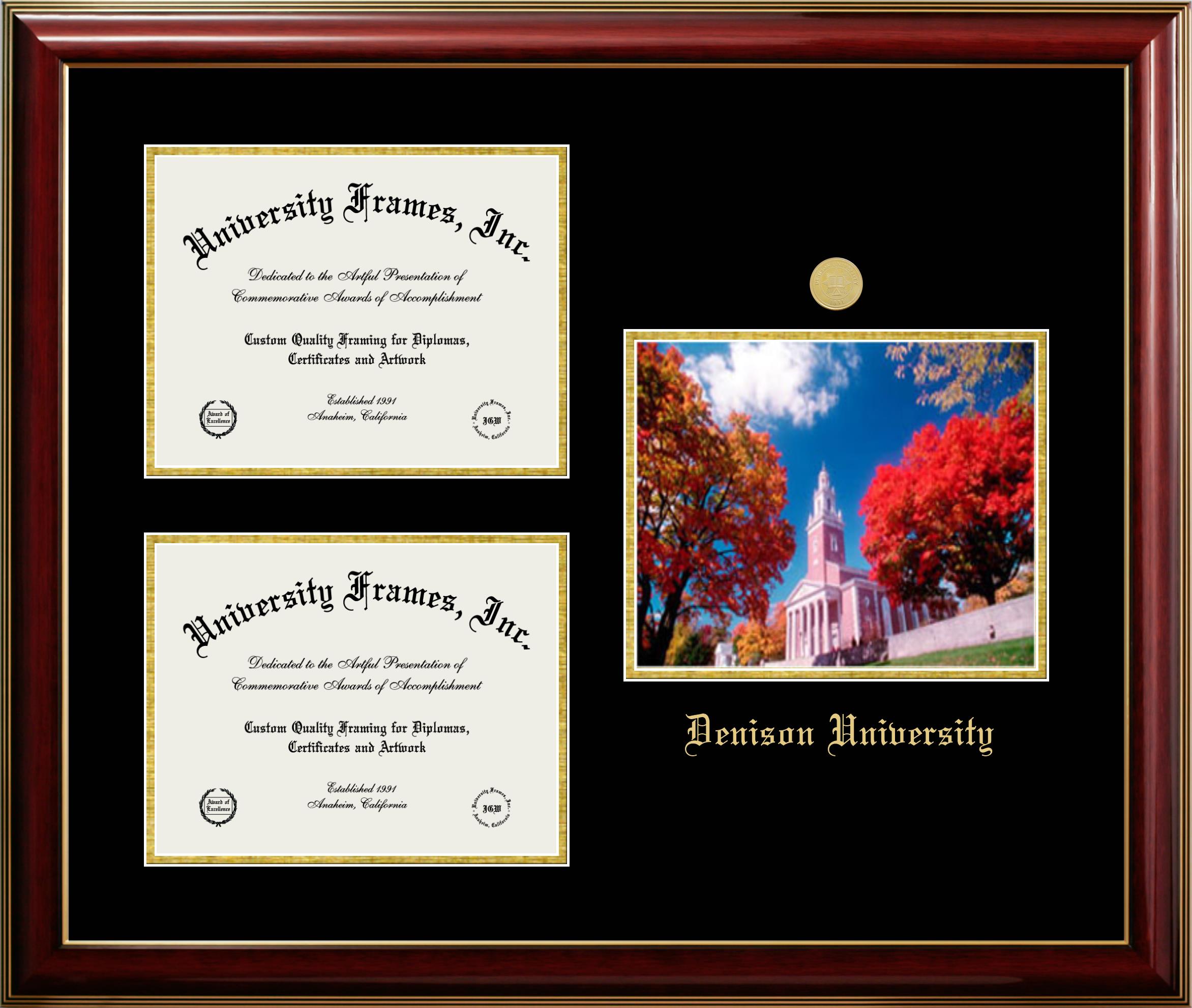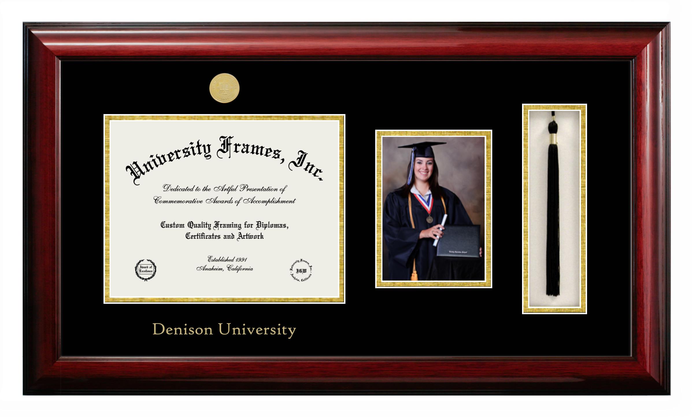 Showcase your achievement with a professional Denison University diploma frame. We offer officially licensed custom diploma frames that have the original Denison University seal. Our degree frames make great graduation gifts. All our frames are handcrafted to meet your style and preference. Each frame is carefully inspected to achieve the highest quality standards and precision. You can easily customize your college diploma frame with our online design tool. Customize your diploma frame now!