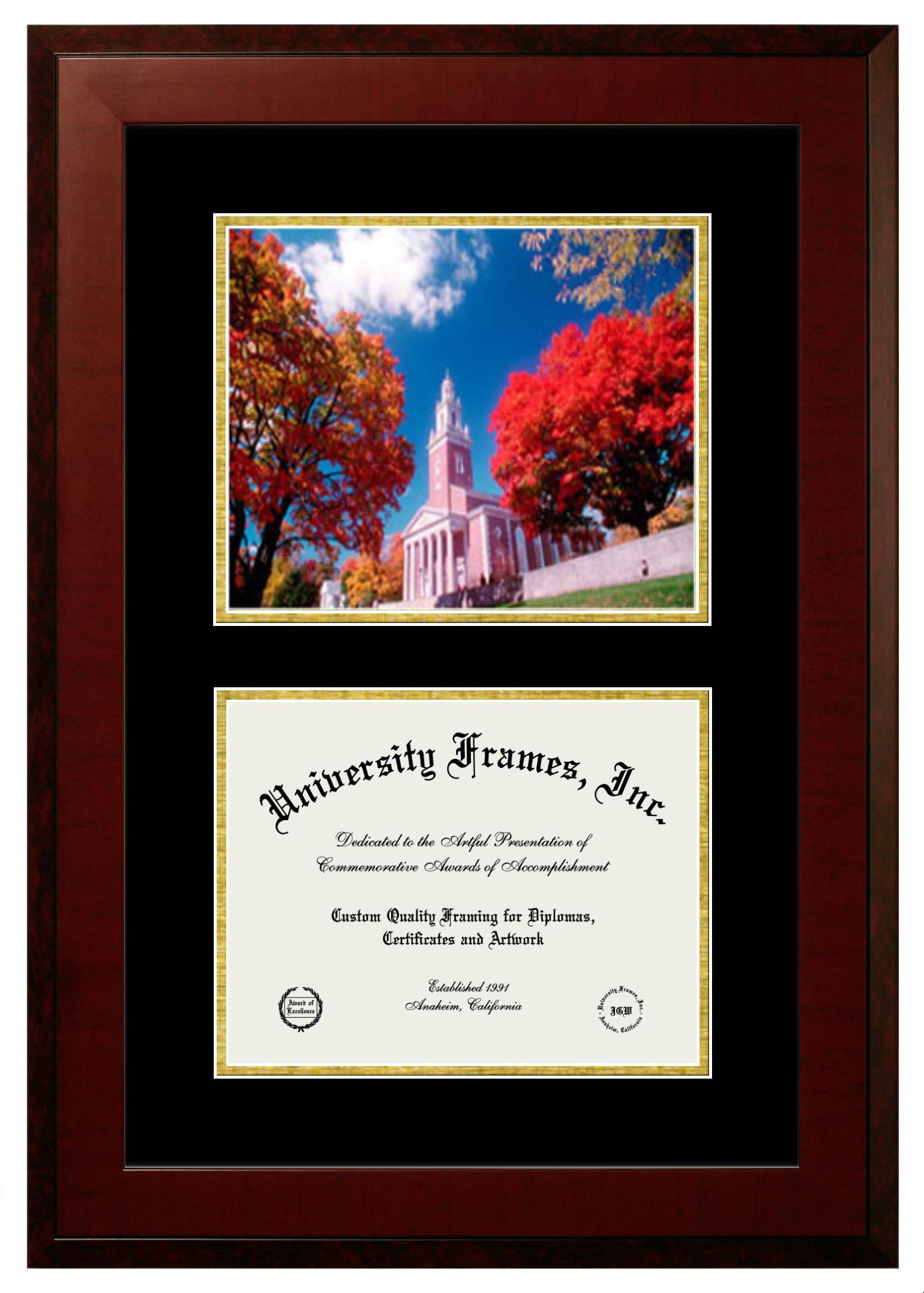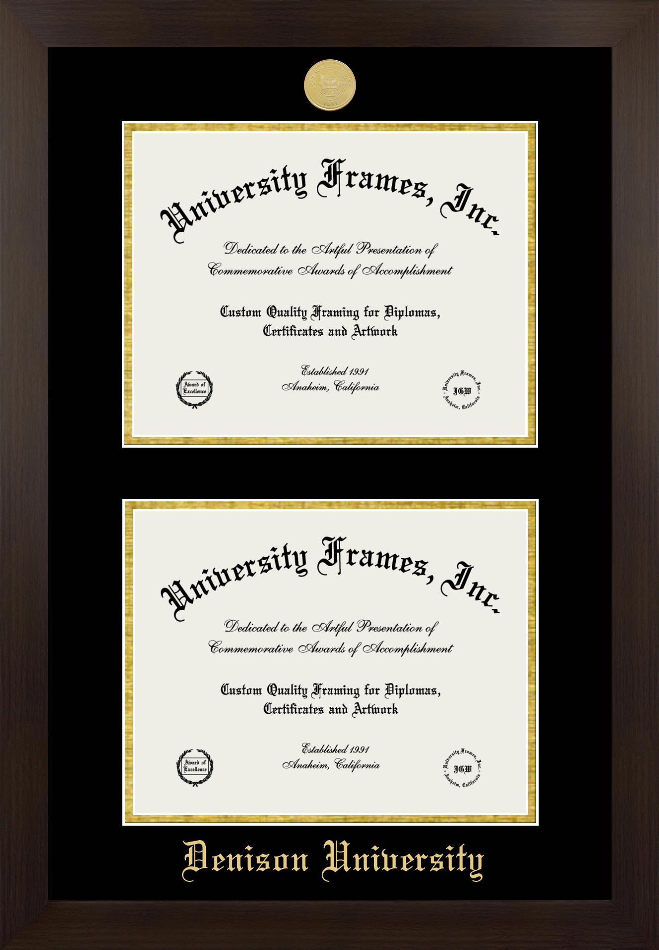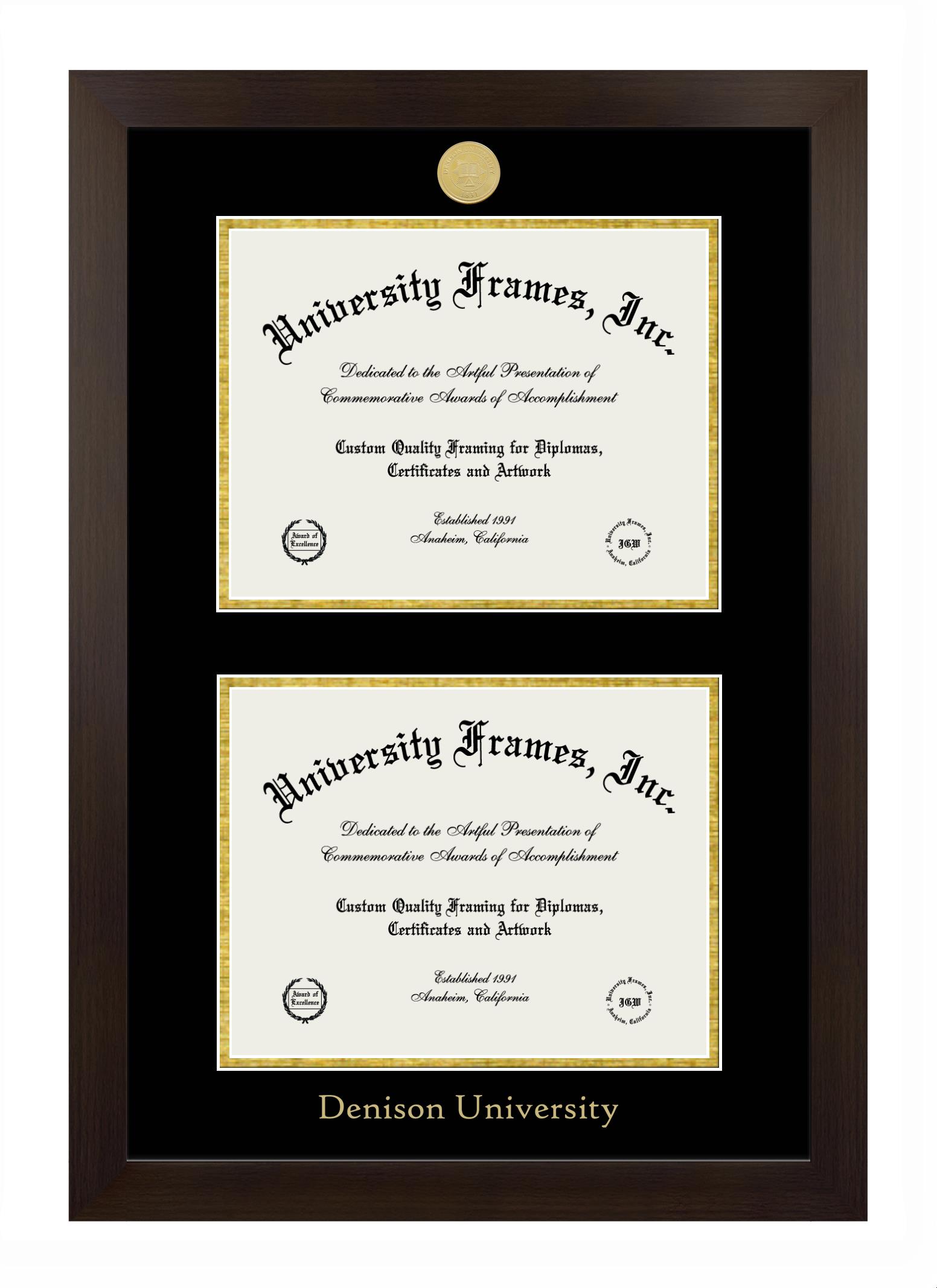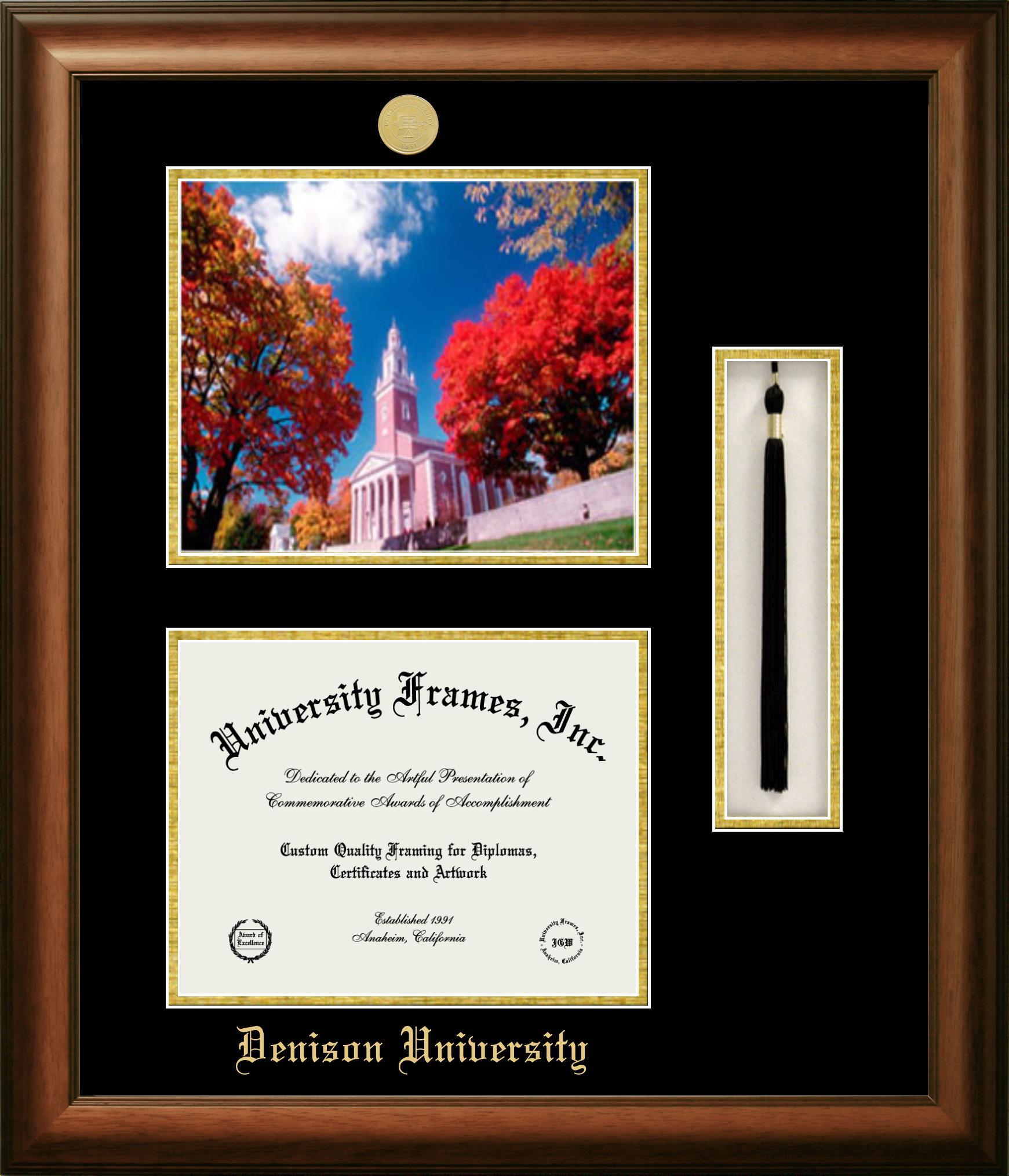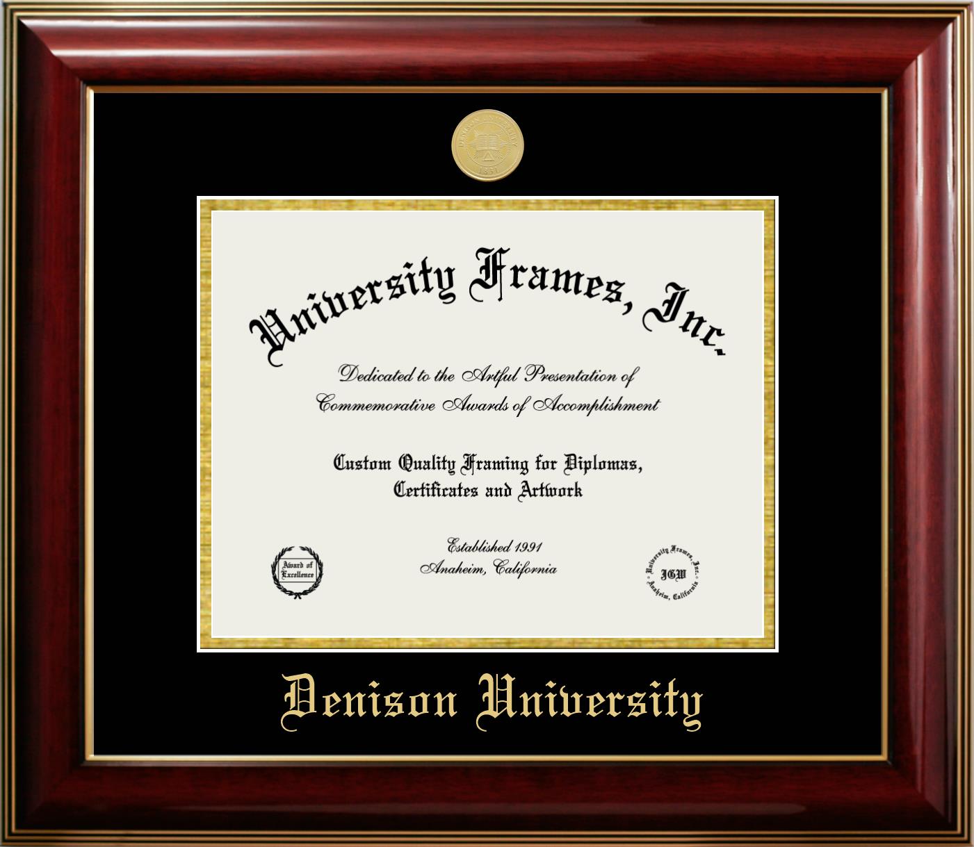 Showcase your achievement with a professional Denison University diploma frame. We offer officially licensed custom diploma frames that have the original Denison University seal. Our degree frames make great graduation gifts. All our frames are handcrafted to meet your style and preference. Each frame is carefully inspected to achieve the highest quality standards and precision. You can easily customize your college diploma frame with our online design tool. Customize your diploma frame now!