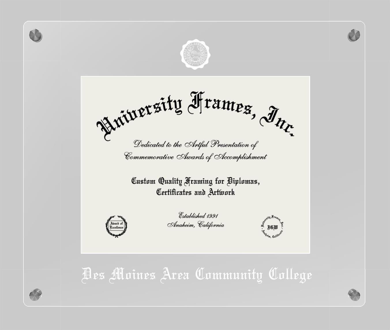 Showcase your achievement with a professional Des Moines Area Community College diploma frame. We offer officially licensed custom diploma frames that have the original Des Moines Area Community College seal. Our degree frames make great graduation gifts. All our frames are handcrafted to meet your style and preference. Each frame is carefully inspected to achieve the highest quality standards and precision. You can easily customize your college diploma frame with our online design tool. Customize your diploma frame now!