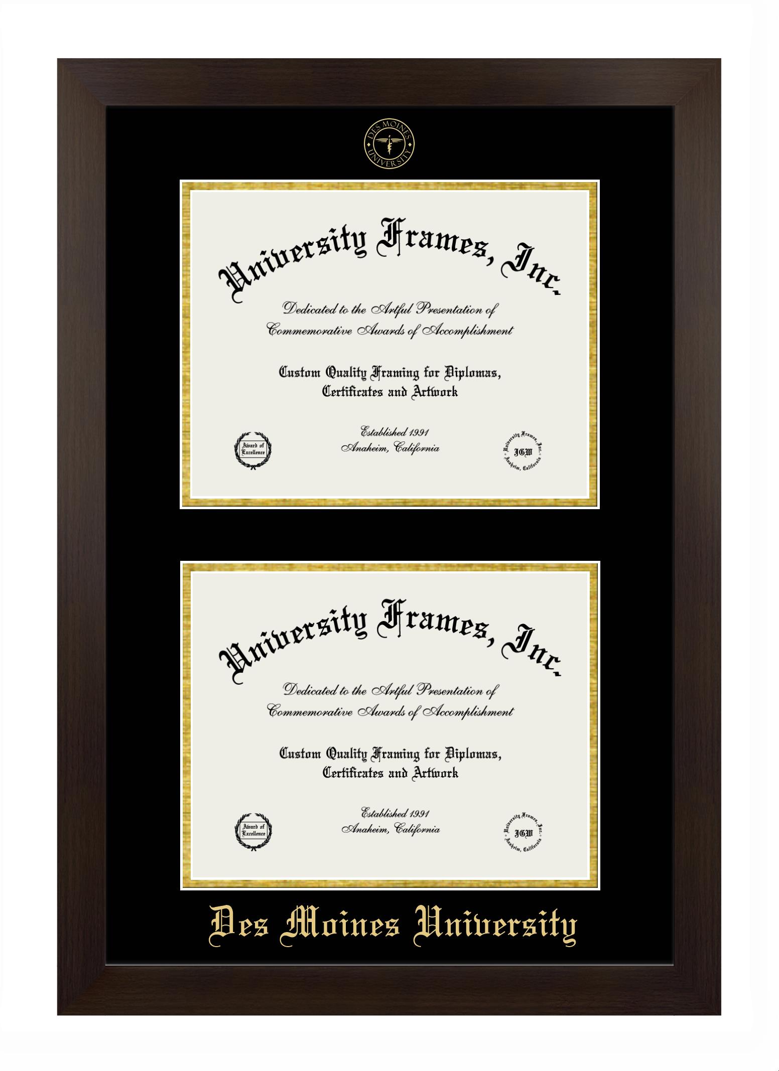 Showcase your achievement with a professional Des Moines University diploma frame. We offer officially licensed custom diploma frames that have the original Des Moines University seal. Our degree frames make great graduation gifts. All our frames are handcrafted to meet your style and preference. Each frame is carefully inspected to achieve the highest quality standards and precision. You can easily customize your college diploma frame with our online design tool. Customize your diploma frame now!
