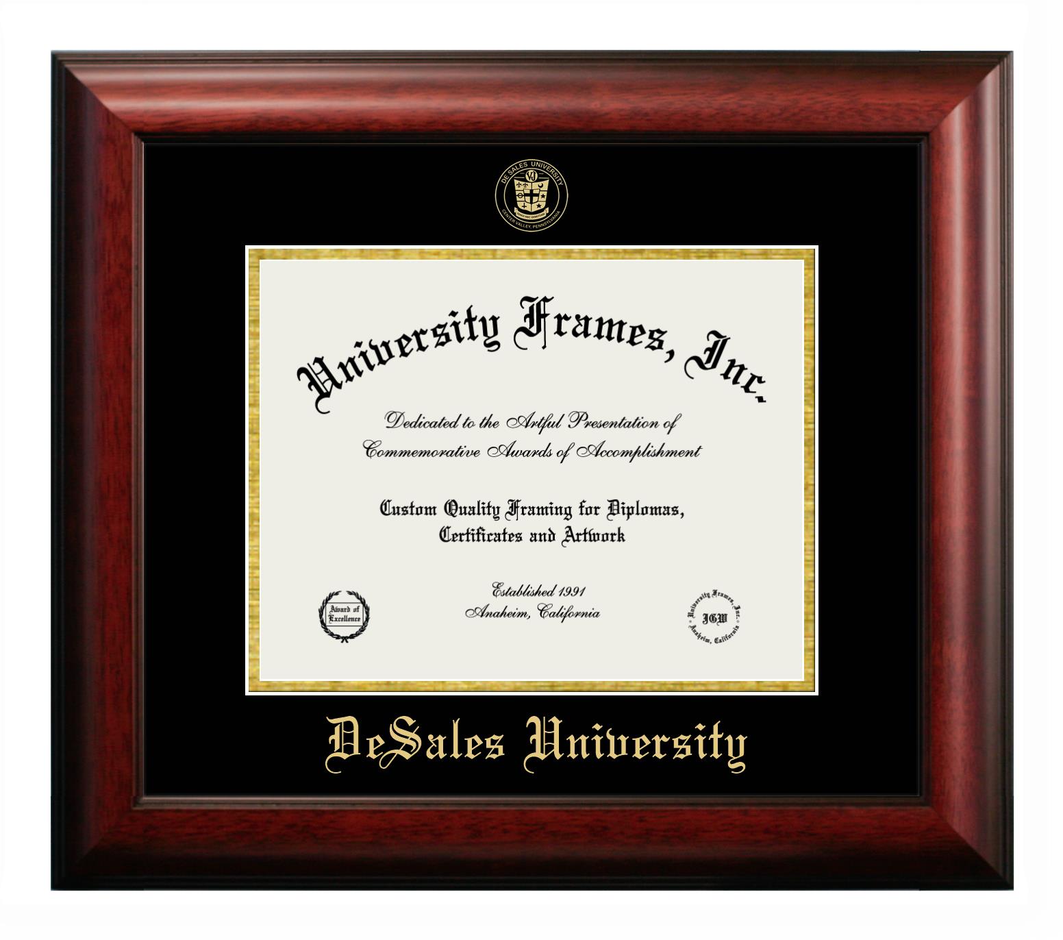 Showcase your achievement with a professional DeSales University diploma frame. We offer officially licensed custom diploma frames that have the original DeSales University seal. Our degree frames make great graduation gifts. All our frames are handcrafted to meet your style and preference. Each frame is carefully inspected to achieve the highest quality standards and precision. You can easily customize your college diploma frame with our online design tool. Customize your diploma frame now!