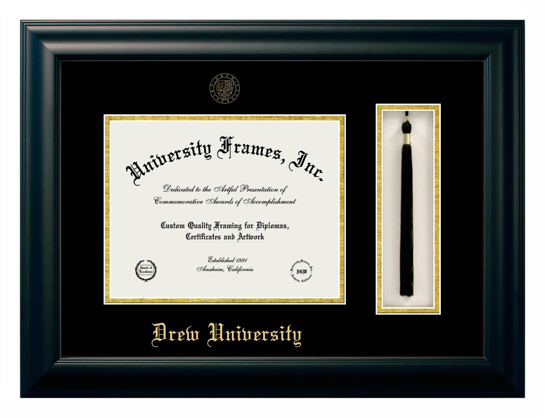 Showcase your achievement with a professional Drew University diploma frame. We offer officially licensed custom diploma frames that have the original Drew University seal. Our degree frames make great graduation gifts. All our frames are handcrafted to meet your style and preference. Each frame is carefully inspected to achieve the highest quality standards and precision. You can easily customize your college diploma frame with our online design tool. Customize your diploma frame now!