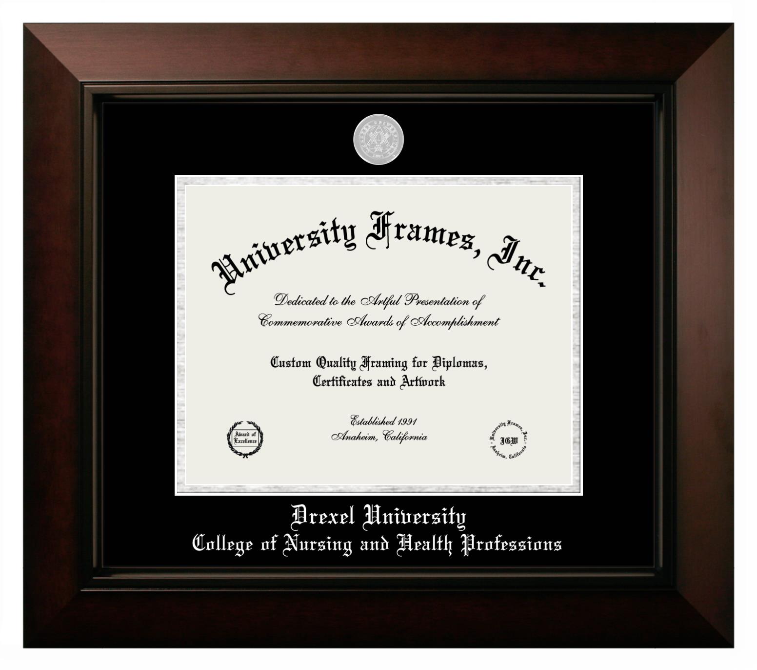 Showcase your achievement with a professional Drexel University College of Nursing and Health Professions diploma frame. We offer officially licensed custom diploma frames that have the original Drexel University College of Nursing and Health Professions seal. Our degree frames make great graduation gifts. All our frames are handcrafted to meet your style and preference. Each frame is carefully inspected to achieve the highest quality standards and precision. You can easily customize your college diploma frame with our online design tool. Customize your diploma frame now!