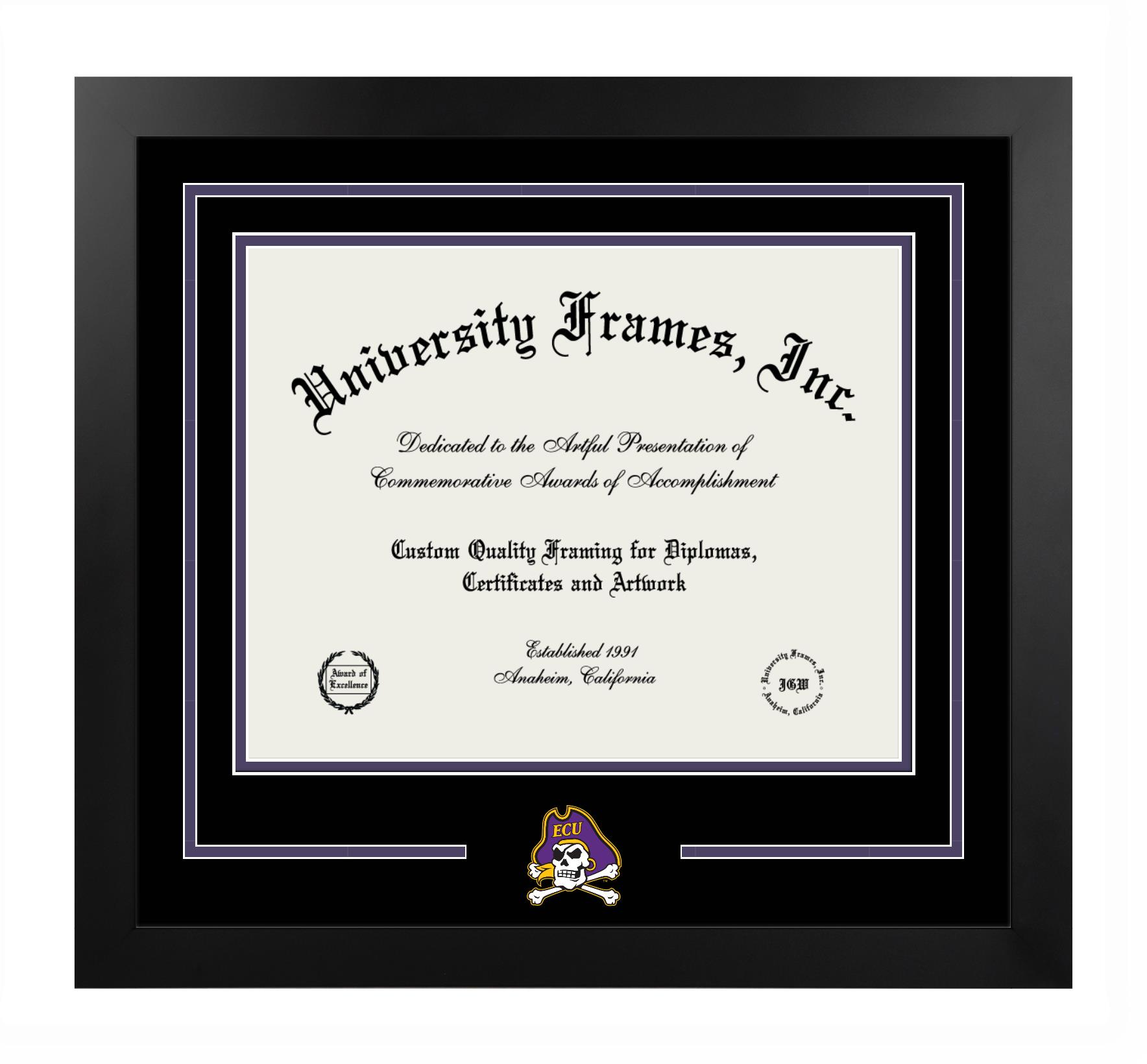 Showcase your achievement with a professional East Carolina University College of Engineering and Technology diploma frame. We offer officially licensed custom diploma frames that have the original East Carolina University College of Engineering and Technology seal. Our degree frames make great graduation gifts. All our frames are handcrafted to meet your style and preference. Each frame is carefully inspected to achieve the highest quality standards and precision. You can easily customize your college diploma frame with our online design tool. Customize your diploma frame now!