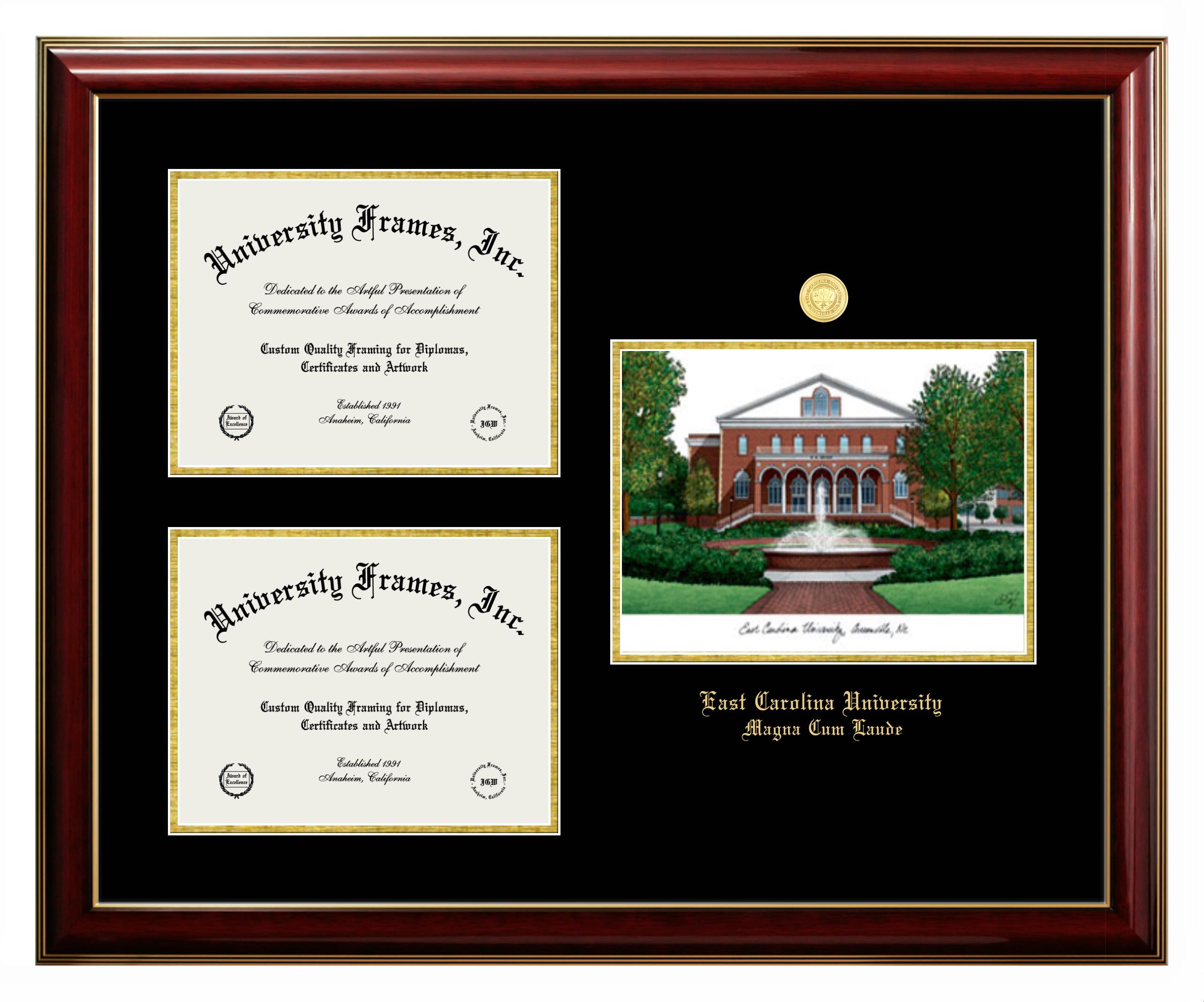 Showcase your achievement with a professional East Carolina University Magna Cum Laude diploma frame. We offer officially licensed custom diploma frames that have the original East Carolina University Magna Cum Laude seal. Our degree frames make great graduation gifts. All our frames are handcrafted to meet your style and preference. Each frame is carefully inspected to achieve the highest quality standards and precision. You can easily customize your college diploma frame with our online design tool. Customize your diploma frame now!