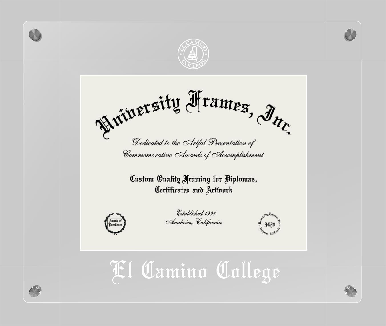 Showcase your achievement with a professional El Camino College diploma frame. We offer officially licensed custom diploma frames that have the original El Camino College seal. Our degree frames make great graduation gifts. All our frames are handcrafted to meet your style and preference. Each frame is carefully inspected to achieve the highest quality standards and precision. You can easily customize your college diploma frame with our online design tool. Customize your diploma frame now!