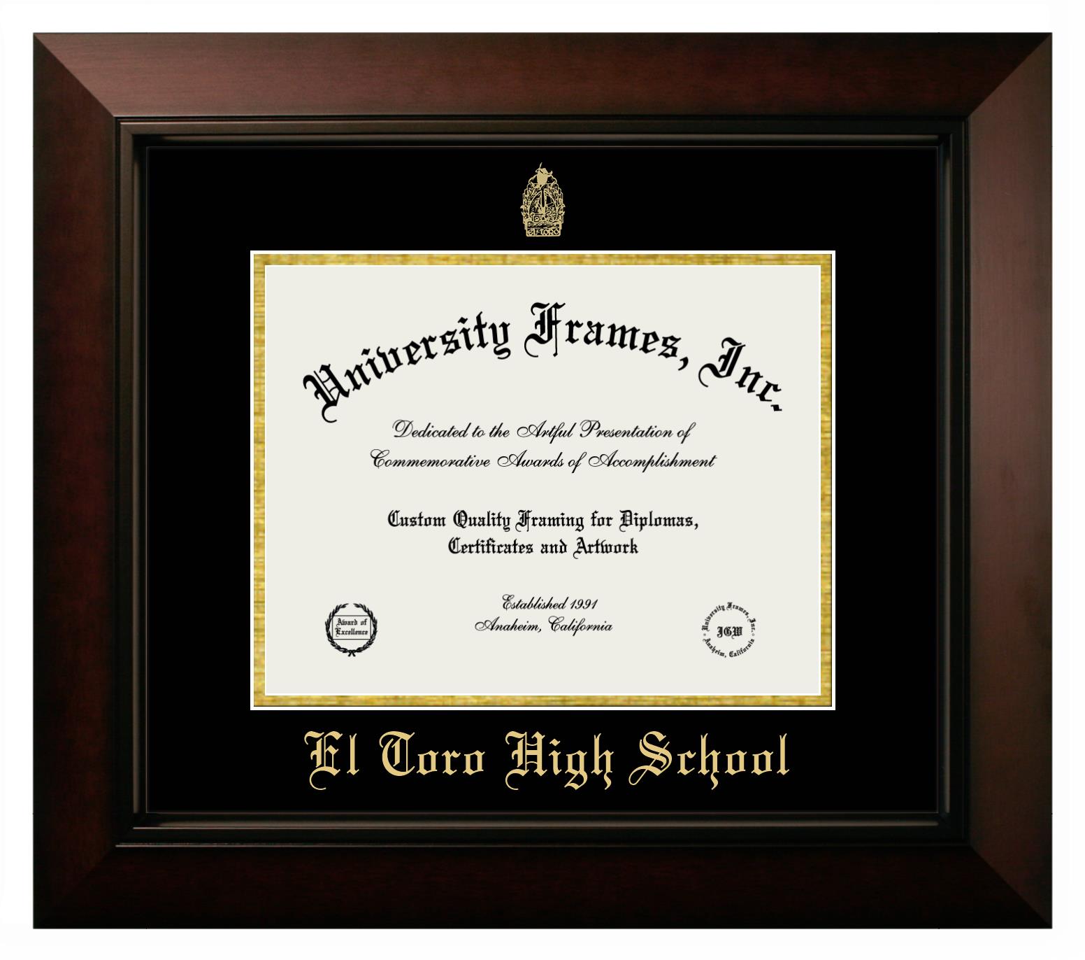 Showcase your achievement with a professional El Toro High School diploma frame. We offer officially licensed custom diploma frames that have the original El Toro High School seal. Our degree frames make great graduation gifts. All our frames are handcrafted to meet your style and preference. Each frame is carefully inspected to achieve the highest quality standards and precision. You can easily customize your college diploma frame with our online design tool. Customize your diploma frame now!