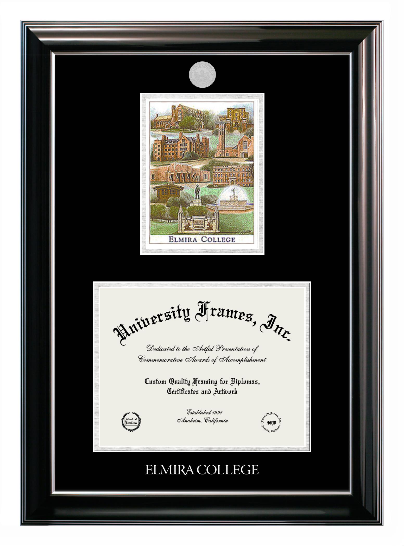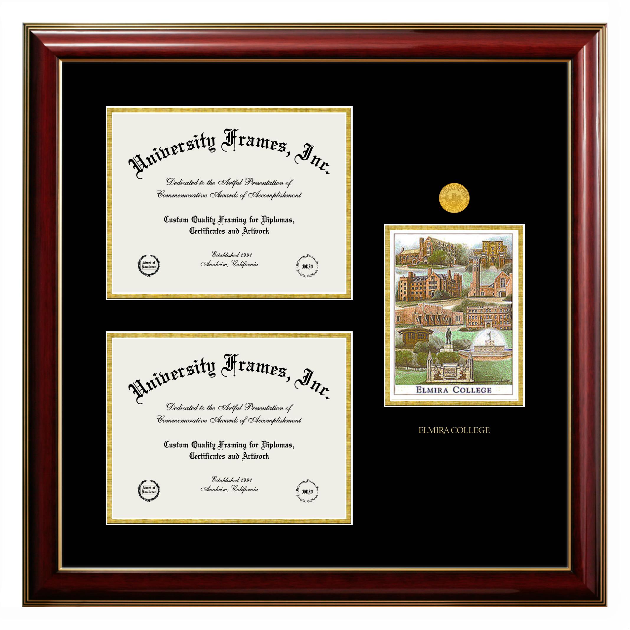 Showcase your achievement with a professional Elmira College diploma frame. We offer officially licensed custom diploma frames that have the original Elmira College seal. Our degree frames make great graduation gifts. All our frames are handcrafted to meet your style and preference. Each frame is carefully inspected to achieve the highest quality standards and precision. You can easily customize your college diploma frame with our online design tool. Customize your diploma frame now!