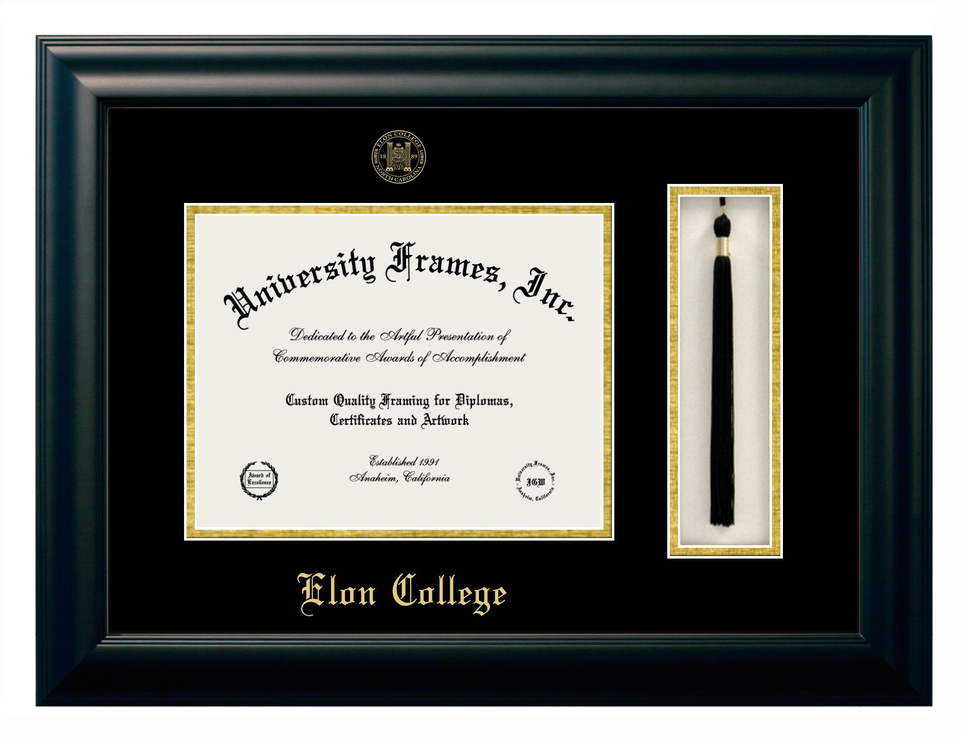Showcase your achievement with a professional Elon College diploma frame. We offer officially licensed custom diploma frames that have the original Elon College seal. Our degree frames make great graduation gifts. All our frames are handcrafted to meet your style and preference. Each frame is carefully inspected to achieve the highest quality standards and precision. You can easily customize your college diploma frame with our online design tool. Customize your diploma frame now!