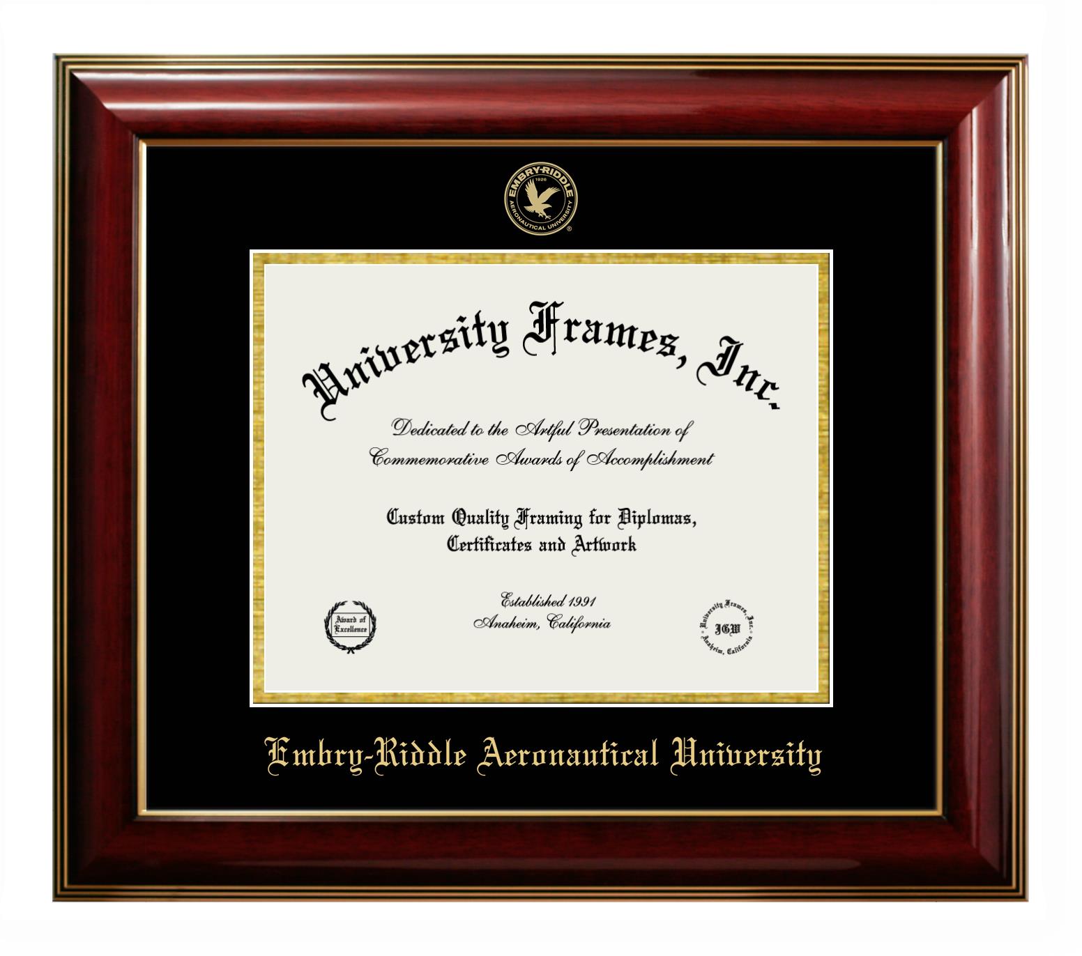 Showcase your achievement with a professional Embry-Riddle Aeronautical University (Prescott Campus) diploma frame. We offer officially licensed custom diploma frames that have the original Embry-Riddle Aeronautical University (Prescott Campus) seal. Our degree frames make great graduation gifts. All our frames are handcrafted to meet your style and preference. Each frame is carefully inspected to achieve the highest quality standards and precision. You can easily customize your college diploma frame with our online design tool. Customize your diploma frame now!