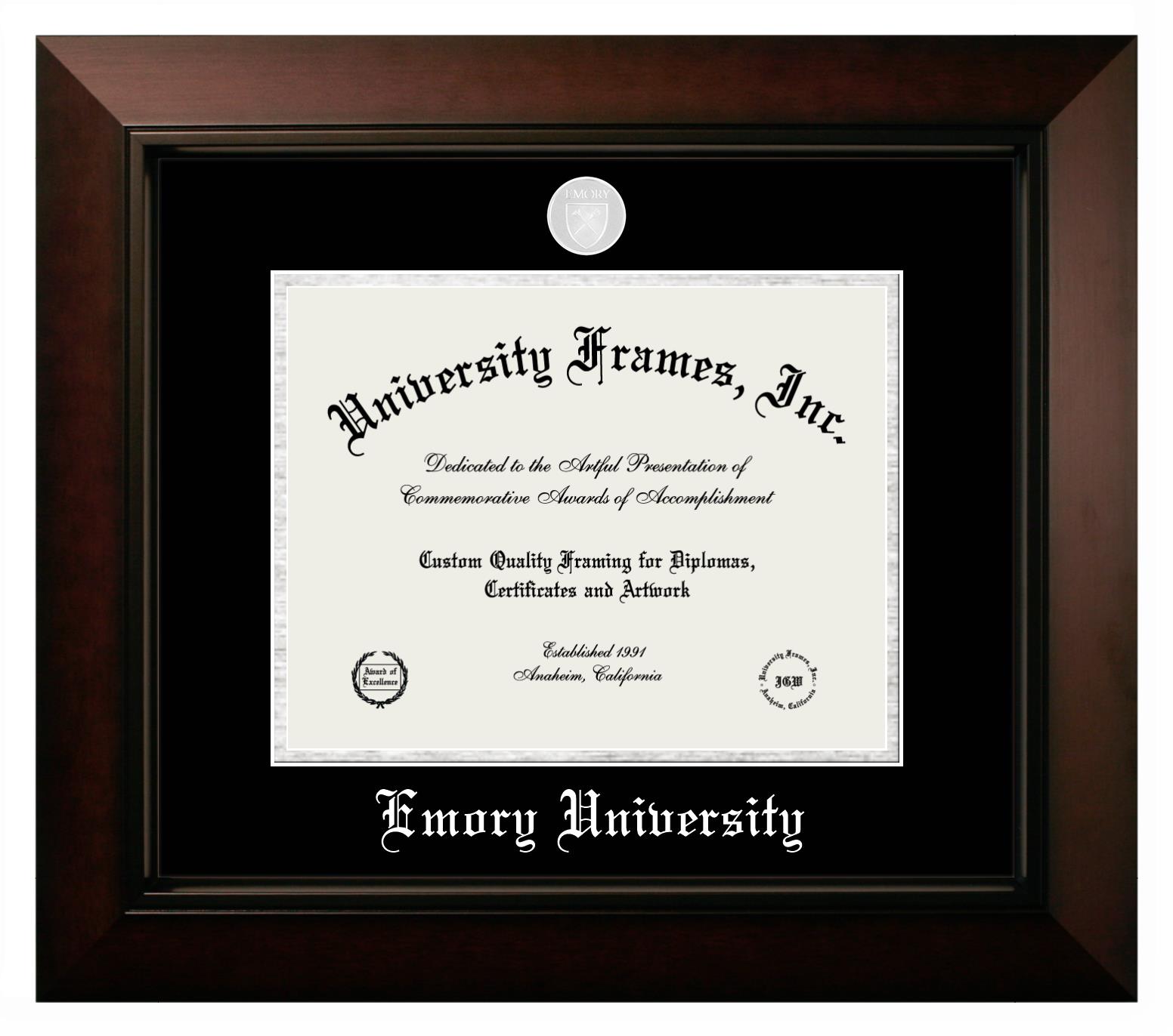 Hey there, Emory University grads. Congratulations for your accomplishment! Since you’re here, you must be looking for a professional graduation frame to preserve and showcase your Emory University diploma. Or, you may be looking for a diploma frame for another grad. We at University Frames, create the finest diploma frames and are licensed with Emory University. Each of our degree frames is handcrafted in the US using the finest hardwood and with an exemplary level of attention to detail. Customize your diploma frame using our easy and intuitive online design tool.
