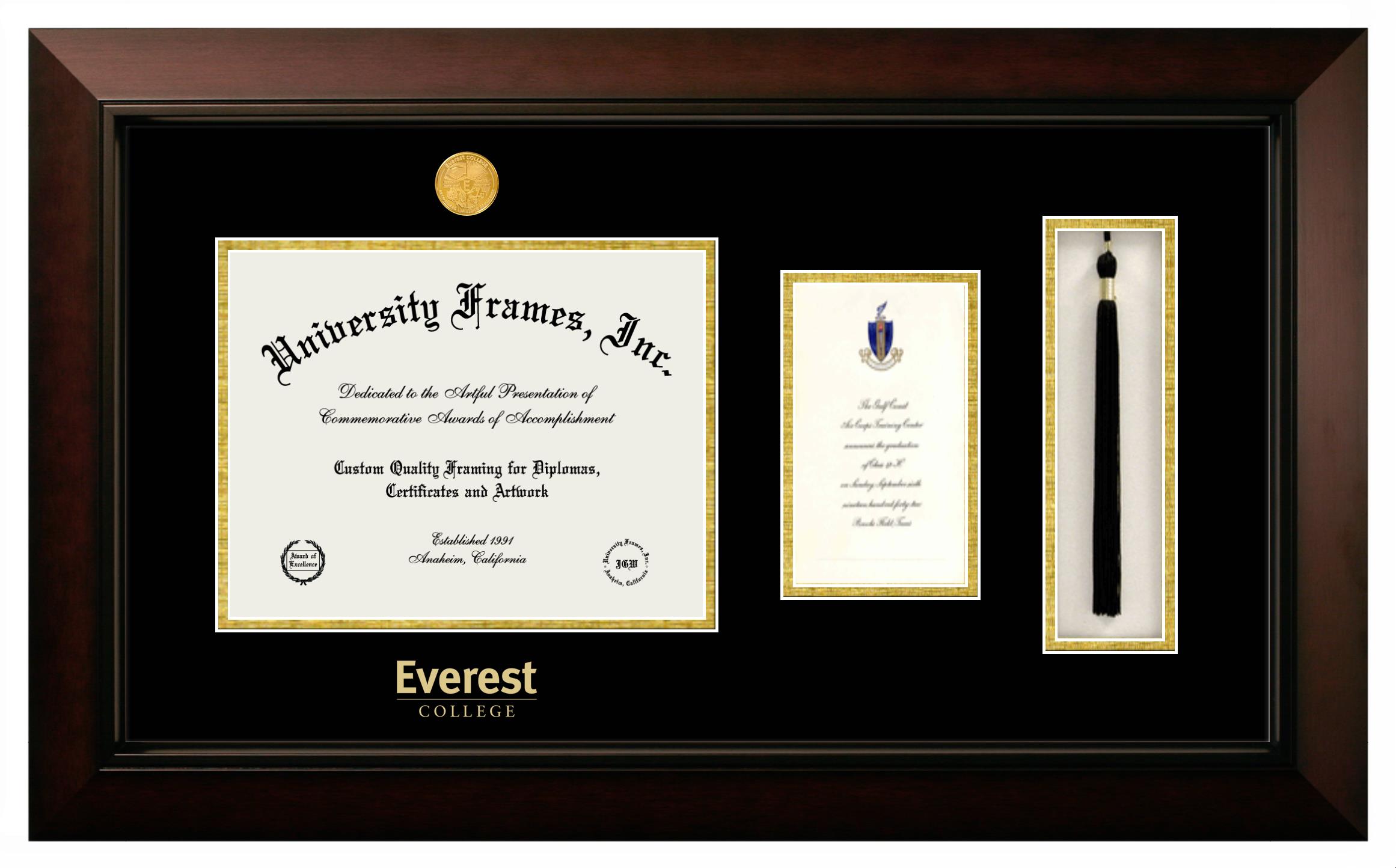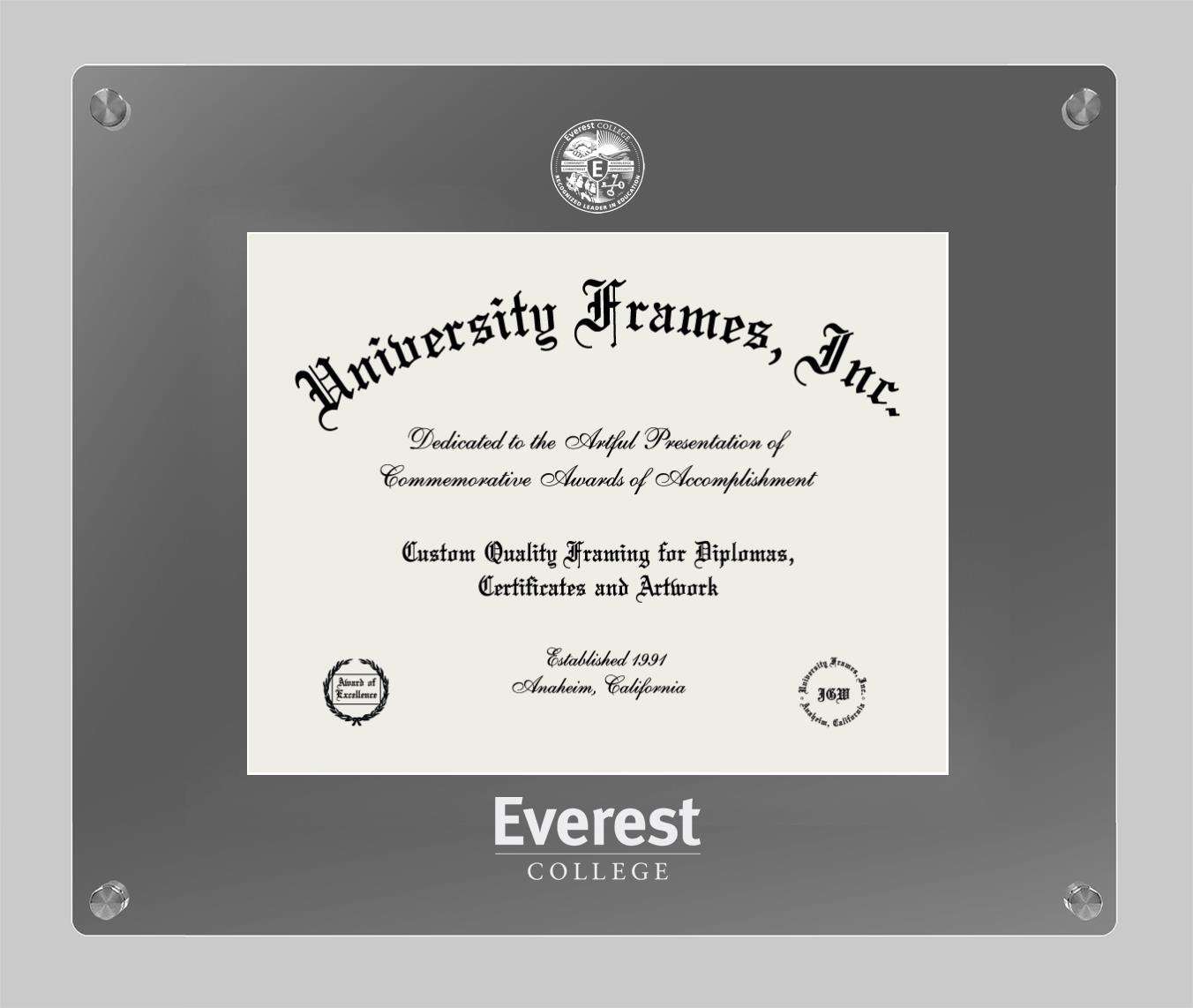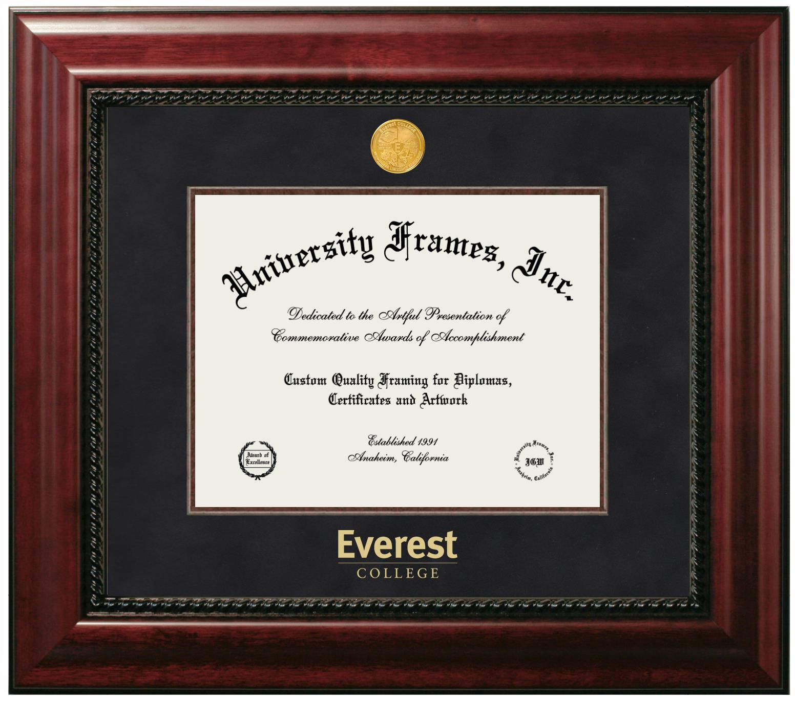 Showcase your achievement with a professional Everest College diploma frame. We offer officially licensed custom diploma frames that have the original Everest College seal. Our degree frames make great graduation gifts. All our frames are handcrafted to meet your style and preference. Each frame is carefully inspected to achieve the highest quality standards and precision. You can easily customize your college diploma frame with our online design tool. Customize your diploma frame now!