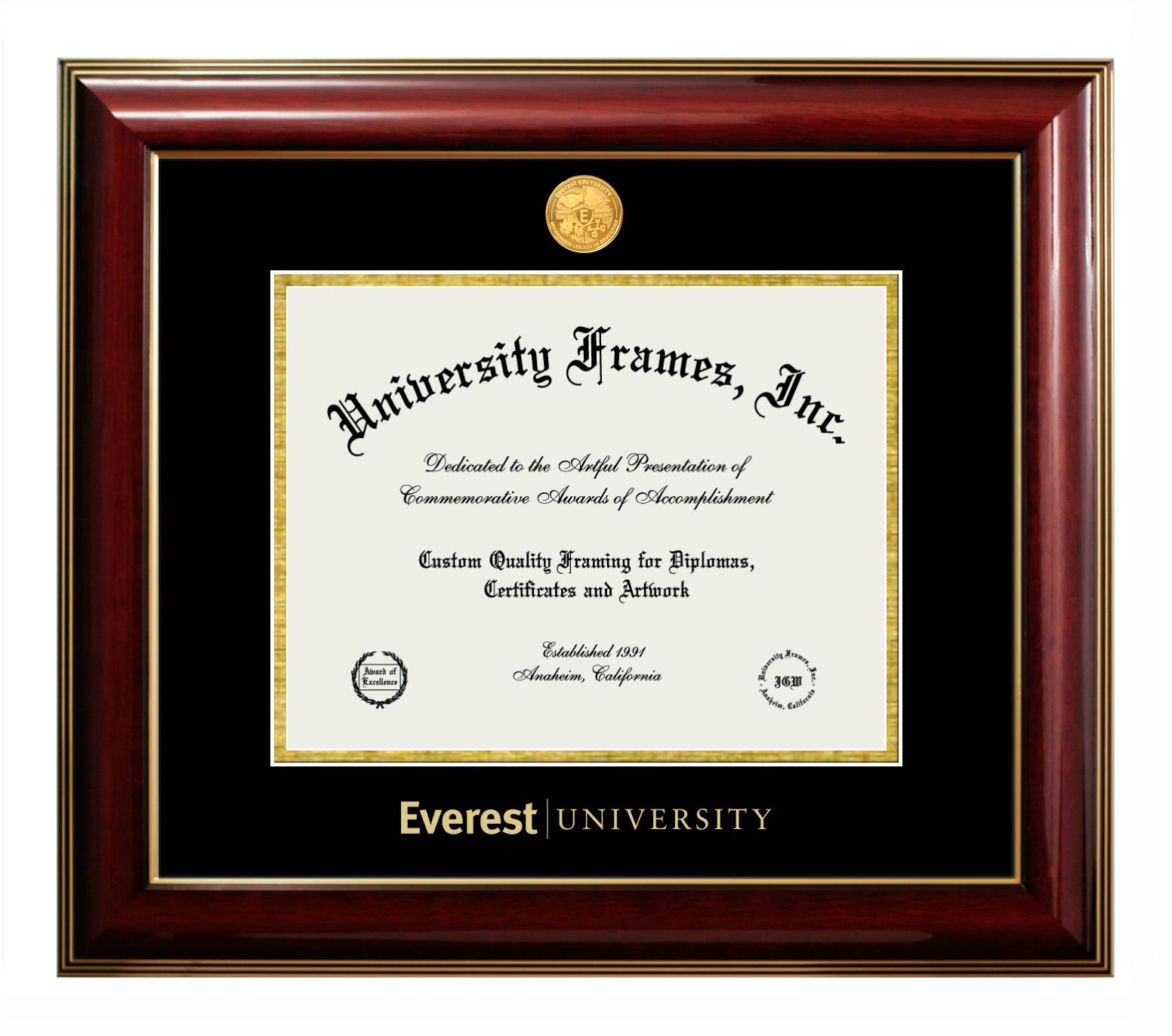 Showcase your achievement with a professional Everest University diploma frame. We offer officially licensed custom diploma frames that have the original Everest University seal. Our degree frames make great graduation gifts. All our frames are handcrafted to meet your style and preference. Each frame is carefully inspected to achieve the highest quality standards and precision. You can easily customize your college diploma frame with our online design tool. Customize your diploma frame now!
