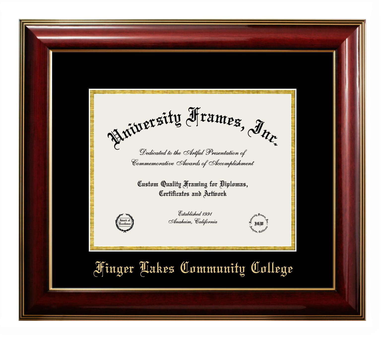 Showcase your achievement with a professional Finger Lakes Community College diploma frame. We offer officially licensed custom diploma frames that have the original Finger Lakes Community College seal. Our degree frames make great graduation gifts. All our frames are handcrafted to meet your style and preference. Each frame is carefully inspected to achieve the highest quality standards and precision. You can easily customize your college diploma frame with our online design tool. Customize your diploma frame now!
