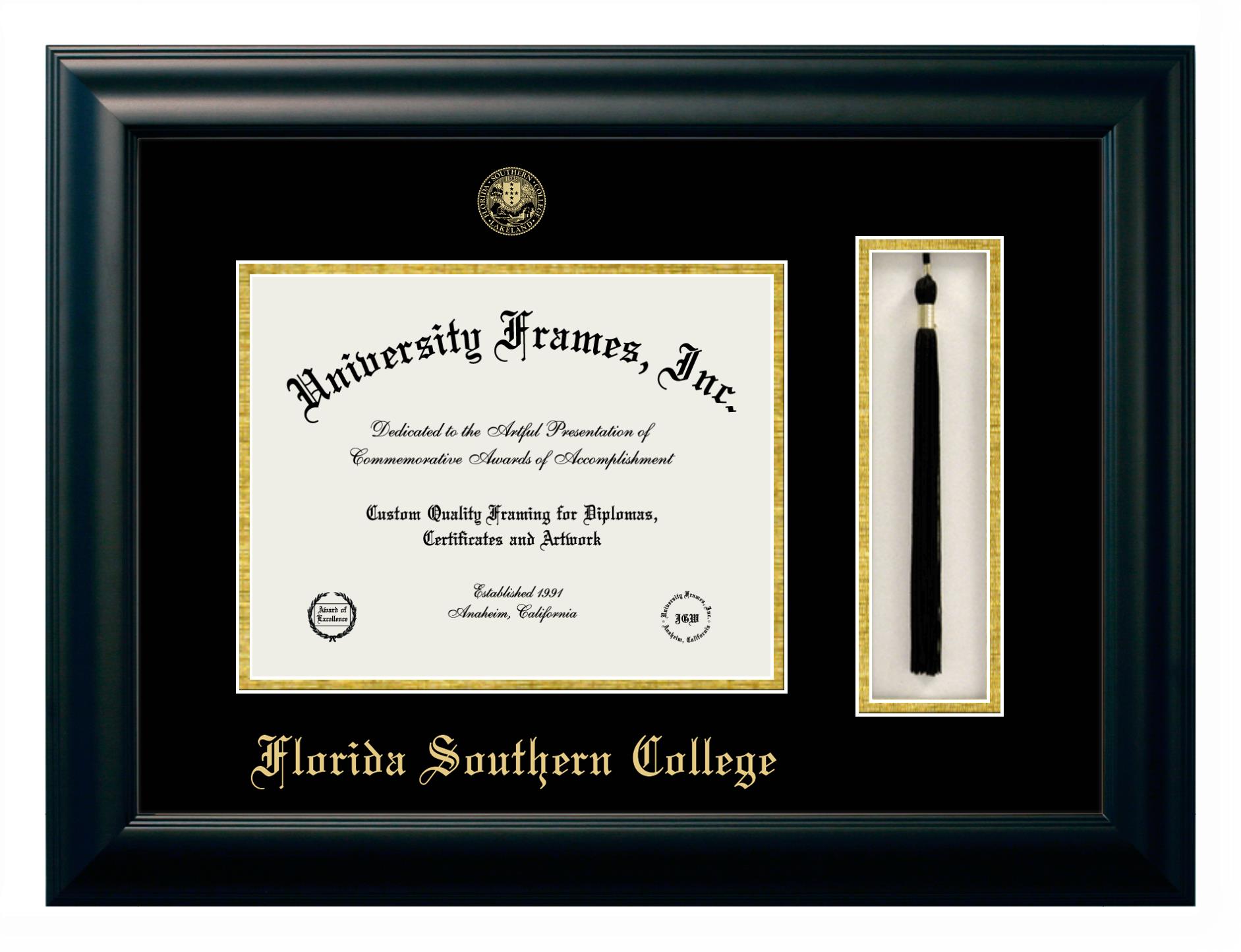 Showcase your achievement with a professional Florida Southern College diploma frame. We offer officially licensed custom diploma frames that have the original Florida Southern College seal. Our degree frames make great graduation gifts. All our frames are handcrafted to meet your style and preference. Each frame is carefully inspected to achieve the highest quality standards and precision. You can easily customize your college diploma frame with our online design tool. Customize your diploma frame now!
