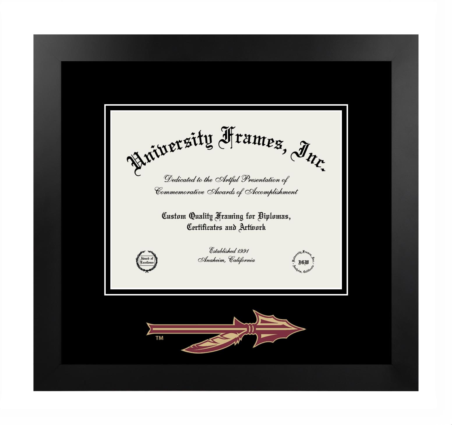 Showcase your achievement with a professional Florida State University College of Human Sciences diploma frame. We offer officially licensed custom diploma frames that have the original Florida State University College of Human Sciences seal. Our degree frames make great graduation gifts. All our frames are handcrafted to meet your style and preference. Each frame is carefully inspected to achieve the highest quality standards and precision. You can easily customize your college diploma frame with our online design tool. Customize your diploma frame now!