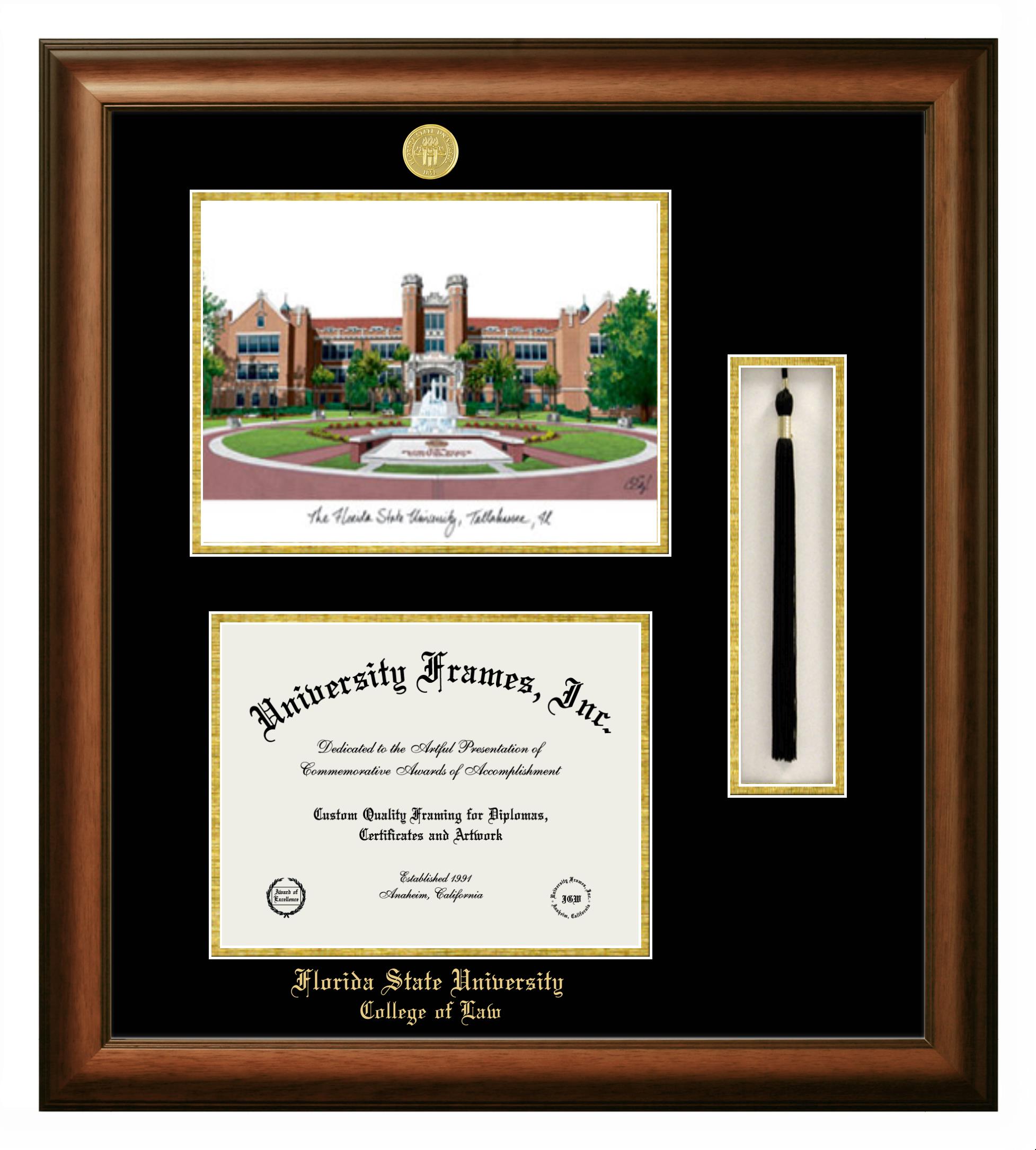 Showcase your achievement with a professional Florida State University College of Law diploma frame. We offer officially licensed custom diploma frames that have the original Florida State University College of Law seal. Our degree frames make great graduation gifts. All our frames are handcrafted to meet your style and preference. Each frame is carefully inspected to achieve the highest quality standards and precision. You can easily customize your college diploma frame with our online design tool. Customize your diploma frame now!