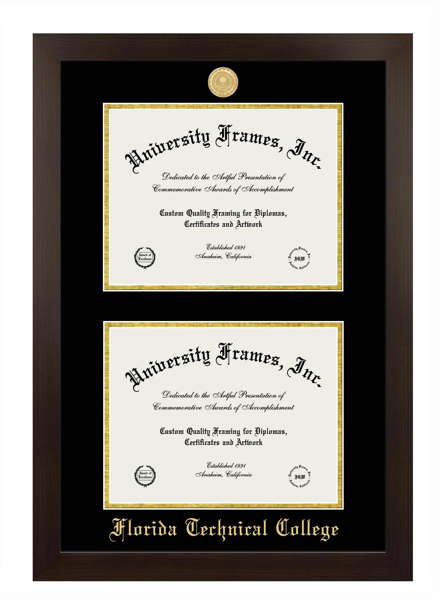 Showcase your achievement with a professional Florida Technical College diploma frame. We offer officially licensed custom diploma frames that have the original Florida Technical College seal. Our degree frames make great graduation gifts. All our frames are handcrafted to meet your style and preference. Each frame is carefully inspected to achieve the highest quality standards and precision. You can easily customize your college diploma frame with our online design tool. Customize your diploma frame now!