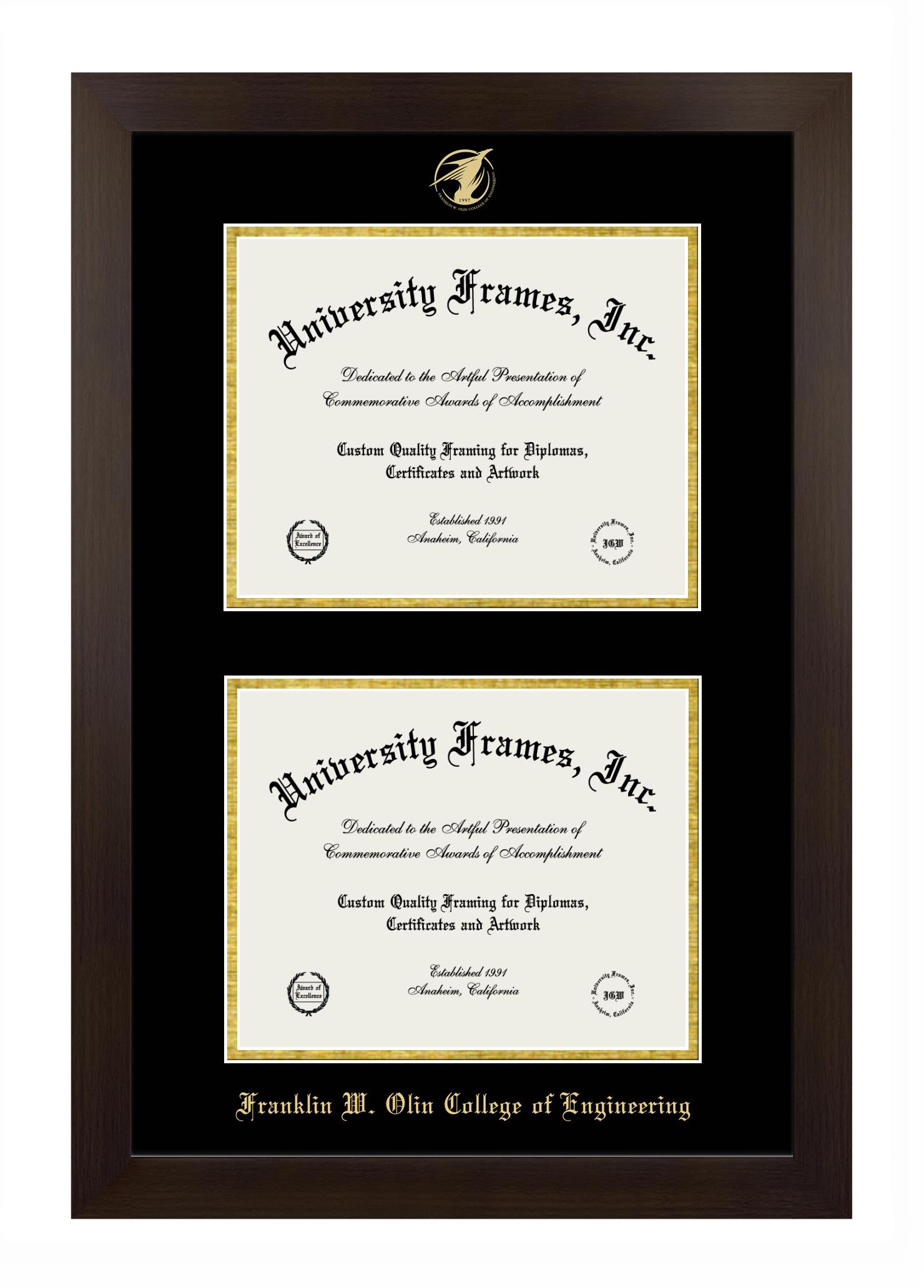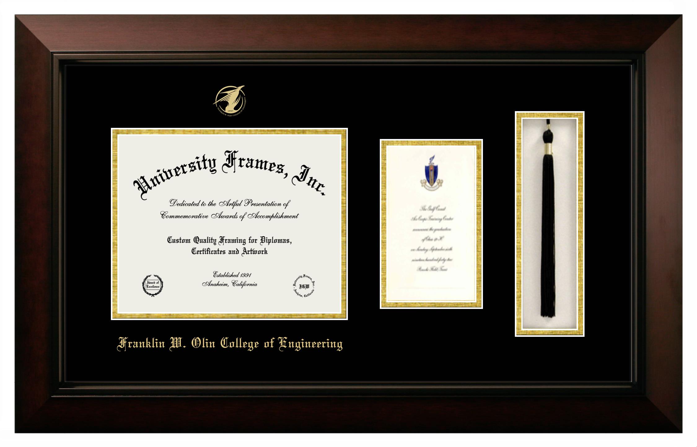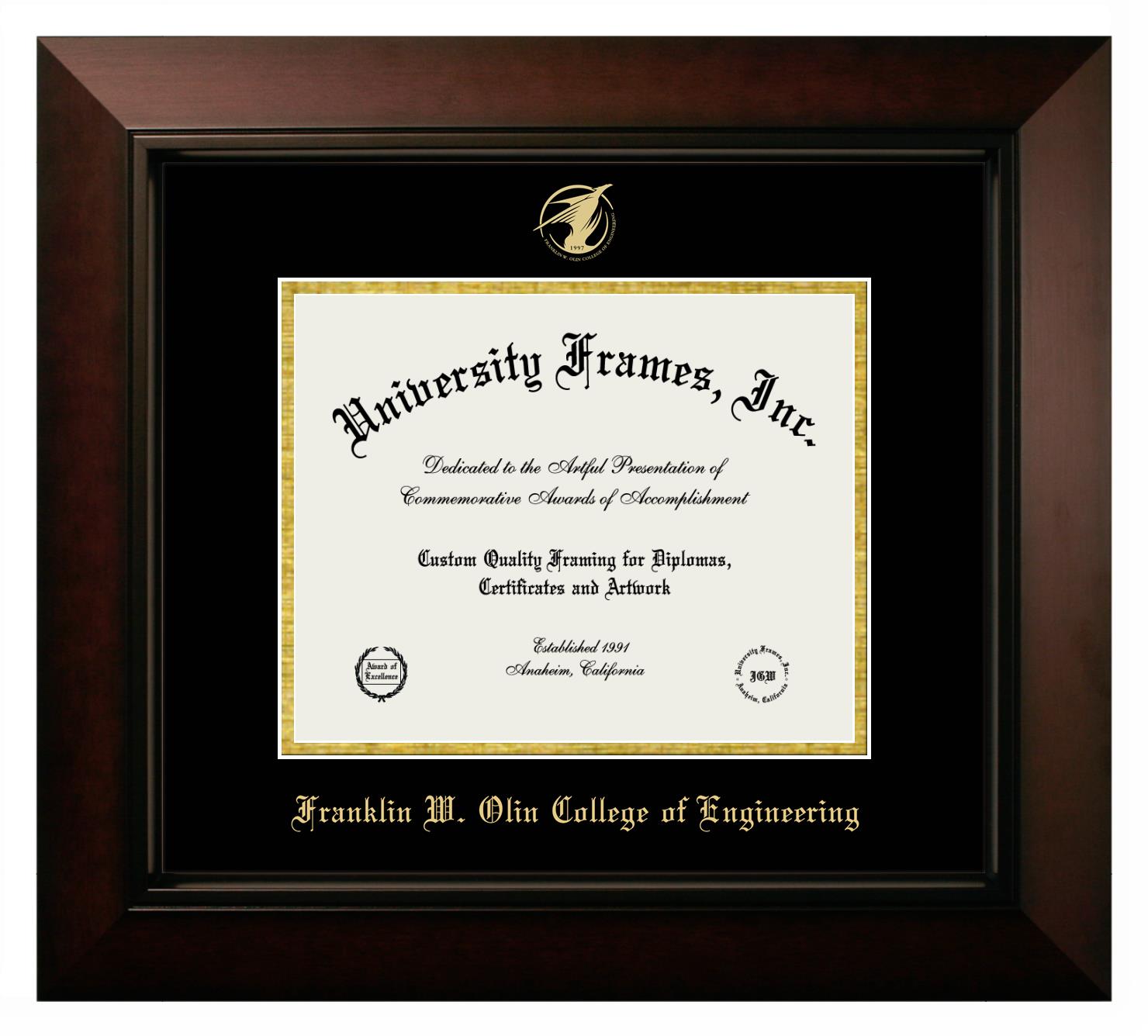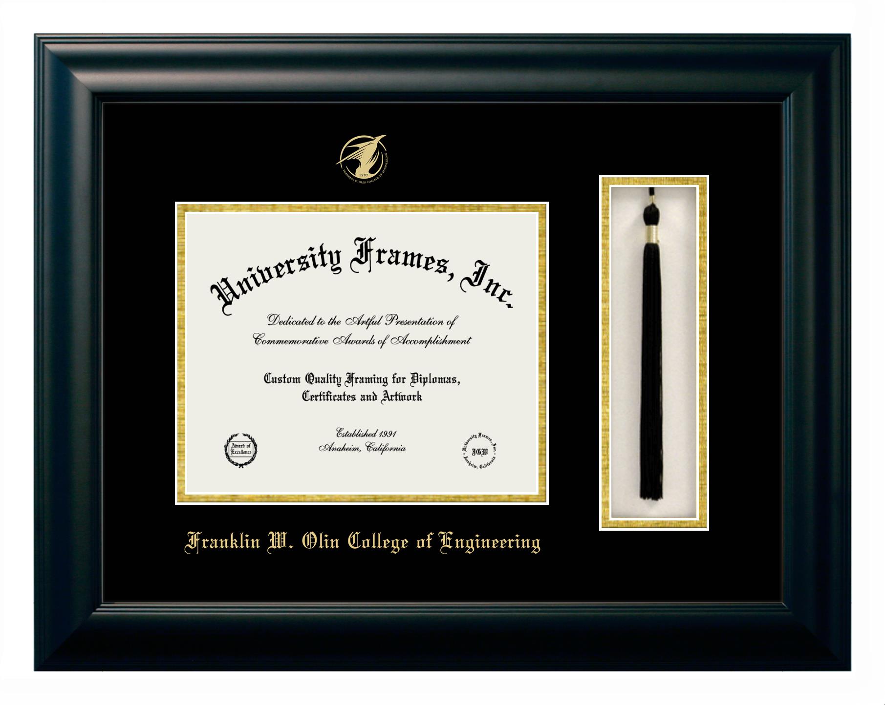 Showcase your achievement with a professional Franklin W. Olin College of Engineering diploma frame. We offer officially licensed custom diploma frames that have the original Franklin W. Olin College of Engineering seal. Our degree frames make great graduation gifts. All our frames are handcrafted to meet your style and preference. Each frame is carefully inspected to achieve the highest quality standards and precision. You can easily customize your college diploma frame with our online design tool. Customize your diploma frame now!