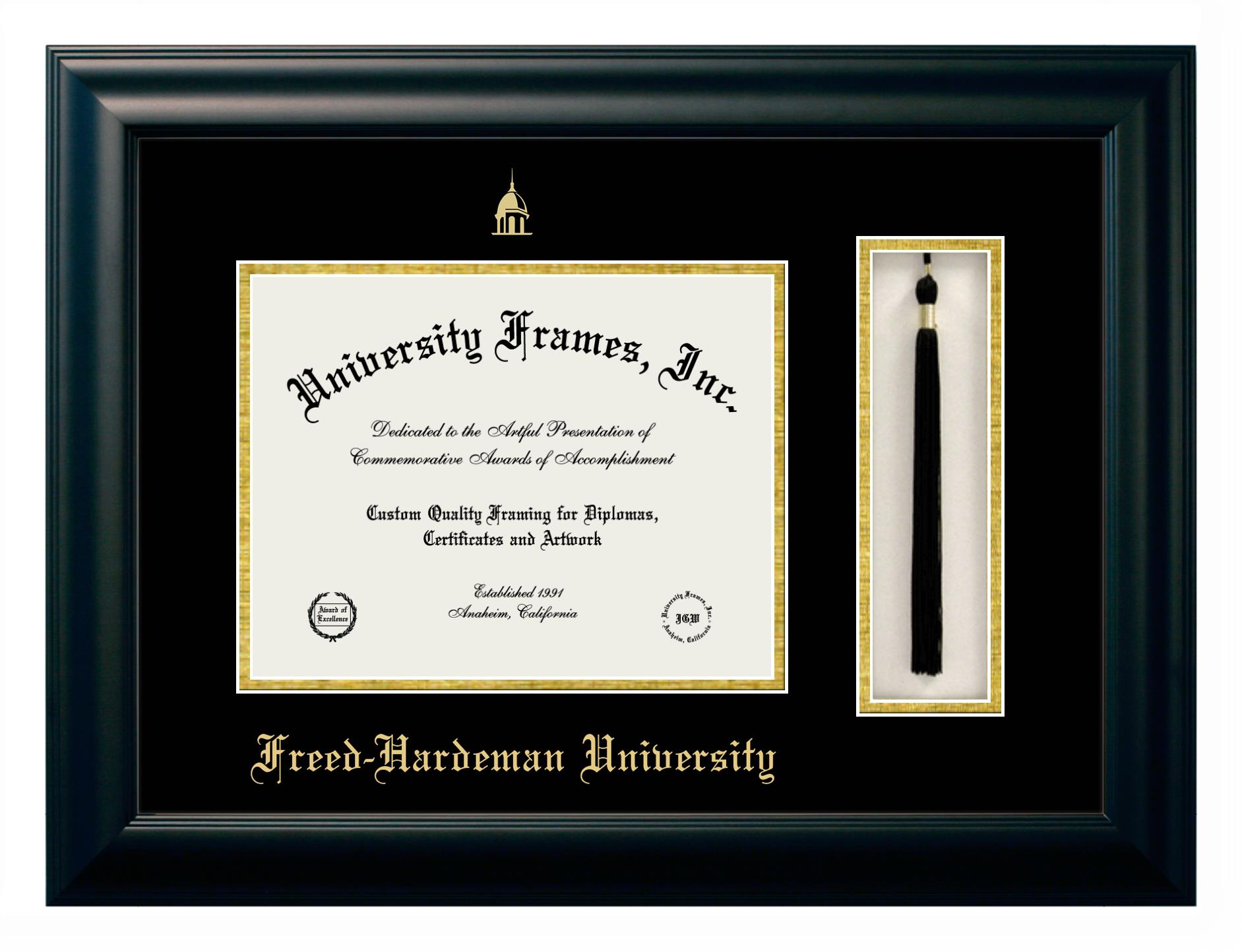 Showcase your achievement with a professional Freed-Hardeman University diploma frame. We offer officially licensed custom diploma frames that have the original Freed-Hardeman University seal. Our degree frames make great graduation gifts. All our frames are handcrafted to meet your style and preference. Each frame is carefully inspected to achieve the highest quality standards and precision. You can easily customize your college diploma frame with our online design tool. Customize your diploma frame now!