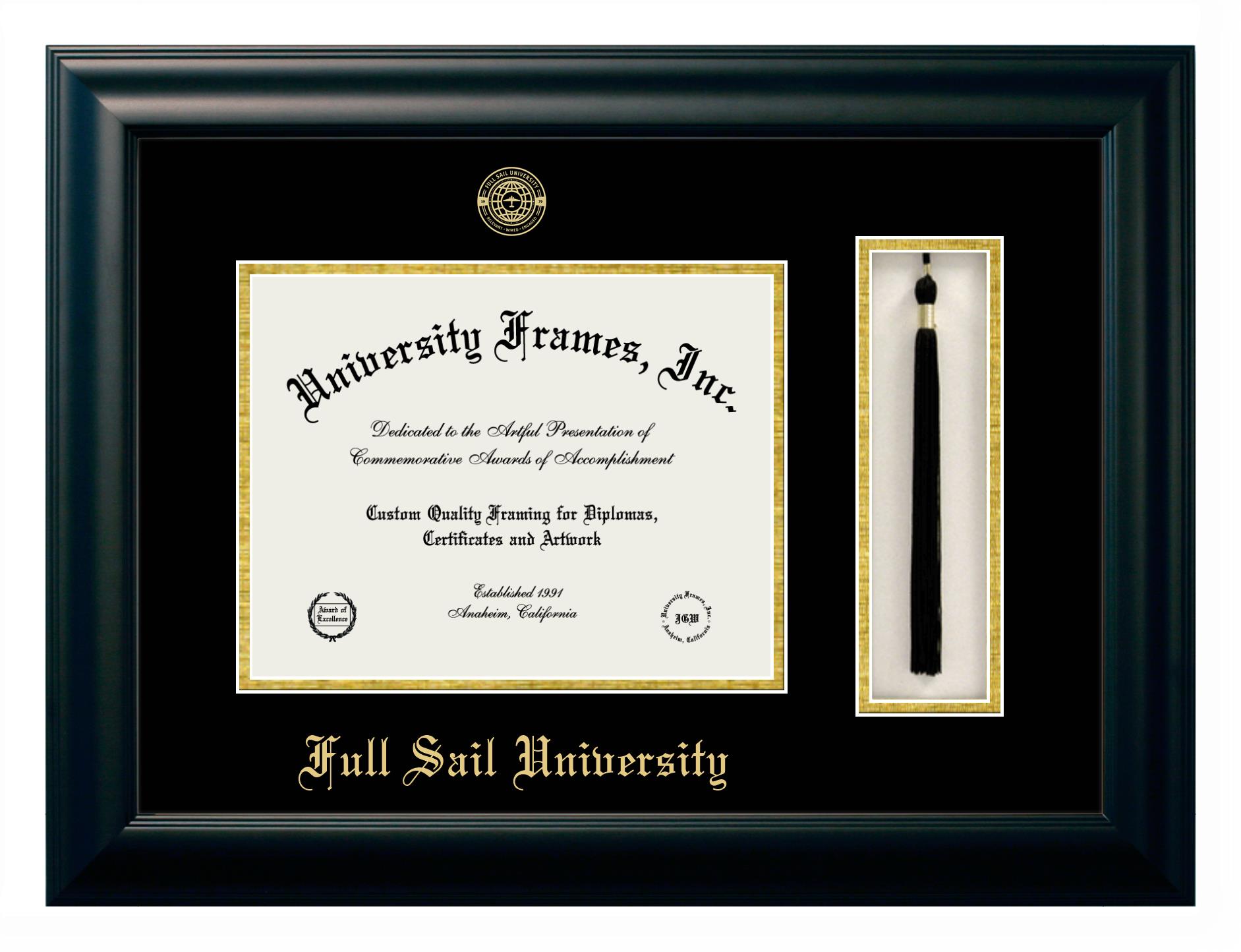Showcase your achievement with a professional Full Sail University diploma frame. We offer officially licensed custom diploma frames that have the original Full Sail University seal. Our degree frames make great graduation gifts. All our frames are handcrafted to meet your style and preference. Each frame is carefully inspected to achieve the highest quality standards and precision. You can easily customize your college diploma frame with our online design tool. Customize your diploma frame now!