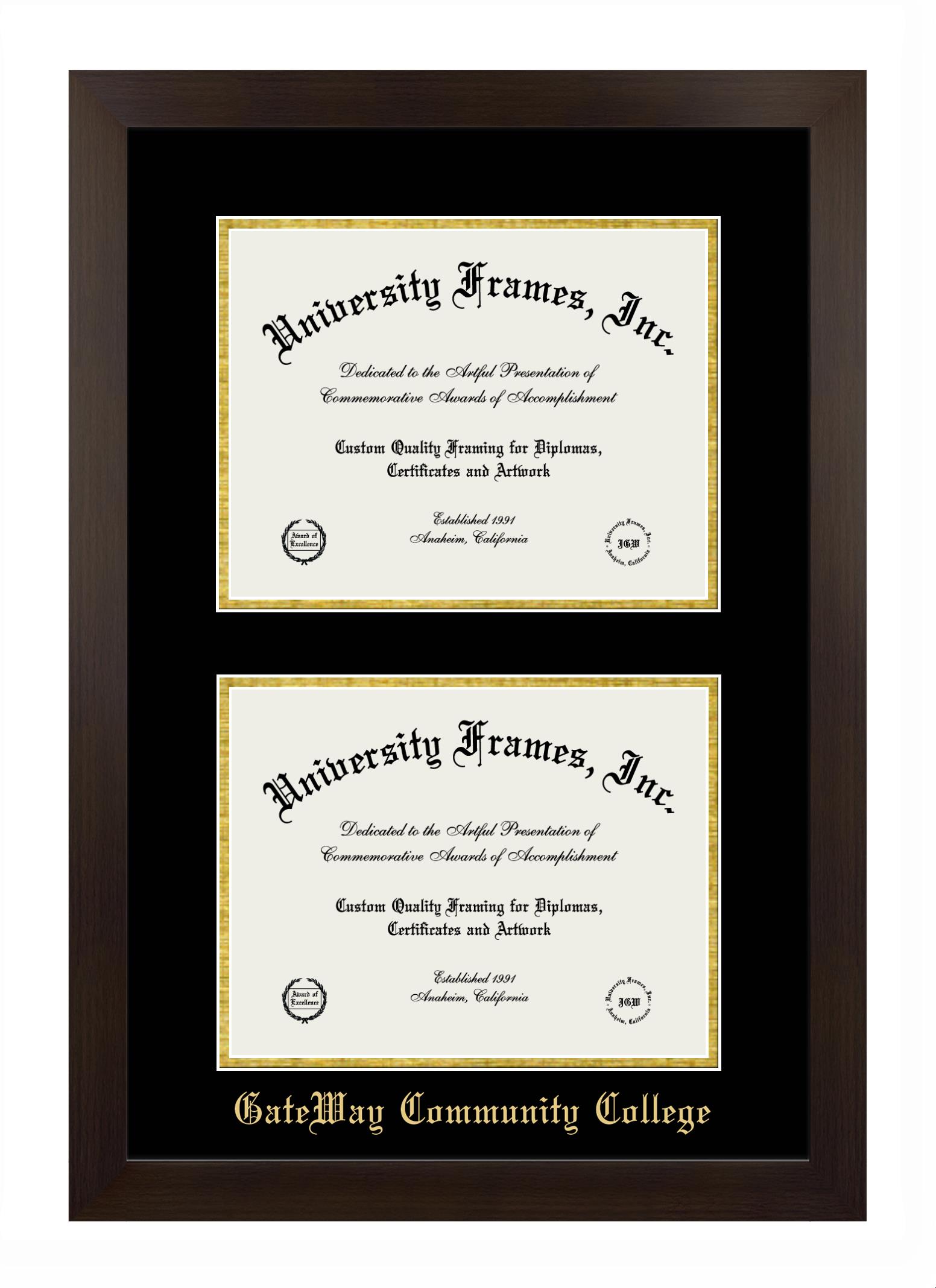 Showcase your achievement with a professional GateWay Community College (AZ) diploma frame. We offer officially licensed custom diploma frames that have the original GateWay Community College (AZ) seal. Our degree frames make great graduation gifts. All our frames are handcrafted to meet your style and preference. Each frame is carefully inspected to achieve the highest quality standards and precision. You can easily customize your college diploma frame with our online design tool. Customize your diploma frame now!