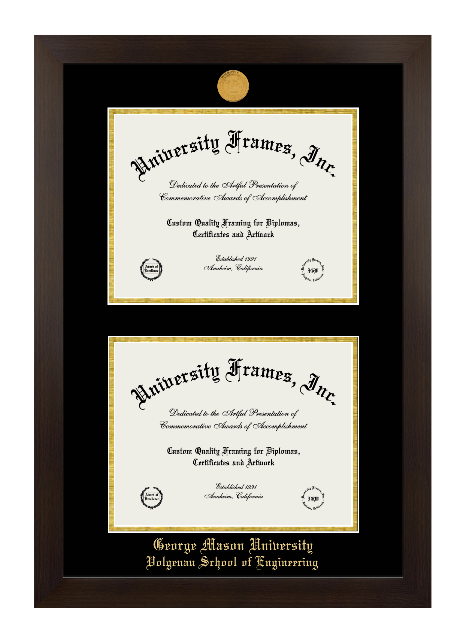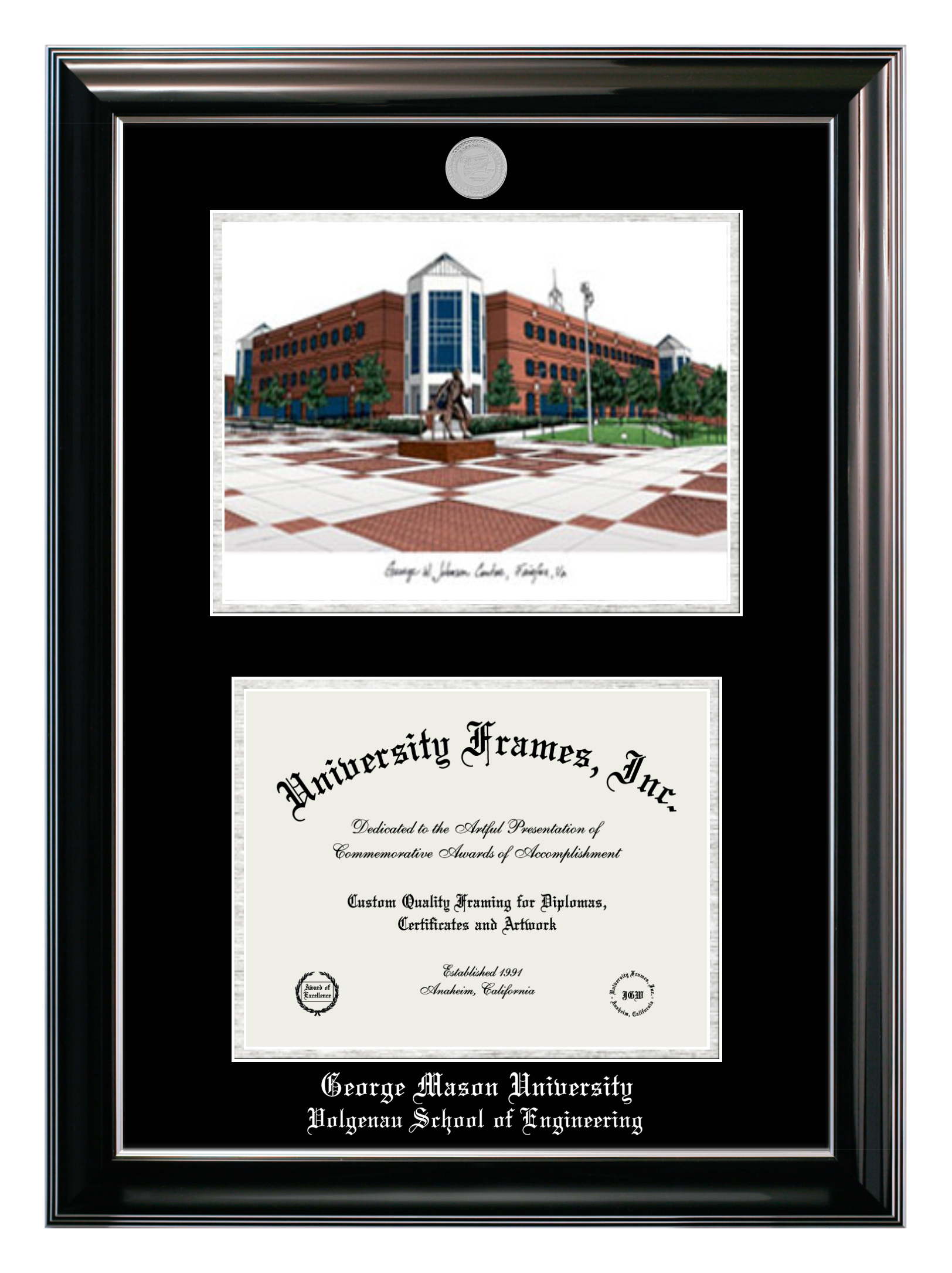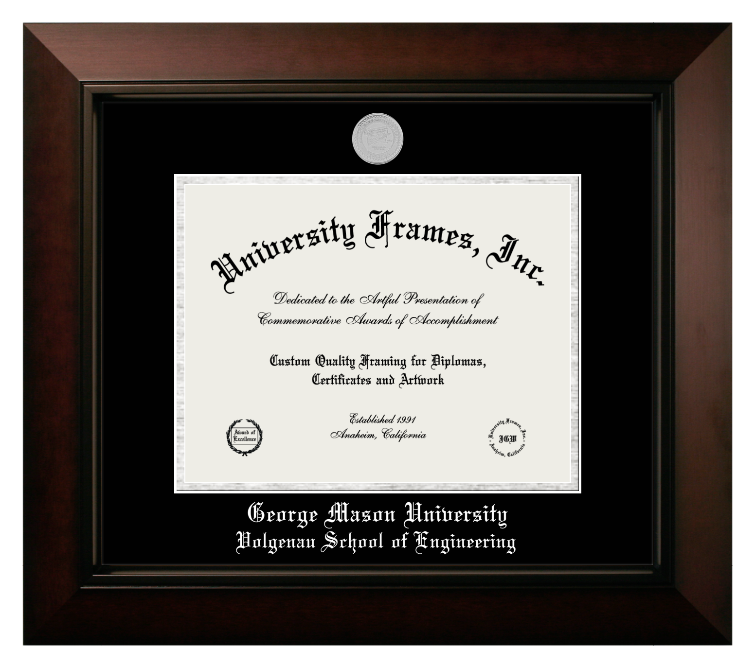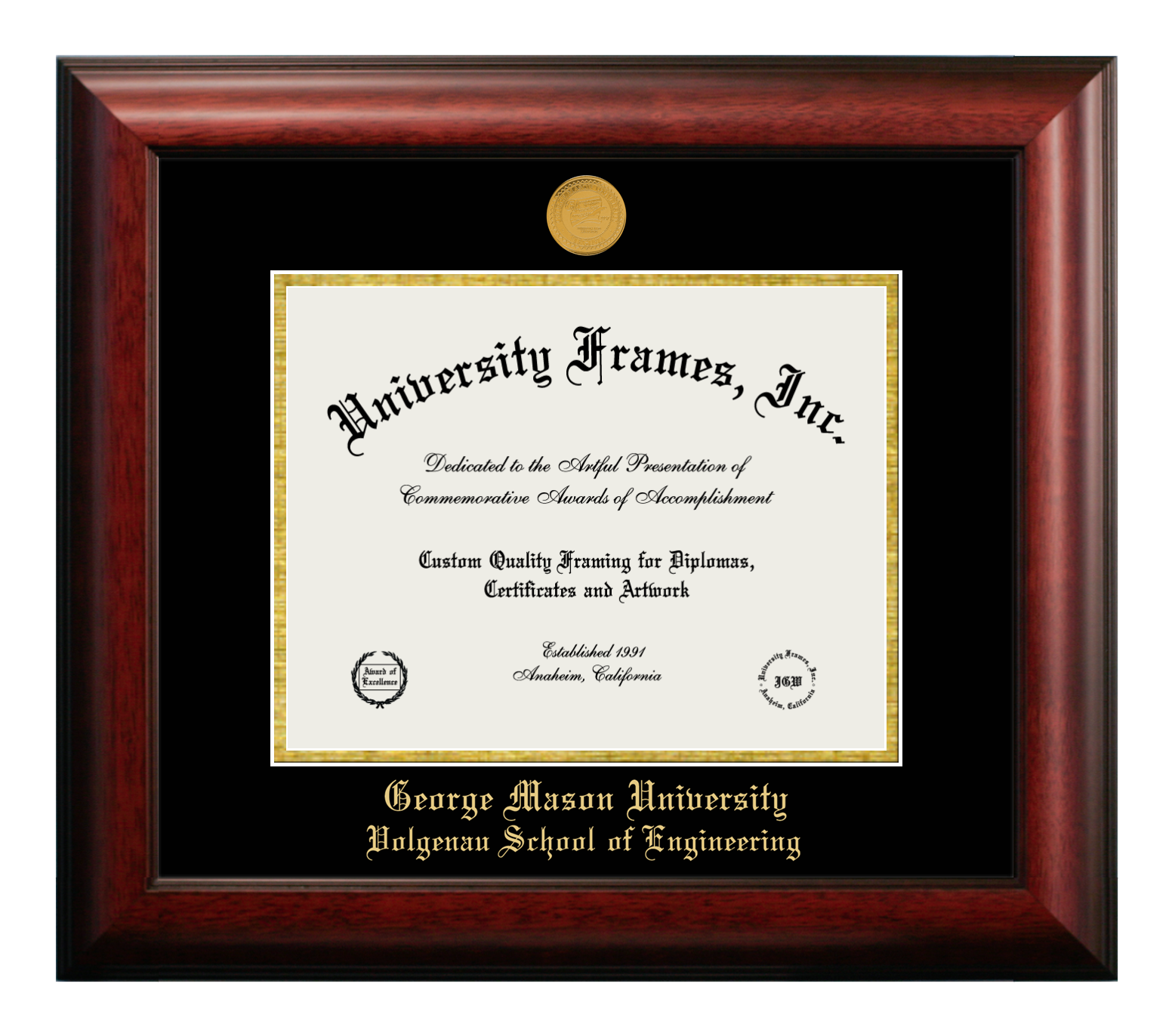 Showcase your achievement with a professional George Mason University Volgenau School of Engineering diploma frame. We offer officially licensed custom diploma frames that have the original George Mason University Volgenau School of Engineering seal. Our degree frames make great graduation gifts. All our frames are handcrafted to meet your style and preference. Each frame is carefully inspected to achieve the highest quality standards and precision. You can easily customize your college diploma frame with our online design tool. Customize your diploma frame now!