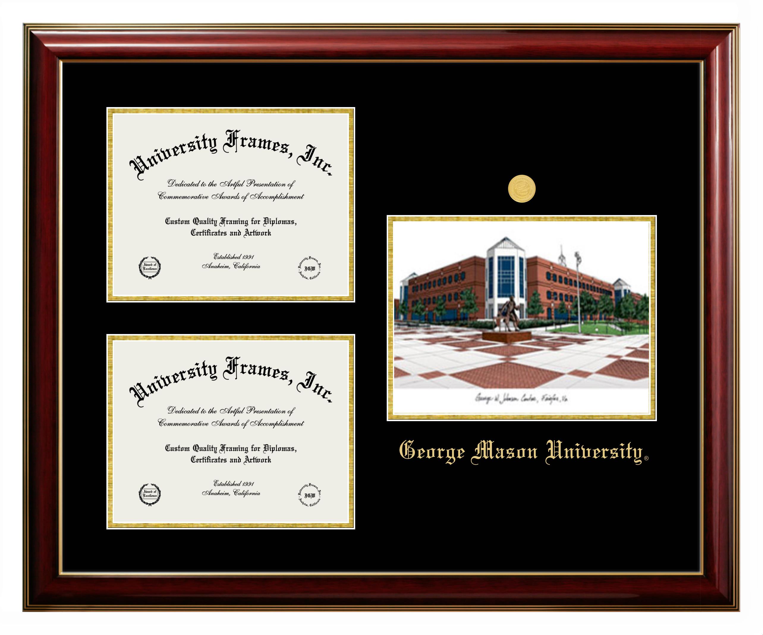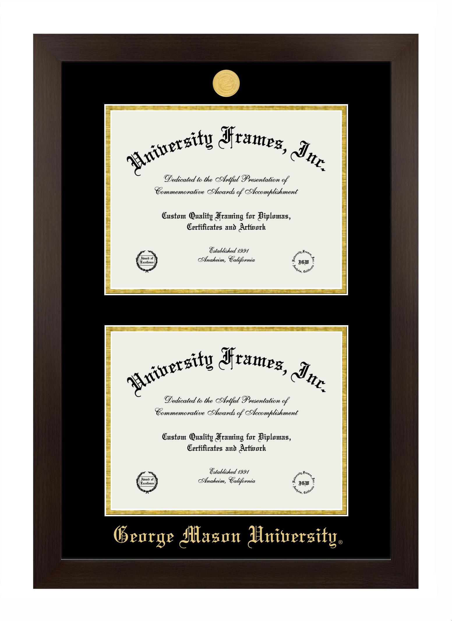 Showcase your achievement with a professional George Mason University diploma frame. We offer officially licensed custom diploma frames that have the original George Mason University seal. Our degree frames make great graduation gifts. All our frames are handcrafted to meet your style and preference. Each frame is carefully inspected to achieve the highest quality standards and precision. You can easily customize your college diploma frame with our online design tool. Customize your diploma frame now!