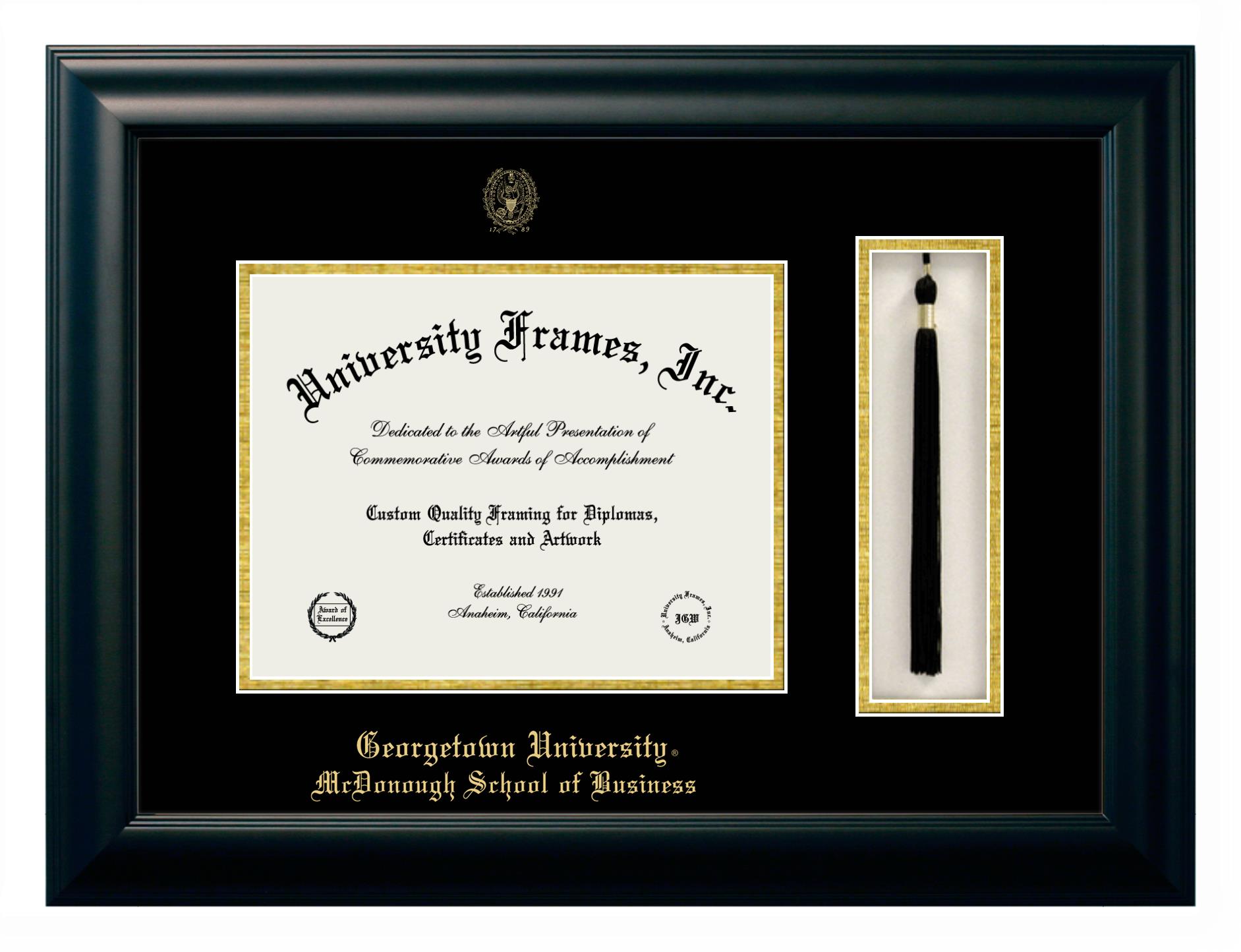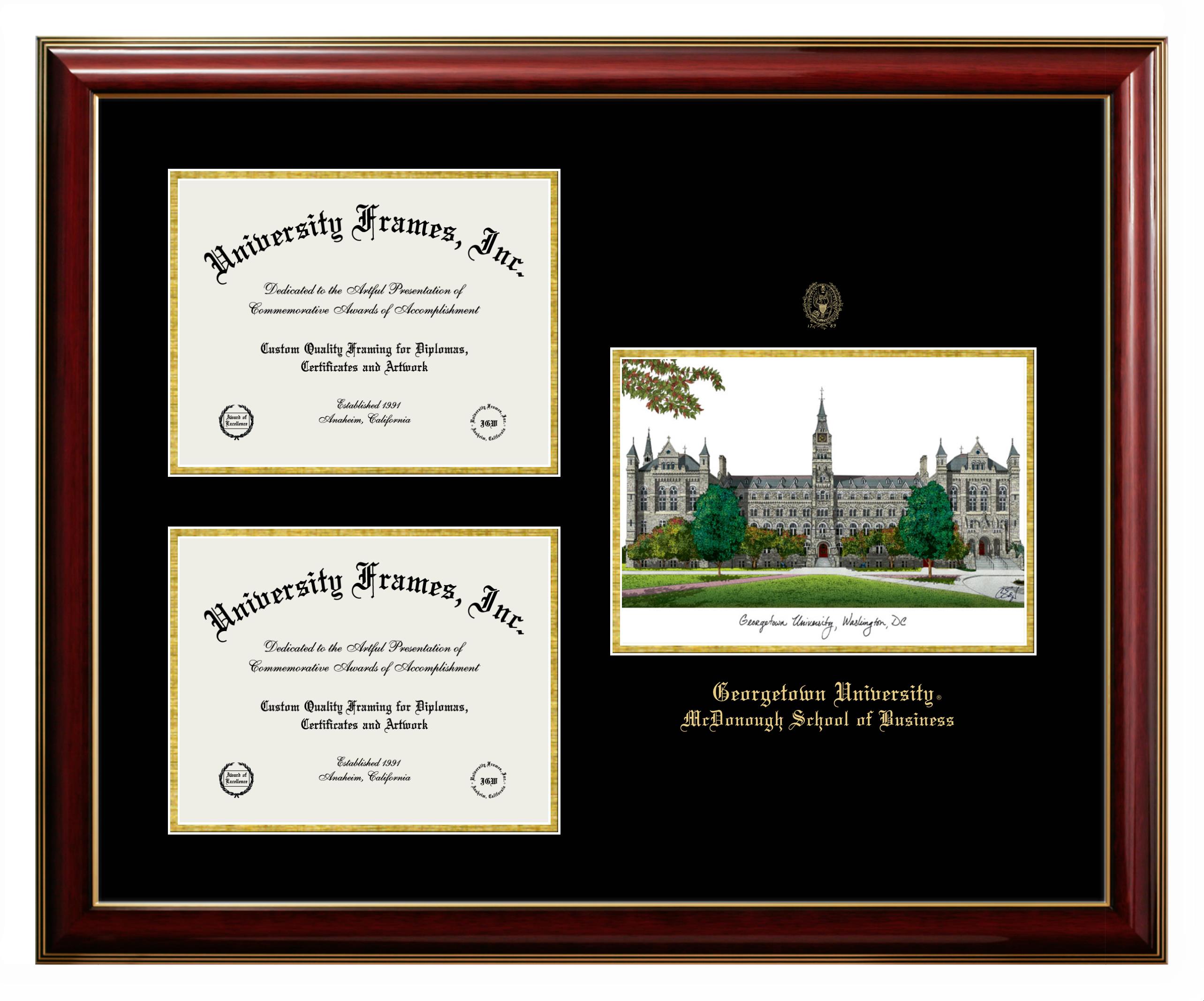 Showcase your achievement with a professional Georgetown University McDonough School of Business diploma frame. We offer officially licensed custom diploma frames that have the original Georgetown University McDonough School of Business seal. Our degree frames make great graduation gifts. All our frames are handcrafted to meet your style and preference. Each frame is carefully inspected to achieve the highest quality standards and precision. You can easily customize your college diploma frame with our online design tool. Customize your diploma frame now!