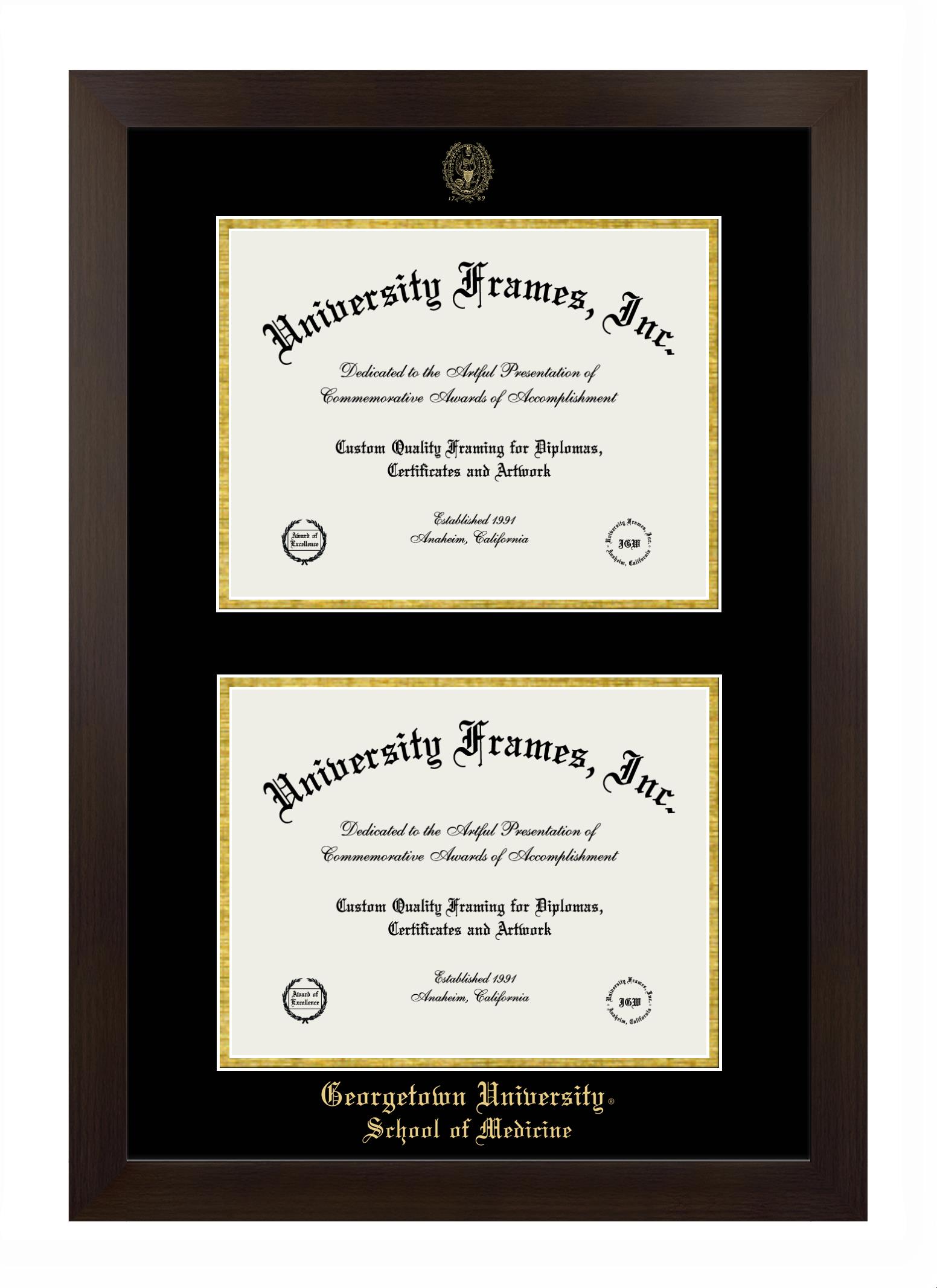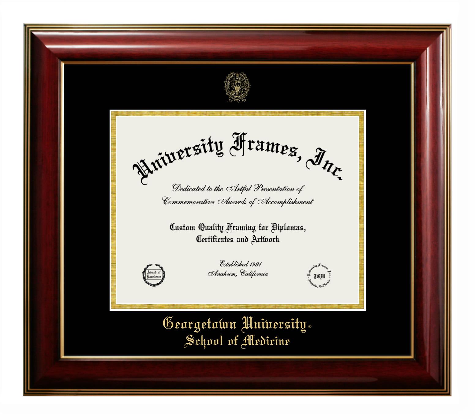 Showcase your achievement with a professional Georgetown University School of Medicine diploma frame. We offer officially licensed custom diploma frames that have the original Georgetown University School of Medicine seal. Our degree frames make great graduation gifts. All our frames are handcrafted to meet your style and preference. Each frame is carefully inspected to achieve the highest quality standards and precision. You can easily customize your college diploma frame with our online design tool. Customize your diploma frame now!