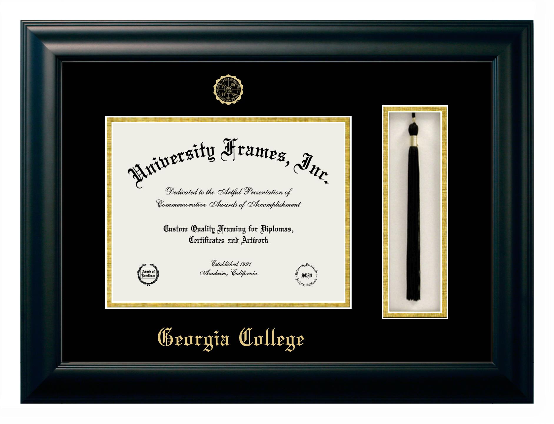 Showcase your achievement with a professional Georgia College diploma frame. We offer officially licensed custom diploma frames that have the original Georgia College seal. Our degree frames make great graduation gifts. All our frames are handcrafted to meet your style and preference. Each frame is carefully inspected to achieve the highest quality standards and precision. You can easily customize your college diploma frame with our online design tool. Customize your diploma frame now!