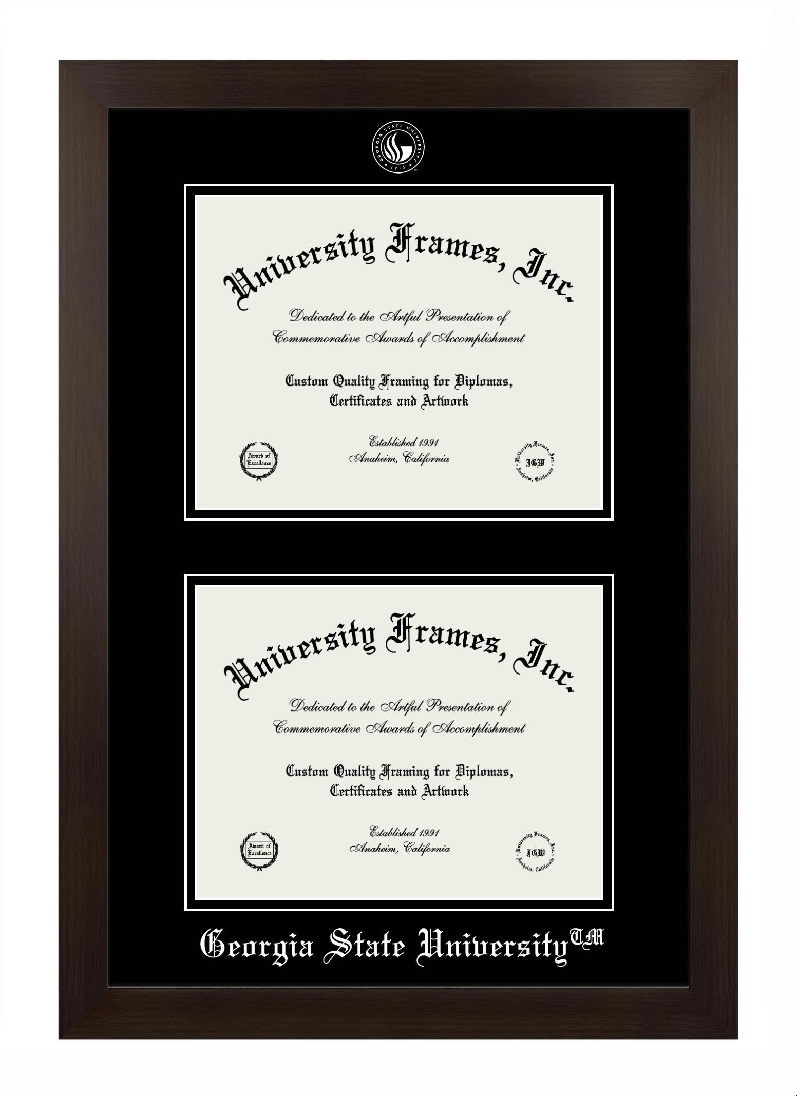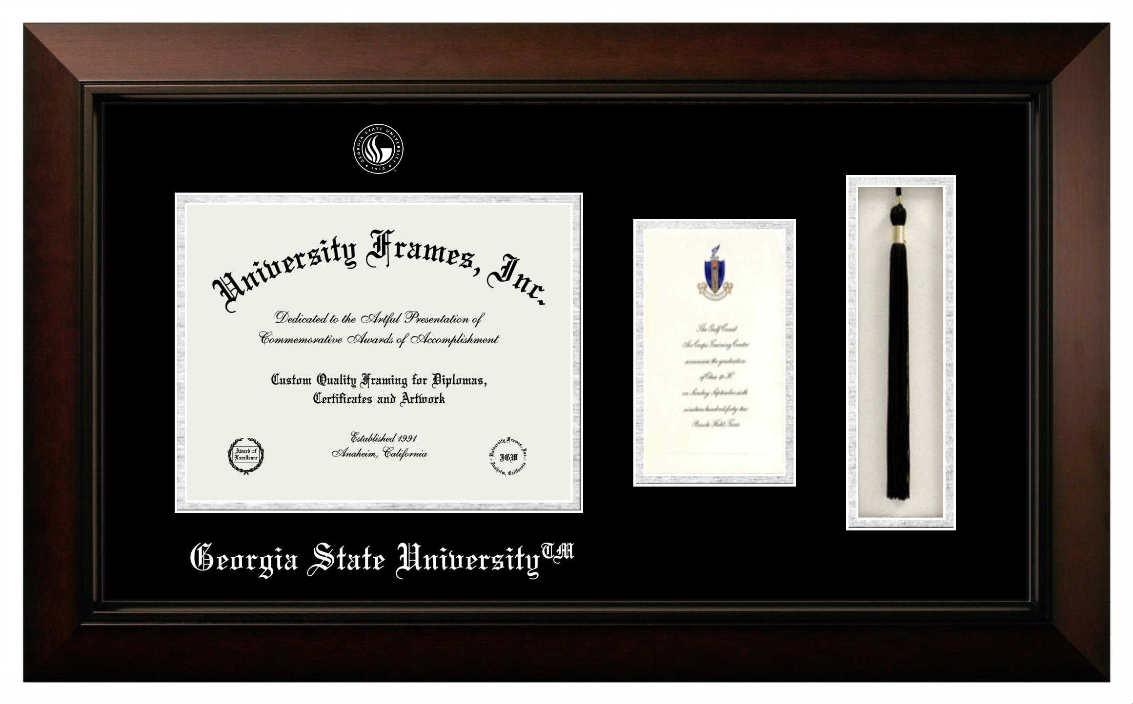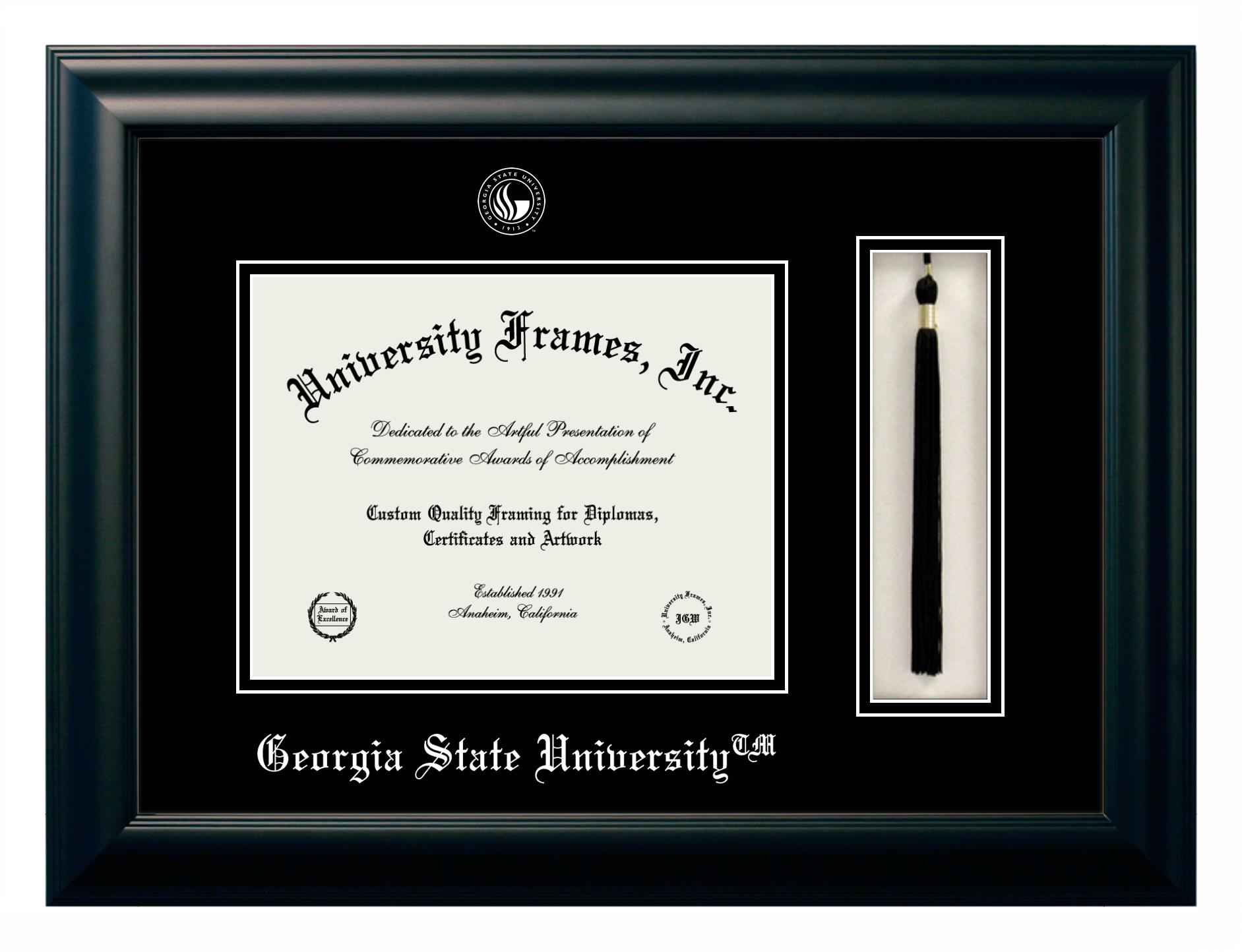 Showcase your achievement with a professional Georgia State University diploma frame. We offer officially licensed custom diploma frames that have the original Georgia State University seal. Our degree frames make great graduation gifts. All our frames are handcrafted to meet your style and preference. Each frame is carefully inspected to achieve the highest quality standards and precision. You can easily customize your college diploma frame with our online design tool. Customize your diploma frame now!
