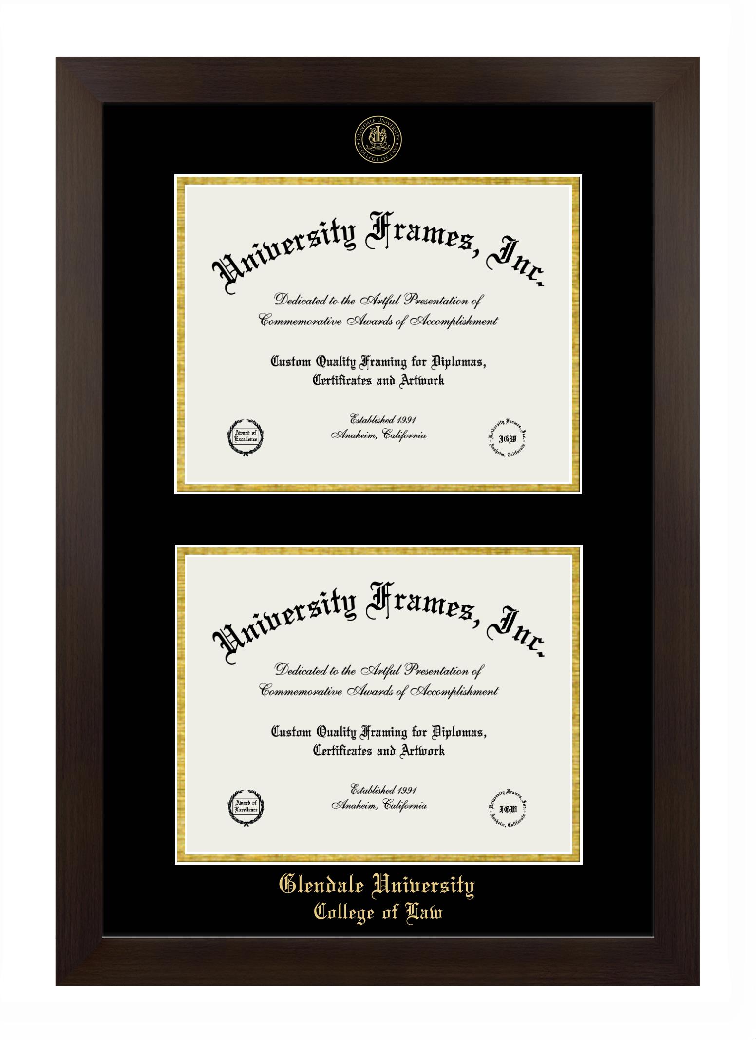 Hey there, Glendale University College of Law grads. Congratulations for your accomplishment! Since youโre here, you must be looking for a professional graduation frame to preserve and showcase your Glendale University College of Law diploma. Or, you may be looking for a diploma frame for another grad. We at University Frames, create the finest diploma frames and are licensed with Glendale University College of Law. Each of our degree frames is handcrafted in the US using the finest hardwood and with an exemplary level of attention to detail. Customize your diploma frame using our easy and intuitive online design tool.