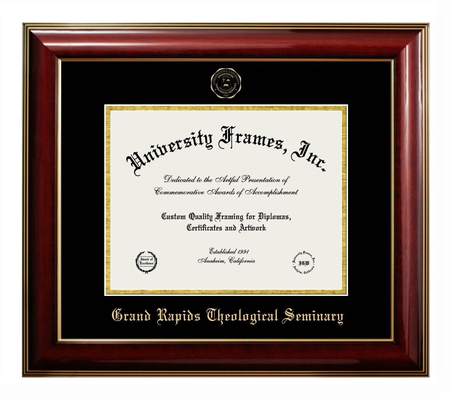 Showcase your achievement with a professional Grand Rapids Theological Seminary diploma frame. We offer officially licensed custom diploma frames that have the original Grand Rapids Theological Seminary seal. Our degree frames make great graduation gifts. All our frames are handcrafted to meet your style and preference. Each frame is carefully inspected to achieve the highest quality standards and precision. You can easily customize your college diploma frame with our online design tool. Customize your diploma frame now!
