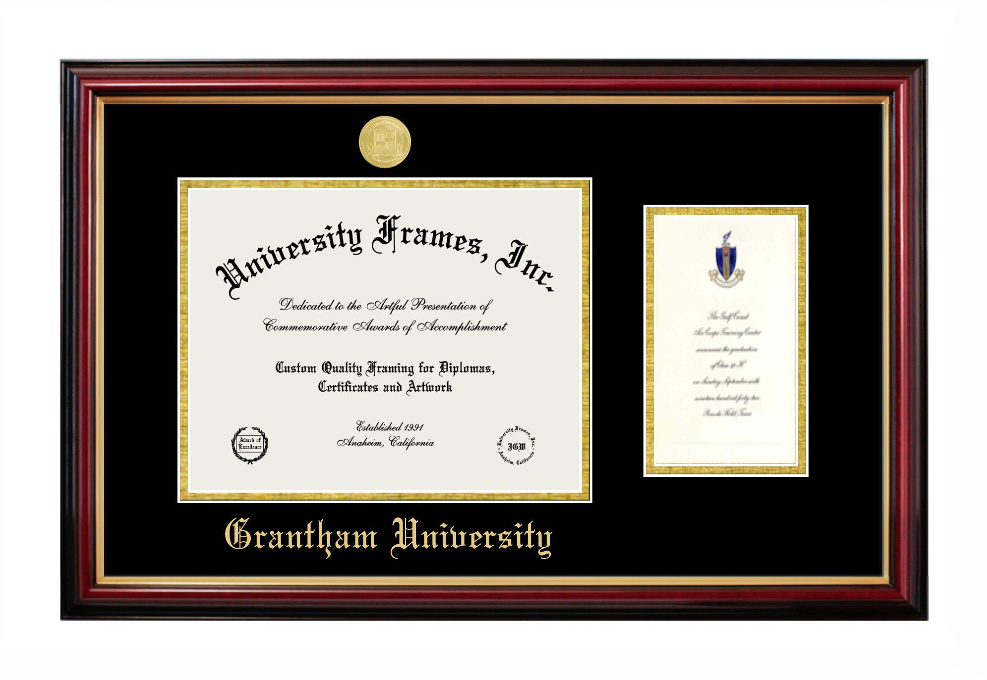 Hey there, Grantham University grads. Congratulations for your accomplishment! Since you’re here, you must be looking for a professional graduation frame to preserve and showcase your Grantham University diploma. Or, you may be looking for a diploma frame for another grad. We at University Frames, create the finest diploma frames and are licensed with Grantham University. Each of our degree frames is handcrafted in the US using the finest hardwood and with an exemplary level of attention to detail. Customize your diploma frame using our easy and intuitive online design tool.