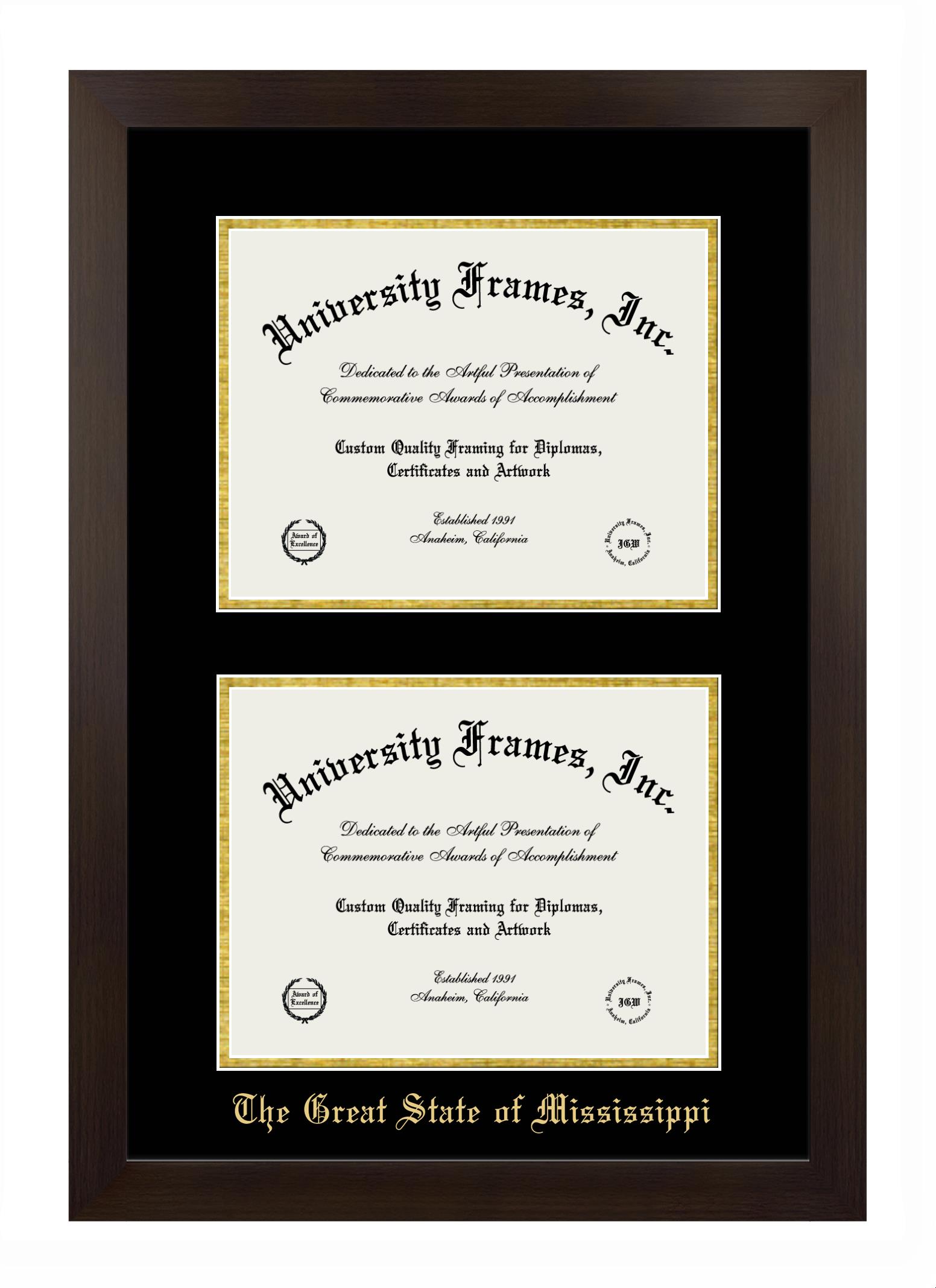 Showcase your achievement with a professional Great State of Mississippi diploma frame. We offer officially licensed custom diploma frames that have the original Great State of Mississippi seal. Our degree frames make great graduation gifts. All our frames are handcrafted to meet your style and preference. Each frame is carefully inspected to achieve the highest quality standards and precision. You can easily customize your college diploma frame with our online design tool. Customize your diploma frame now!