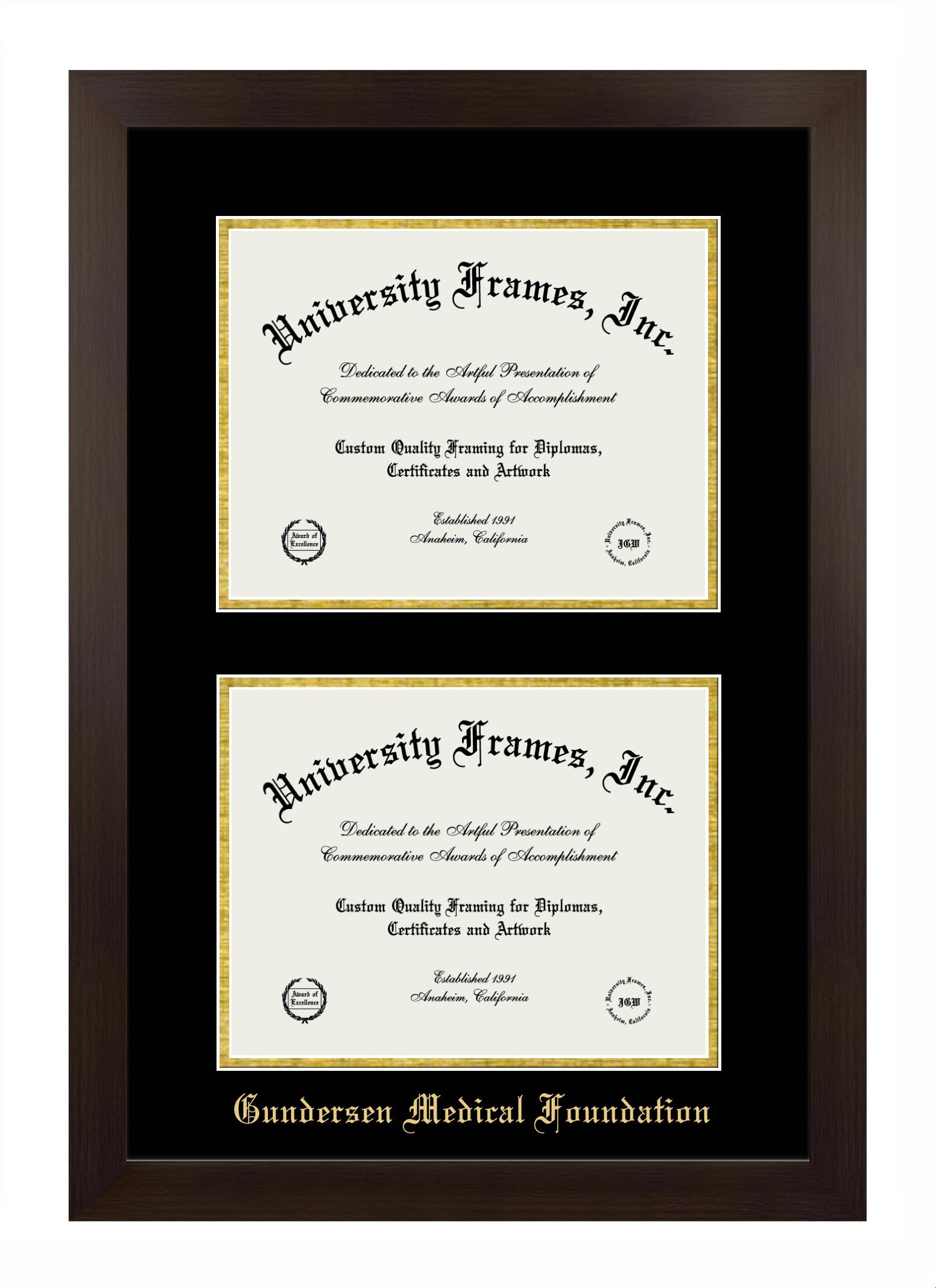 Showcase your achievement with a professional Gundersen Medical Foundation diploma frame. We offer officially licensed custom diploma frames that have the original Gundersen Medical Foundation seal. Our degree frames make great graduation gifts. All our frames are handcrafted to meet your style and preference. Each frame is carefully inspected to achieve the highest quality standards and precision. You can easily customize your college diploma frame with our online design tool. Customize your diploma frame now!
