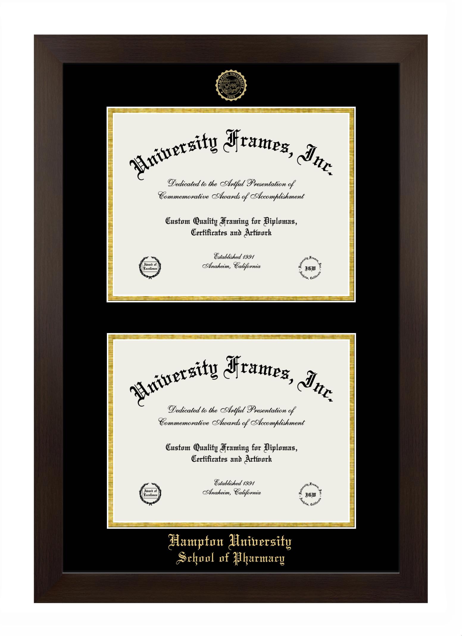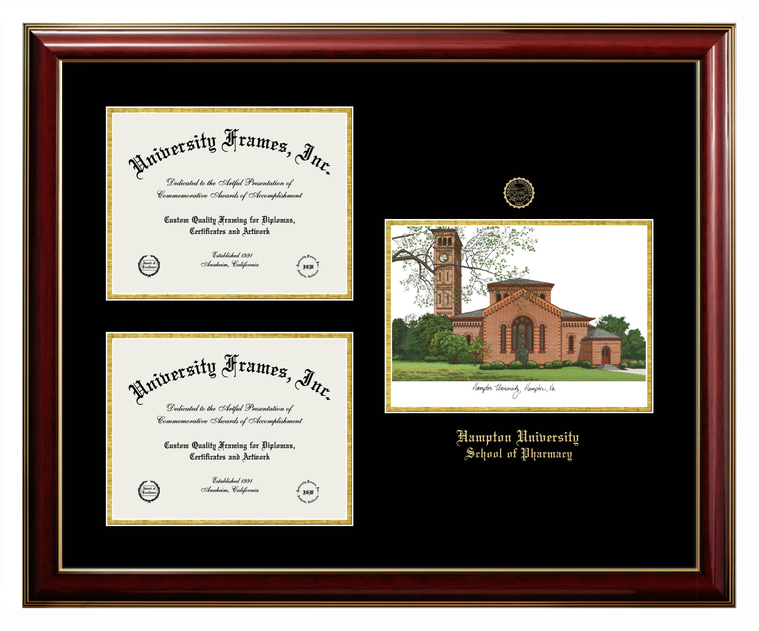 Showcase your achievement with a professional Hampton University School of Pharmacy diploma frame. We offer officially licensed custom diploma frames that have the original Hampton University School of Pharmacy seal. Our degree frames make great graduation gifts. All our frames are handcrafted to meet your style and preference. Each frame is carefully inspected to achieve the highest quality standards and precision. You can easily customize your college diploma frame with our online design tool. Customize your diploma frame now!