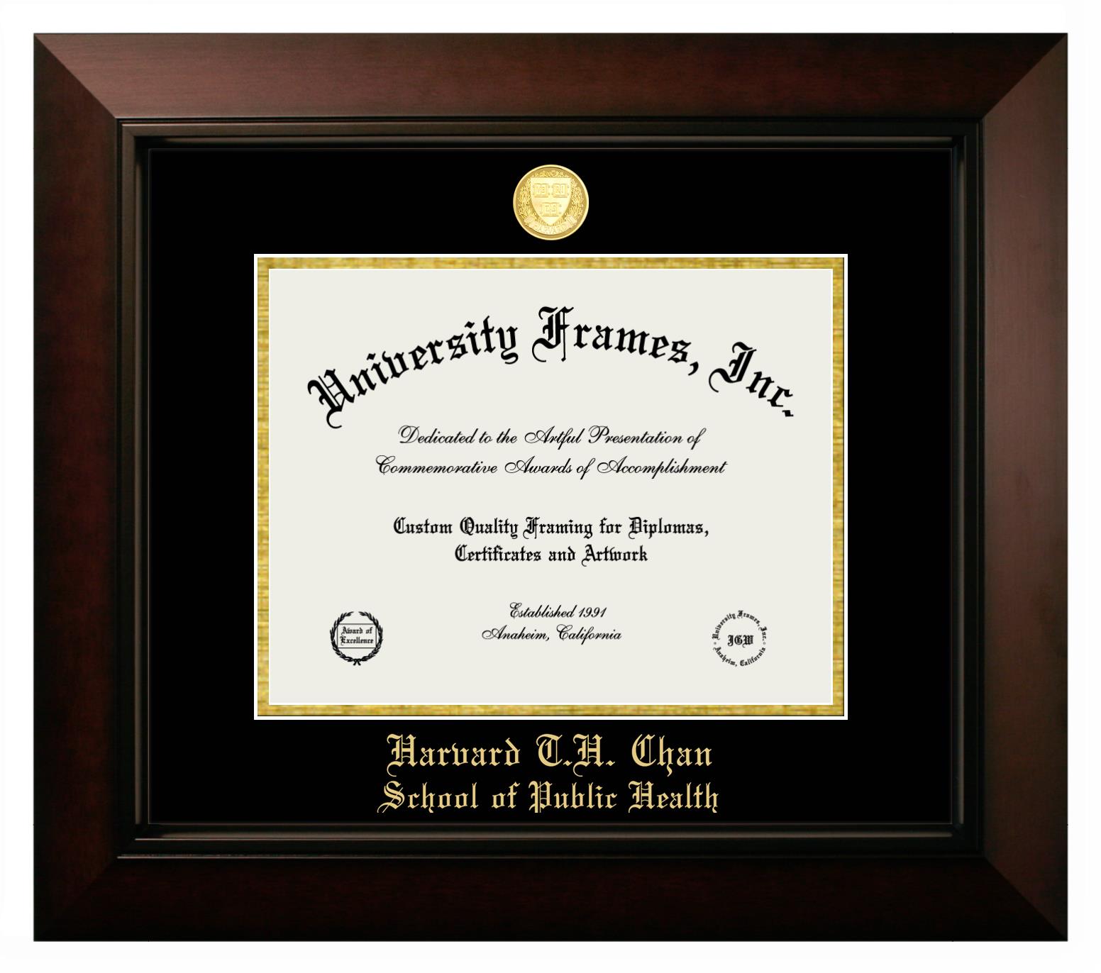 Showcase your achievement with a professional Harvard T.H. Chan School of Public Health diploma frame. We offer officially licensed custom diploma frames that have the original Harvard T.H. Chan School of Public Health seal. Our degree frames make great graduation gifts. All our frames are handcrafted to meet your style and preference. Each frame is carefully inspected to achieve the highest quality standards and precision. You can easily customize your college diploma frame with our online design tool. Customize your diploma frame now!